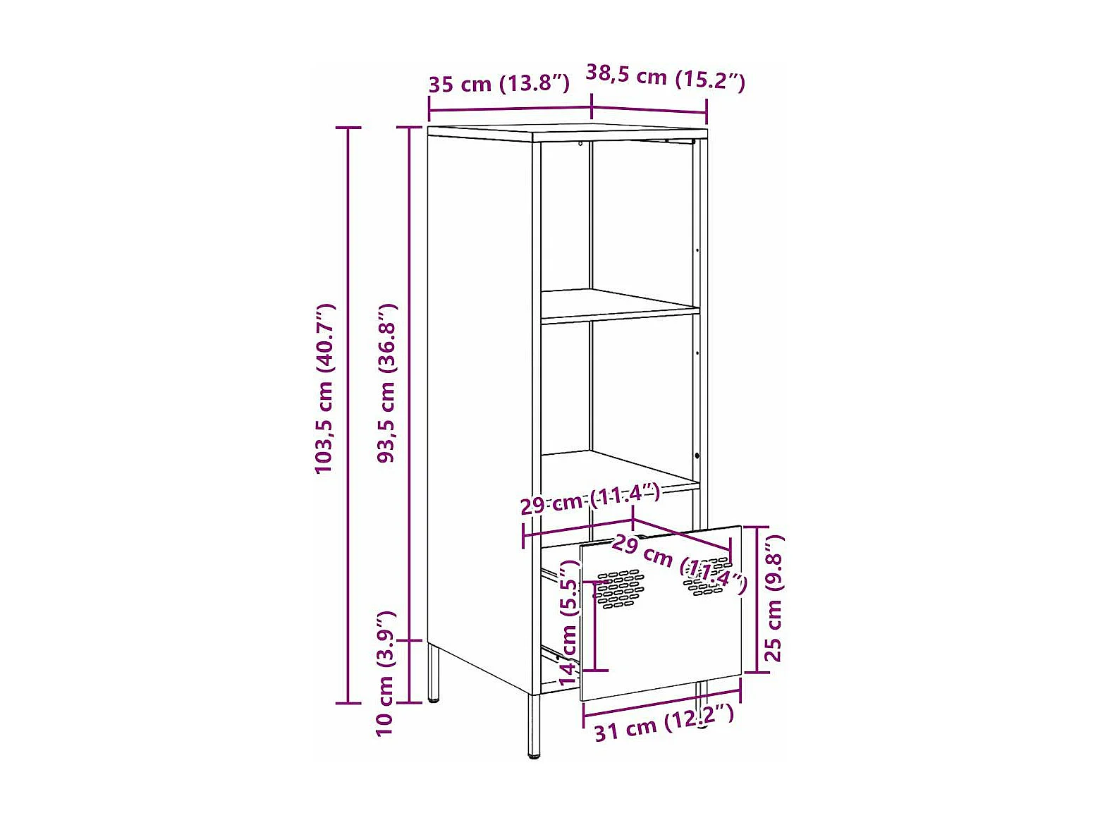 Buffet jaune moutarde 35x39x73,5 acier laminé à froid