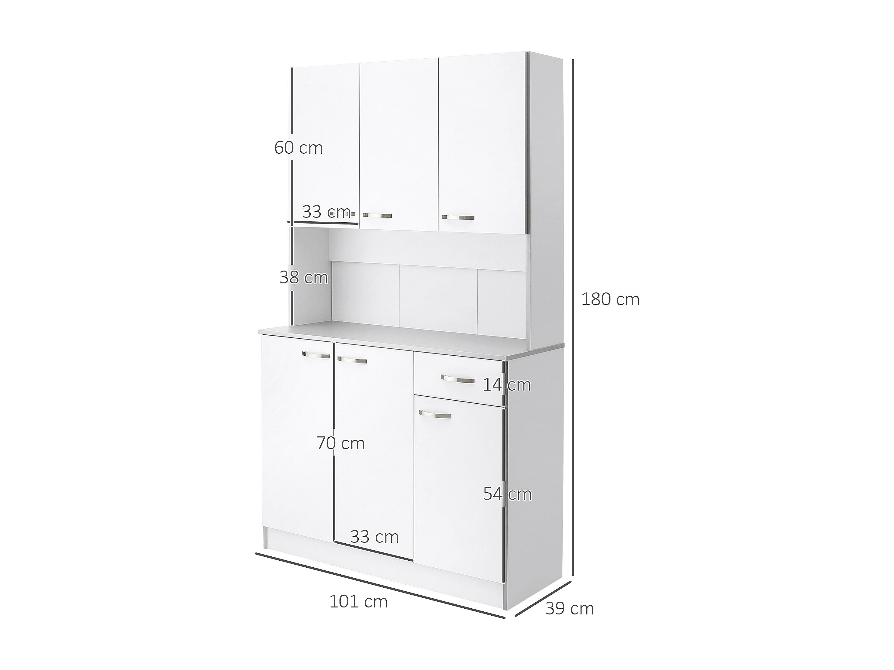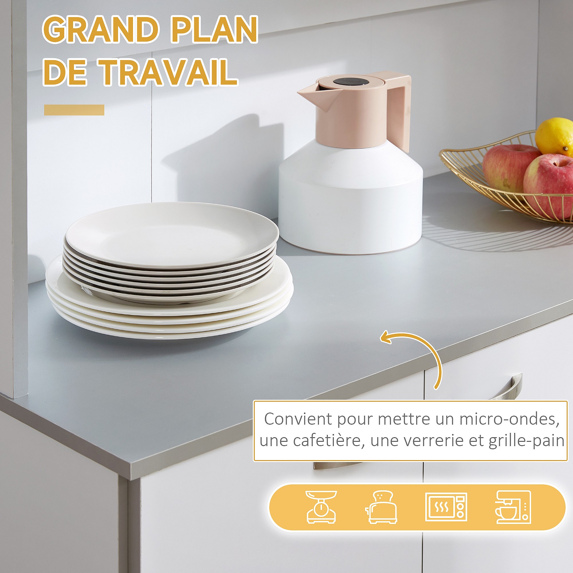 Buffet haut multi-rangement - 6 portes, tiroir, grand plateau - dim. 101L x 39l x 180H cm - panneaux particules blanc gris