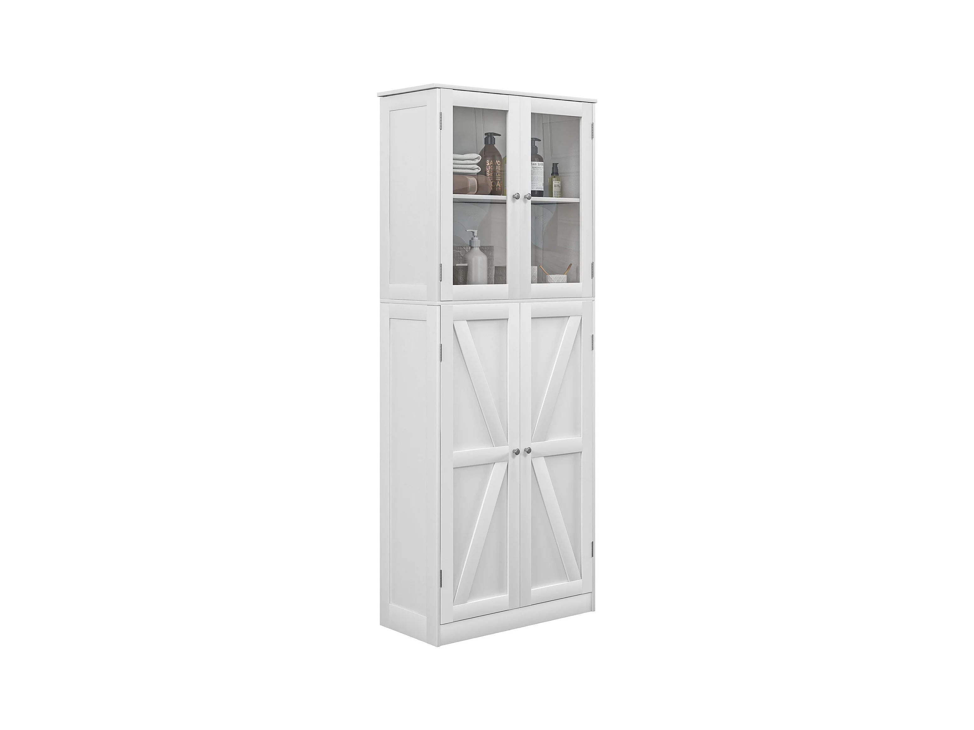 Buffet haut salle de bain moderne - 4 portes, 3 étagères - verre trempé MDF blanc