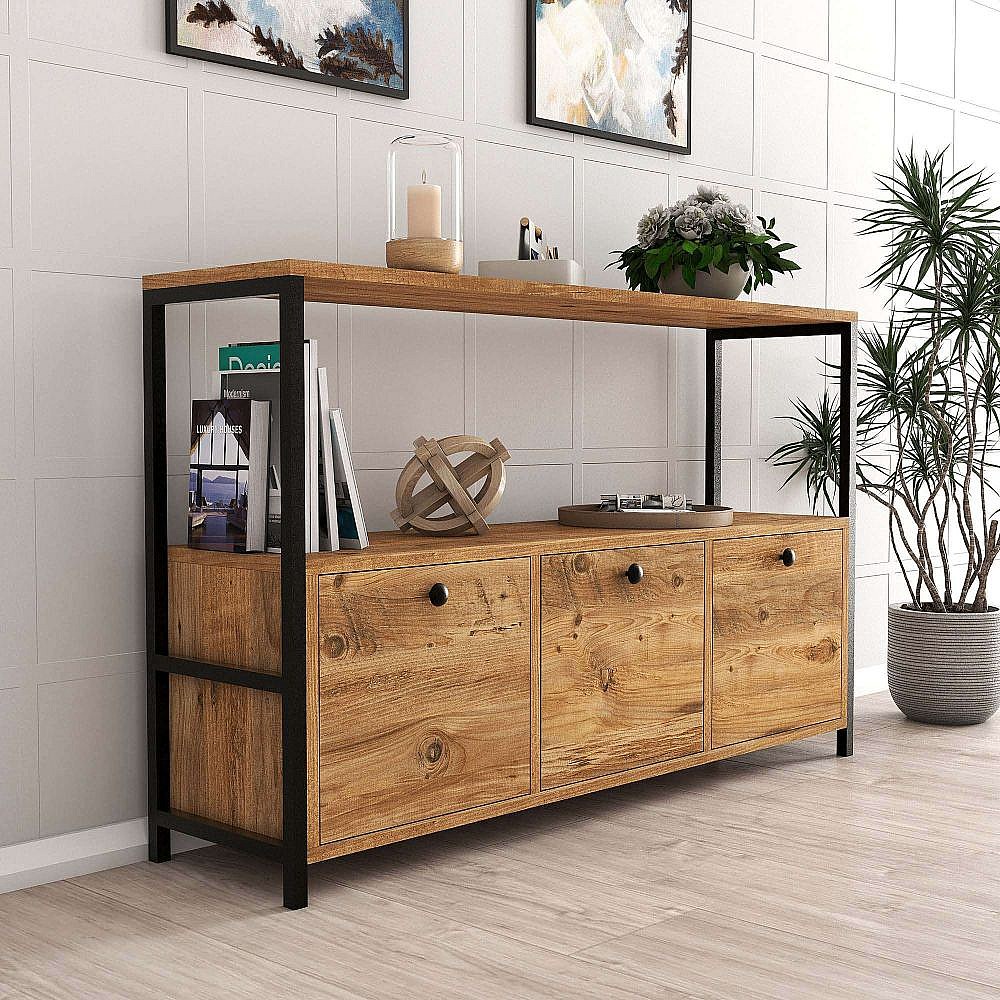 Bahut Buffet pour Salon Salle à manger en Noir 140x40x80cm Nevada