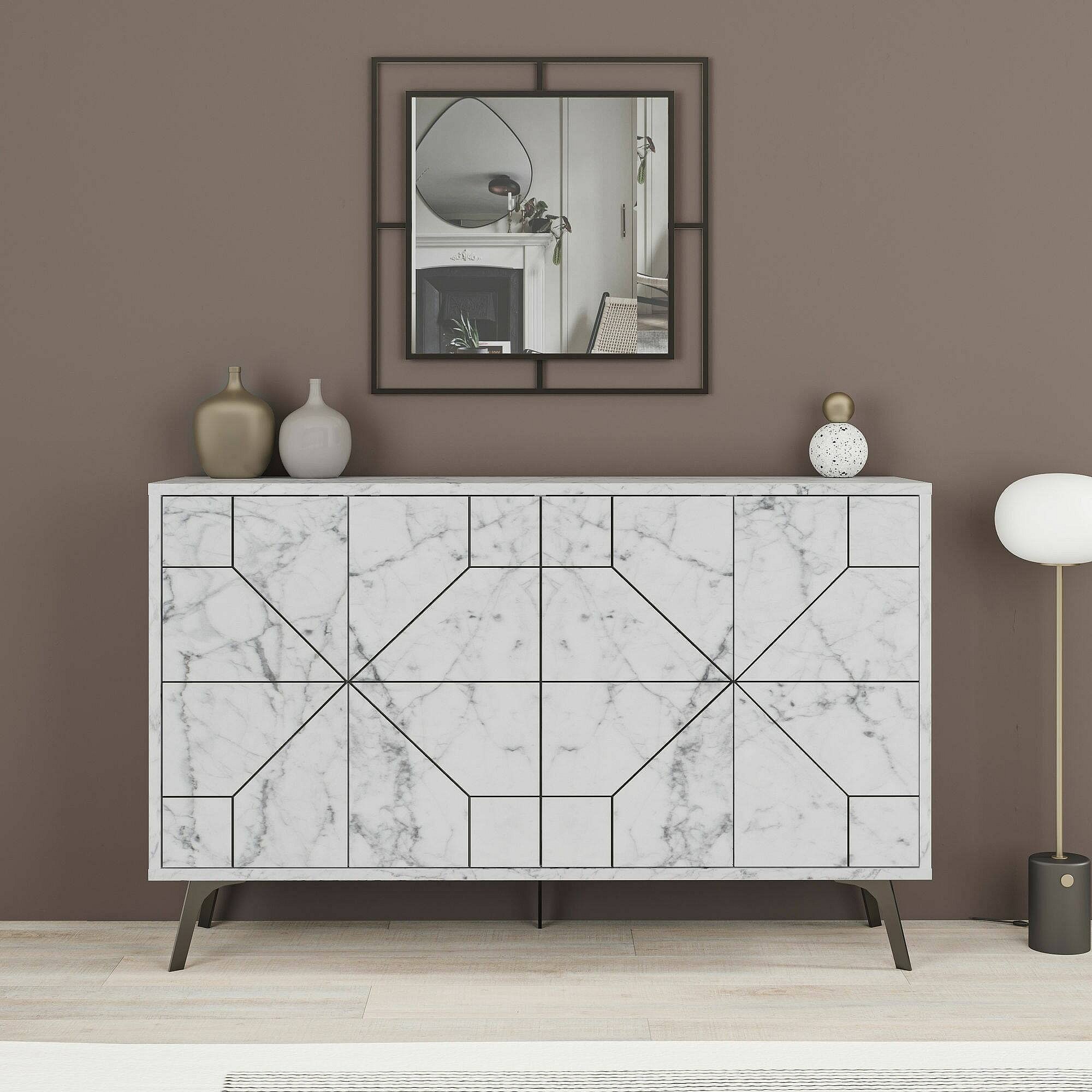 Buffet Meridian, Buffet du salon, Commode de salon, Garde-manger de cuisine, 123x35h62 cm, Marbre Blanc