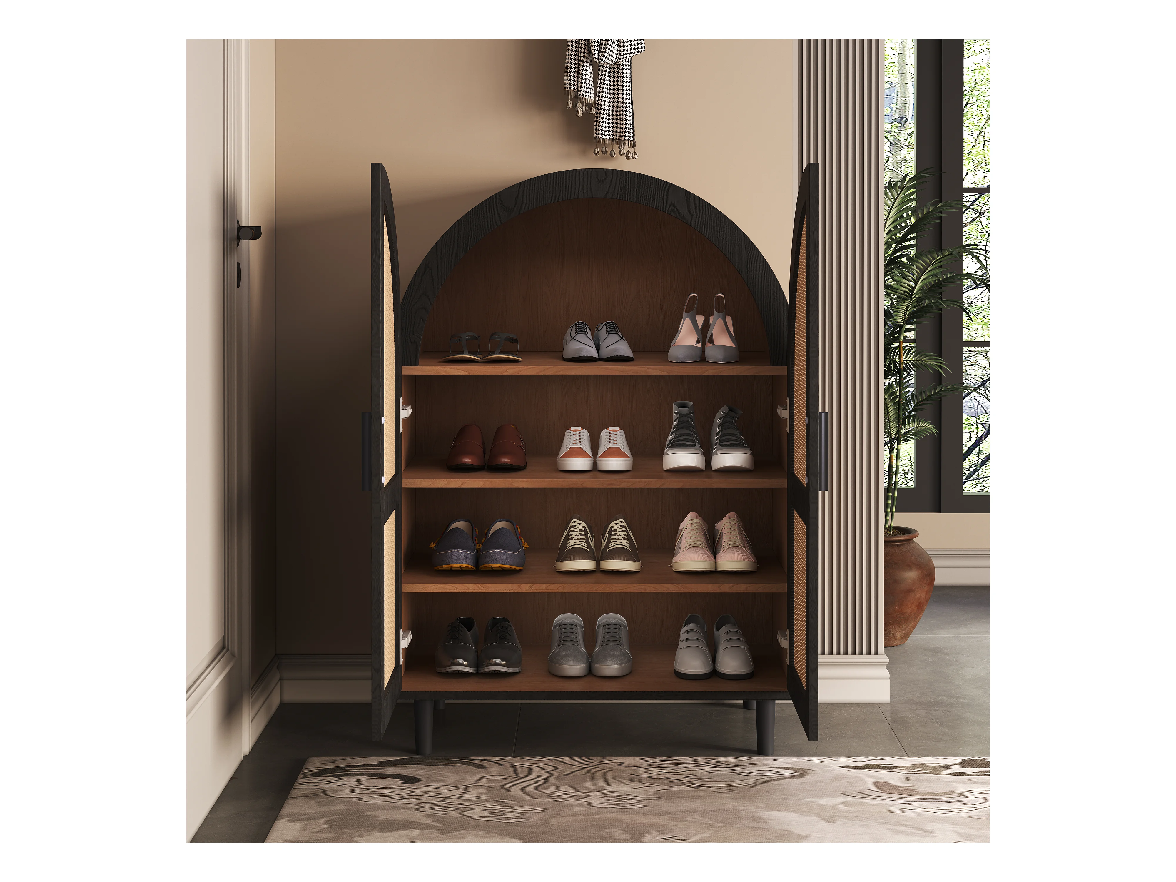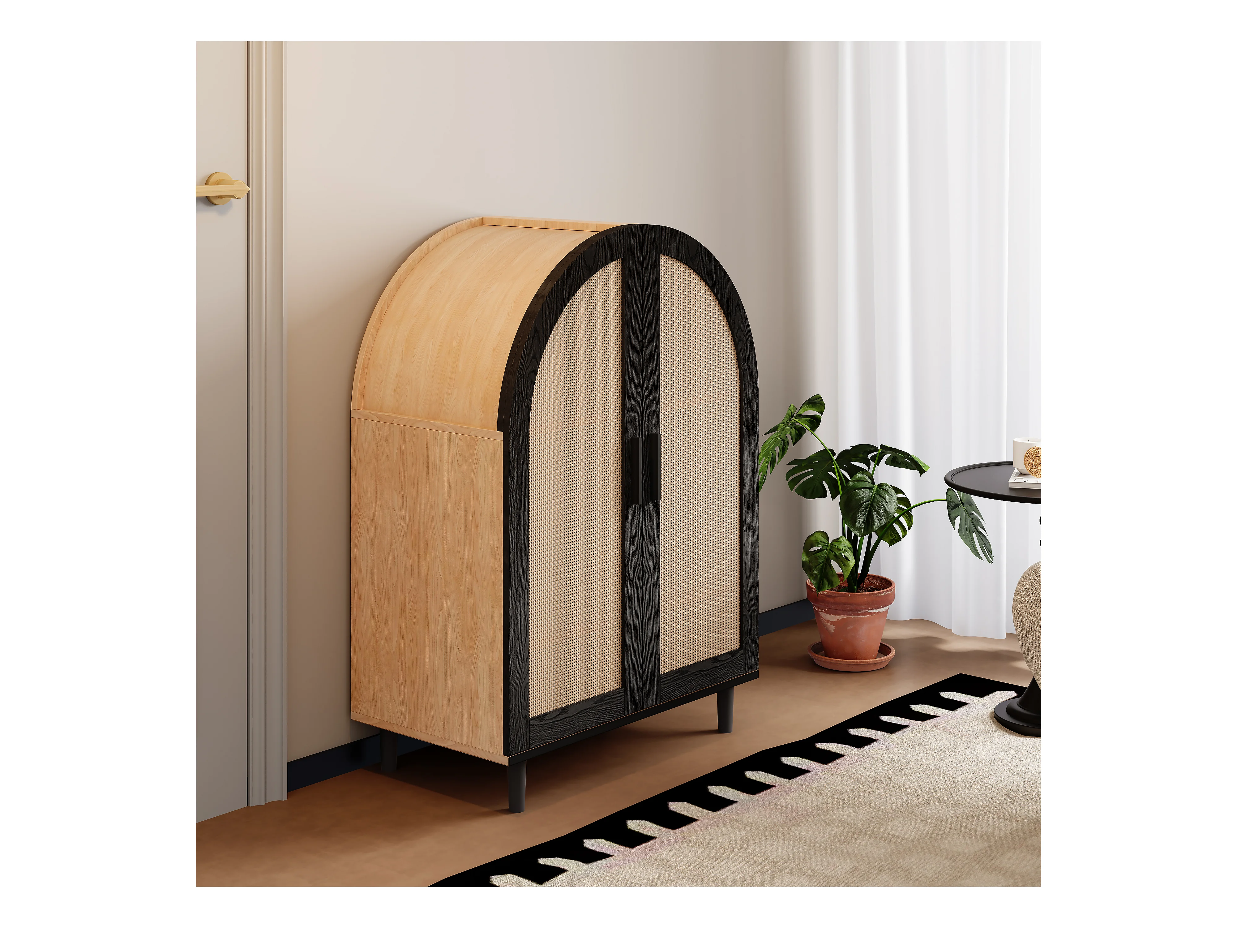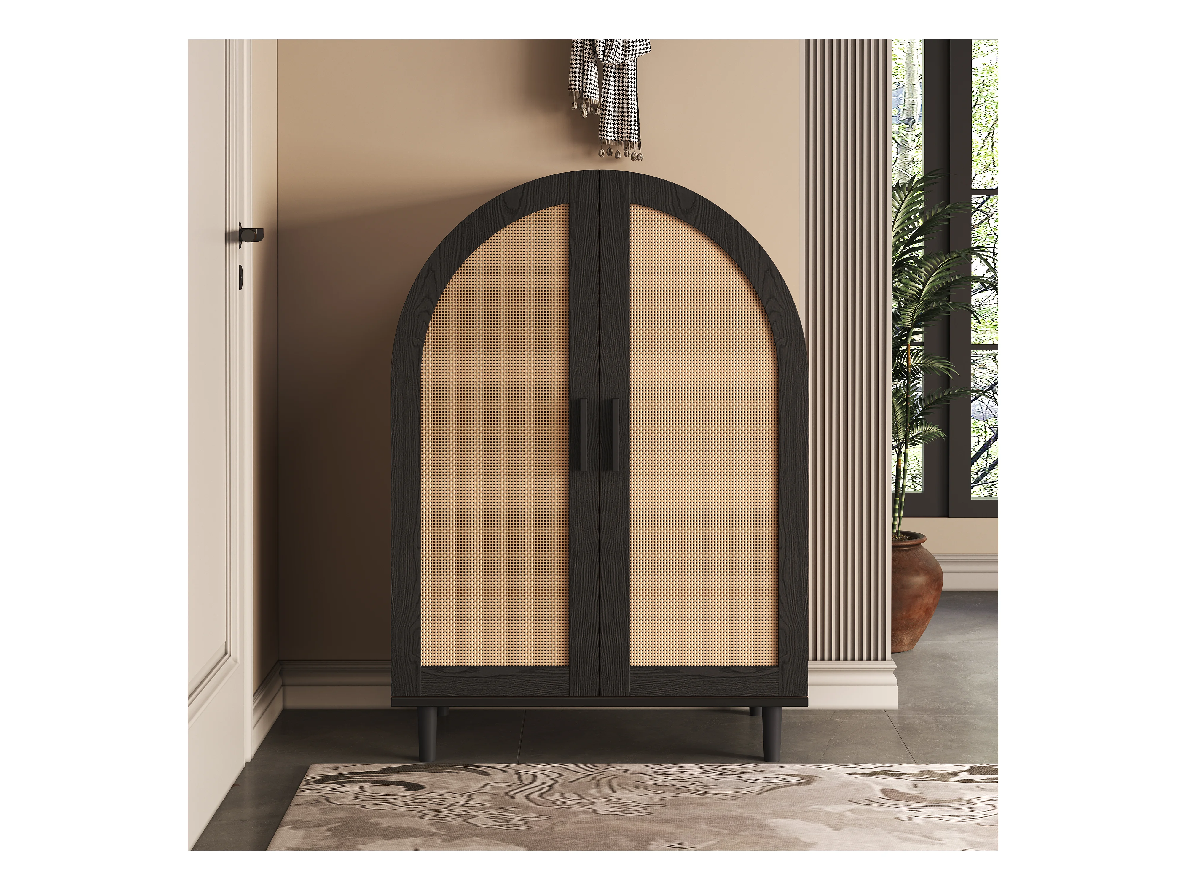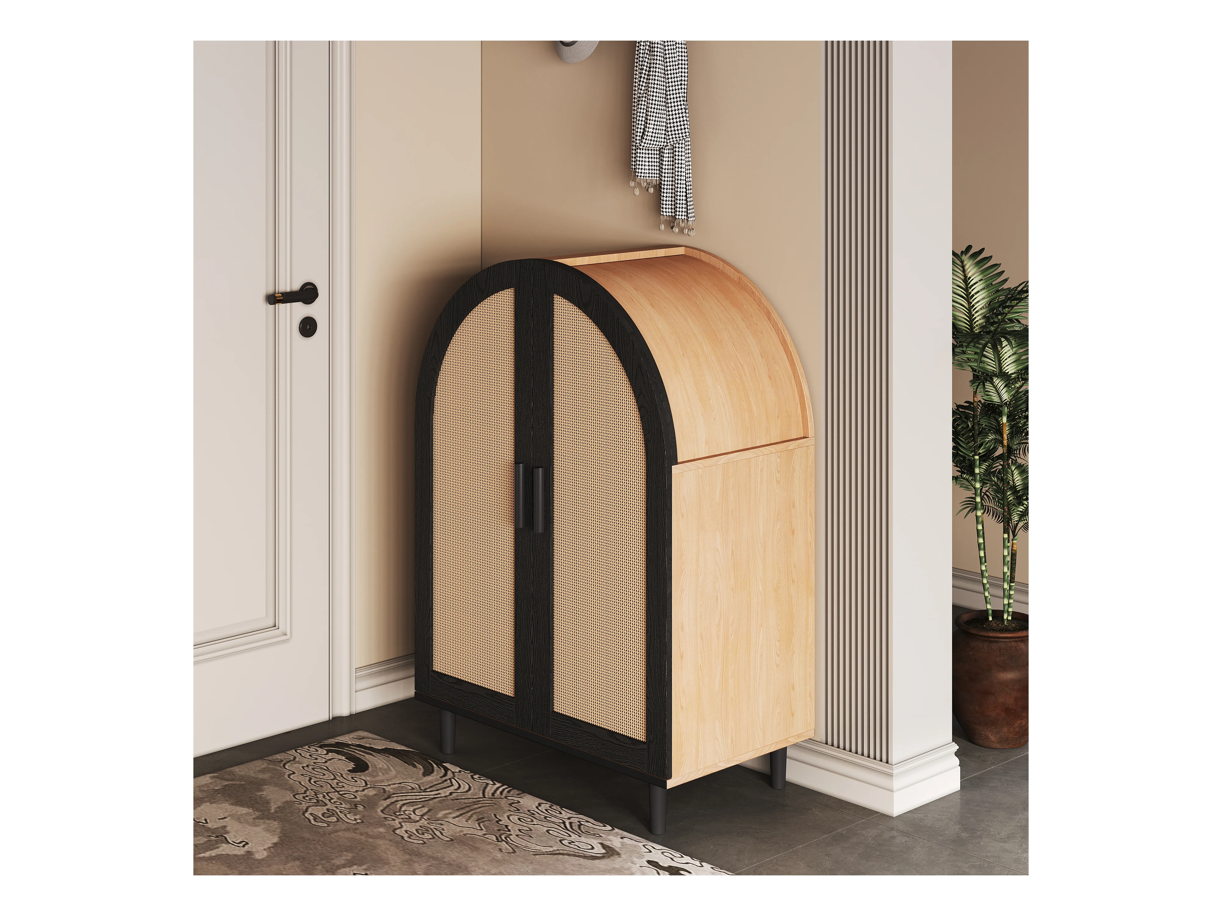 Buffet/ meuble à chaussures - 70 x 40 x 100 cm - avec 2 portes ajourées en rotin + 3 étagères - MDF - naturel