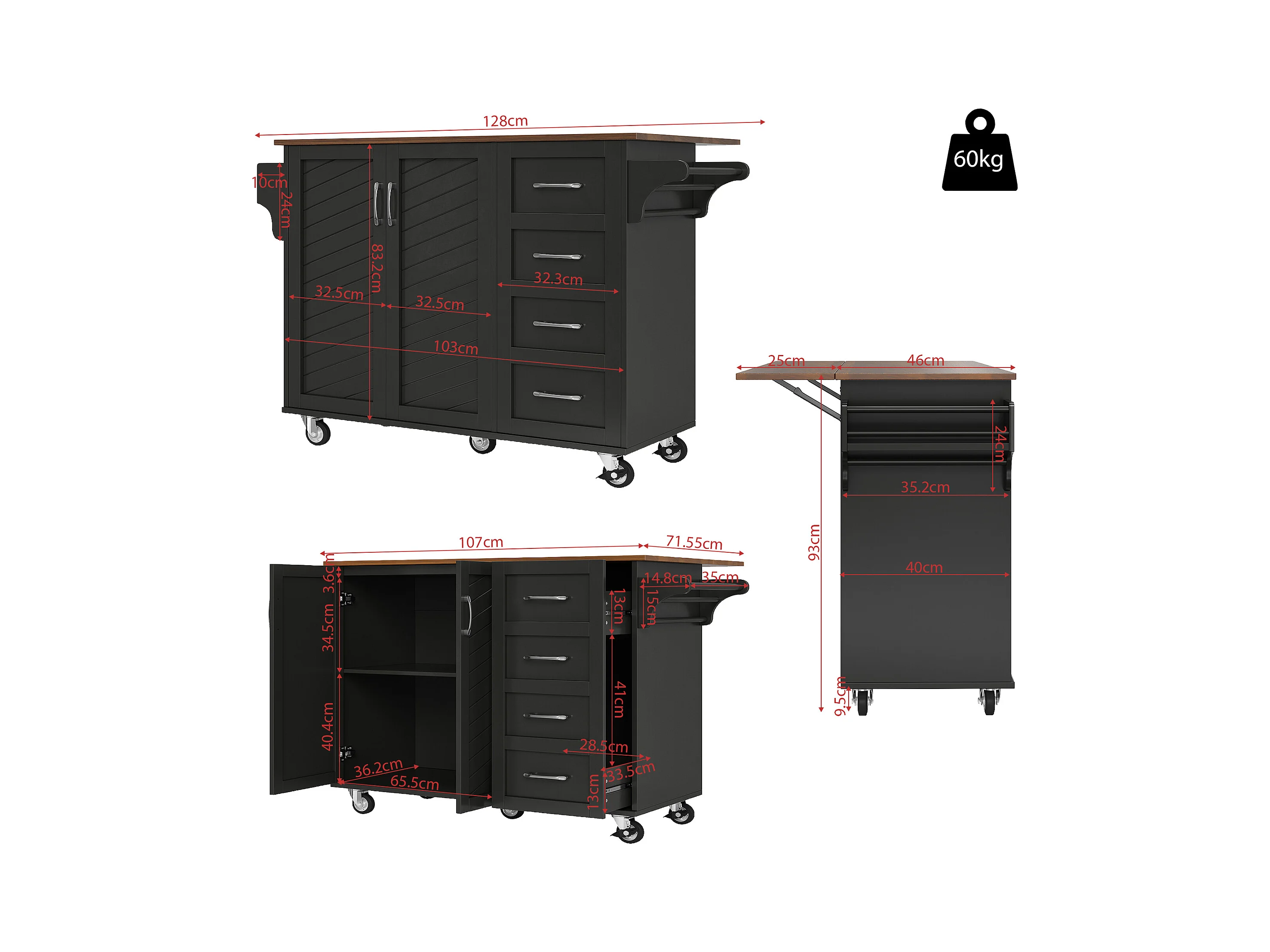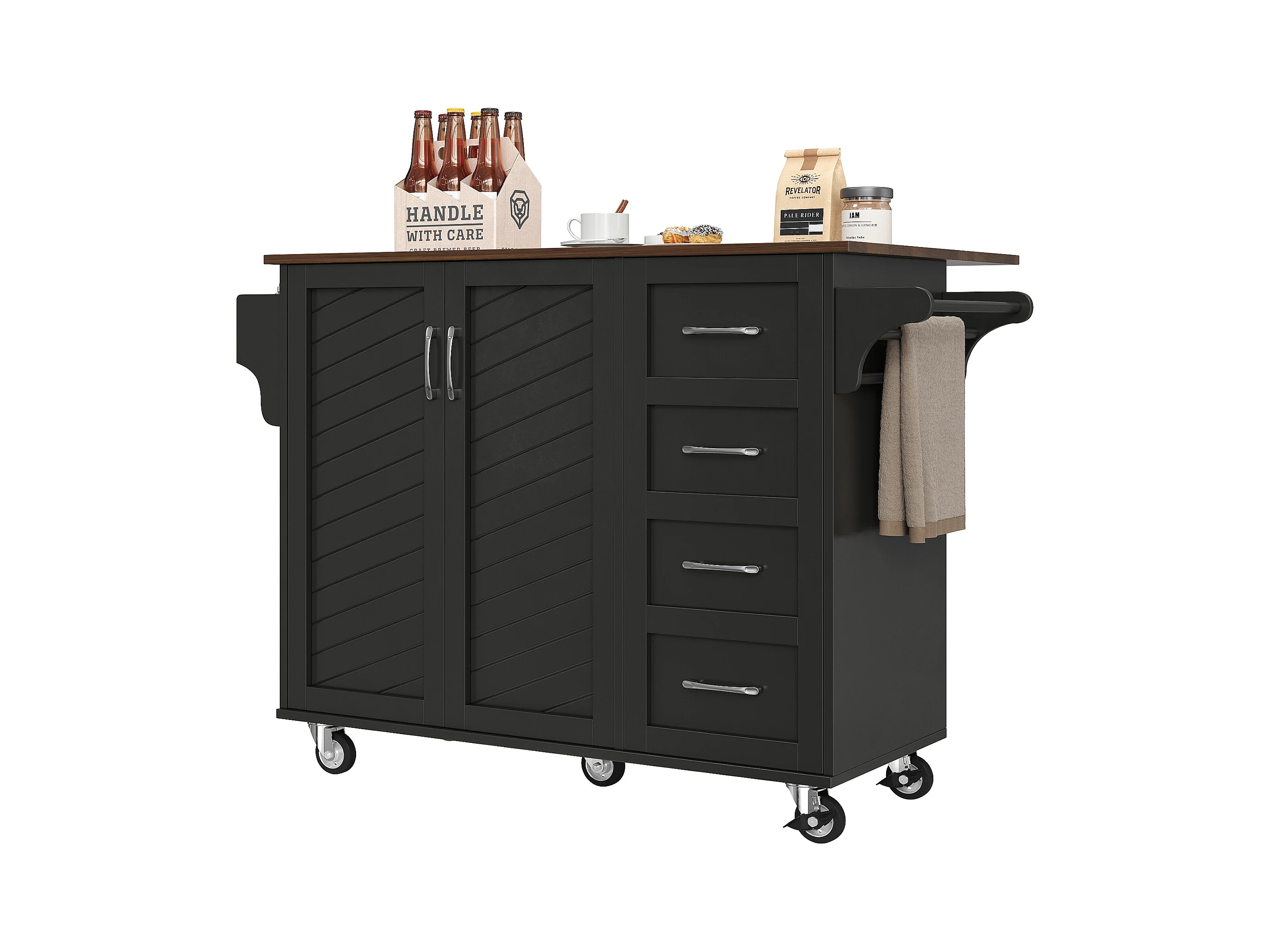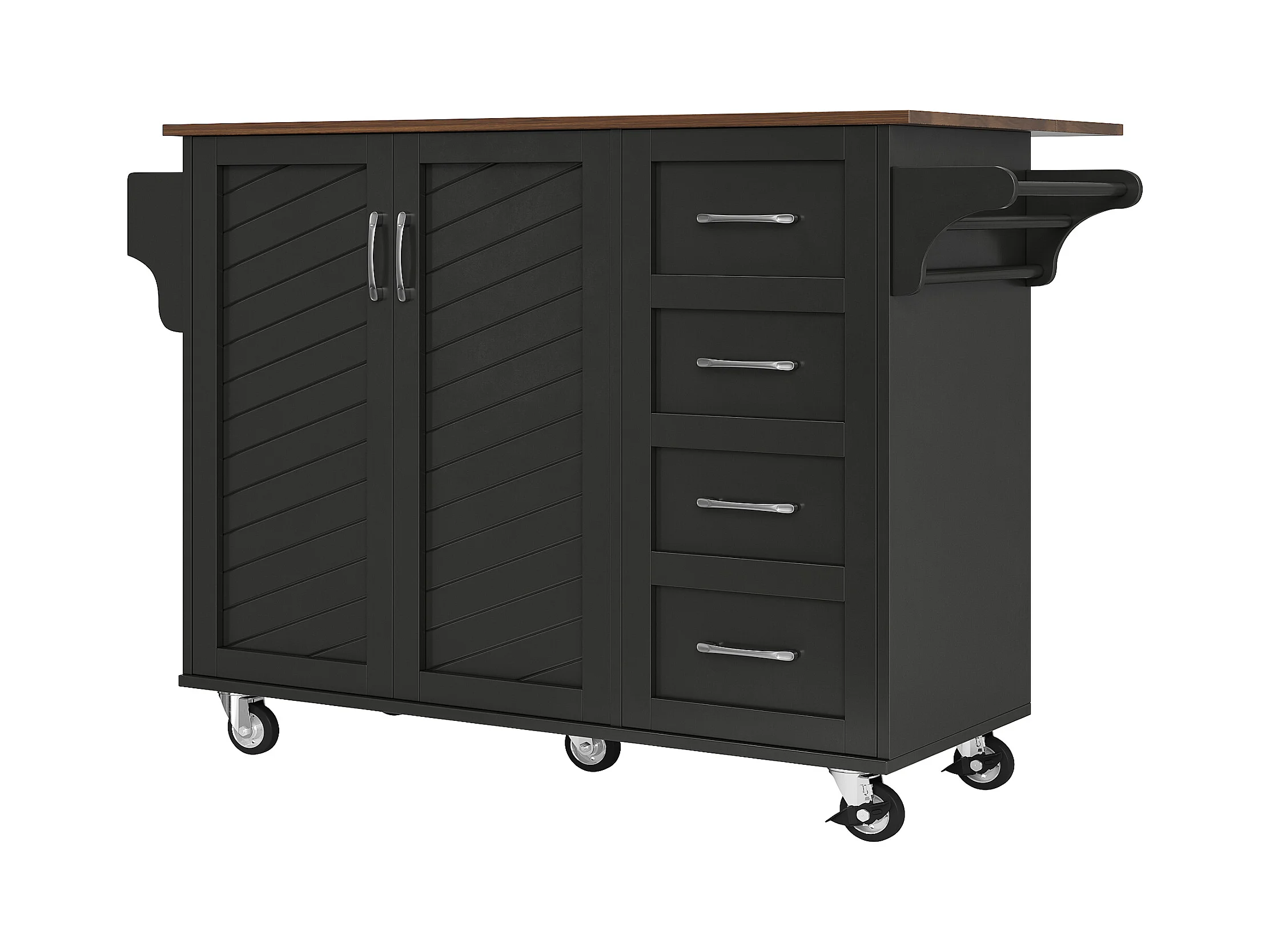 Ilot central de cuisiner - chariot à roulette avec plateau extensible - 2 tiroirs et 2 portes - Noir