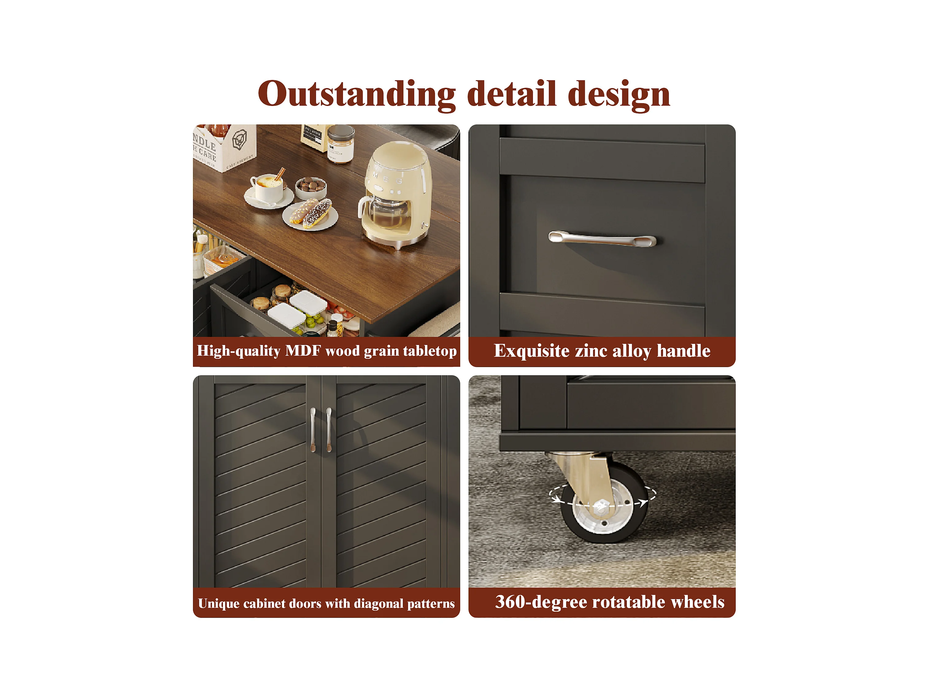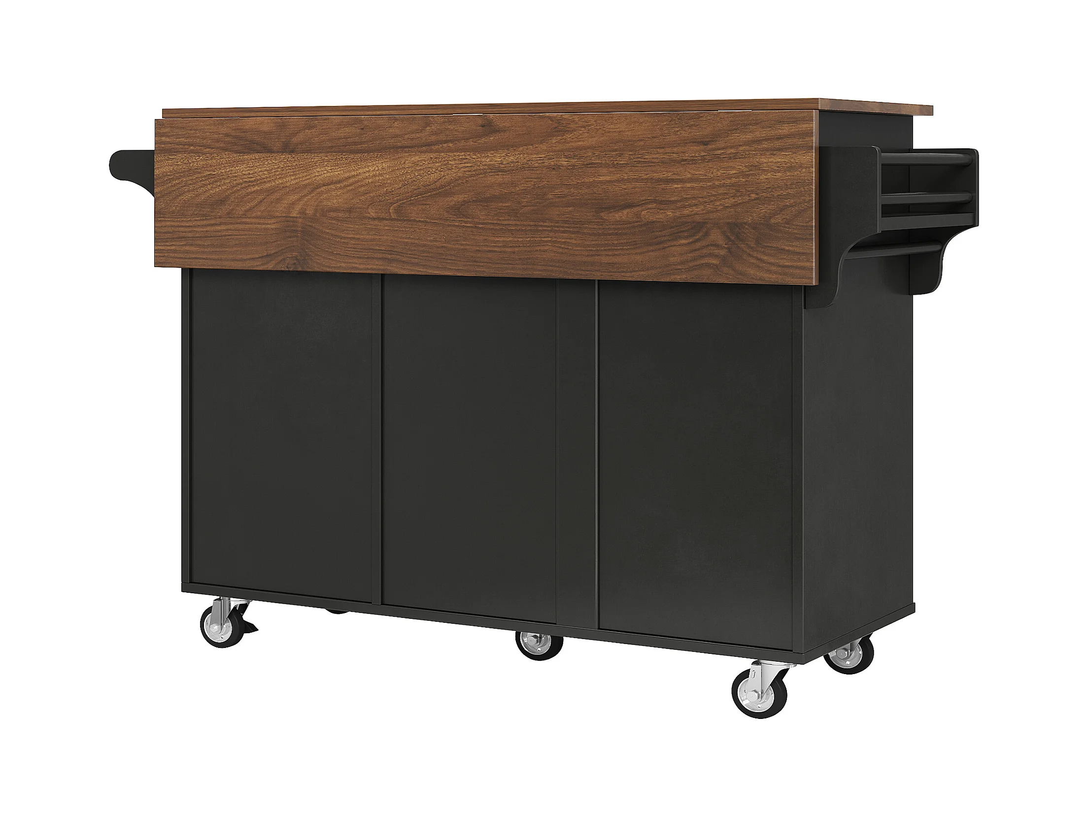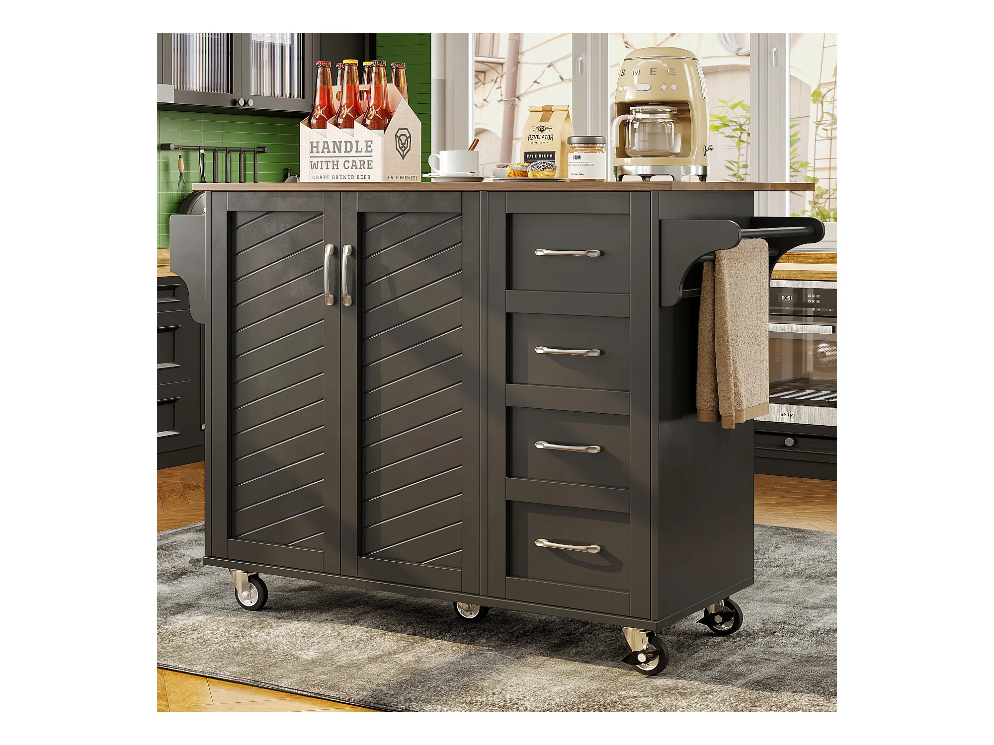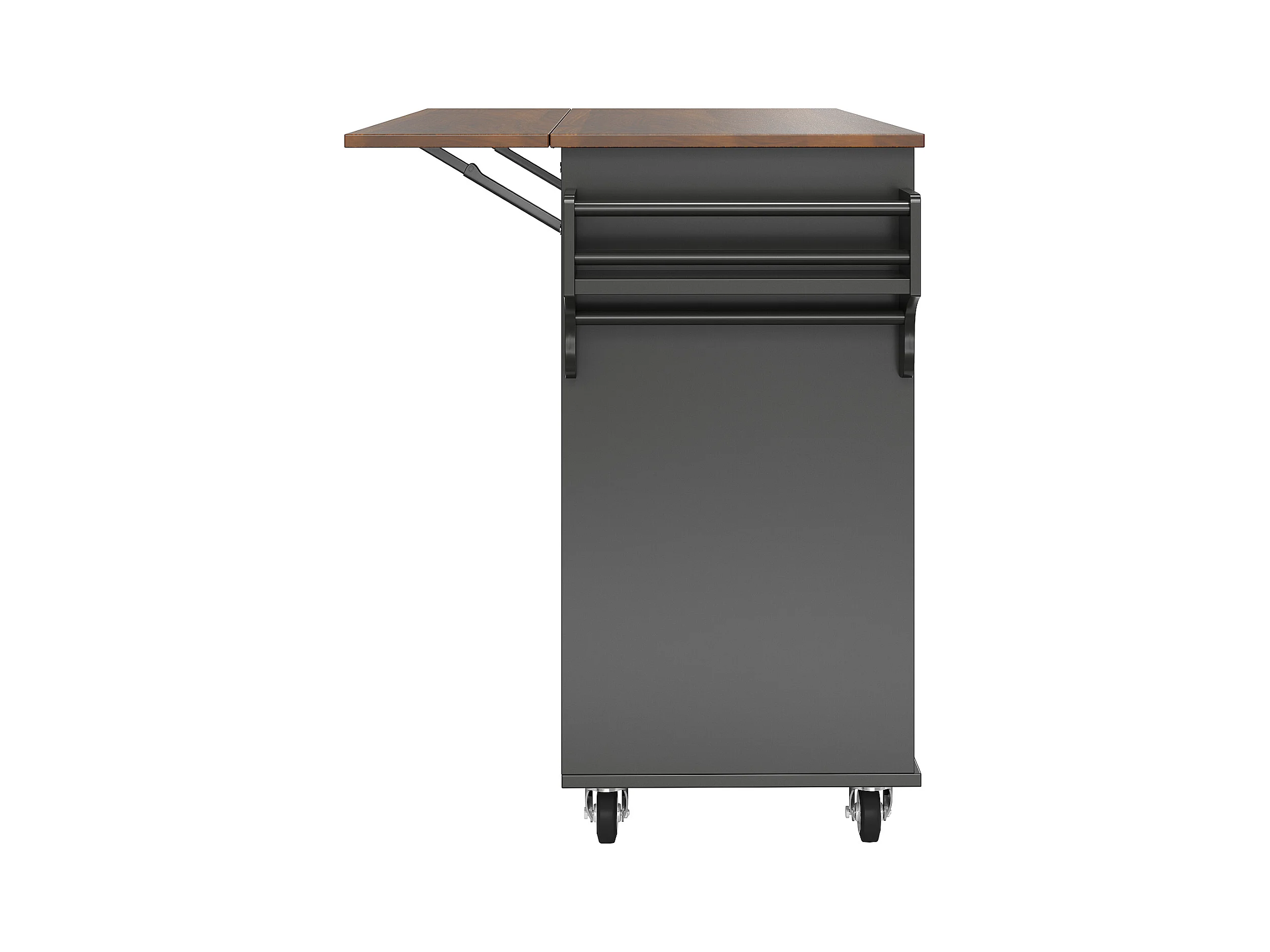Ilot central de cuisiner - chariot à roulette avec plateau extensible - 2 tiroirs et 2 portes - Noir