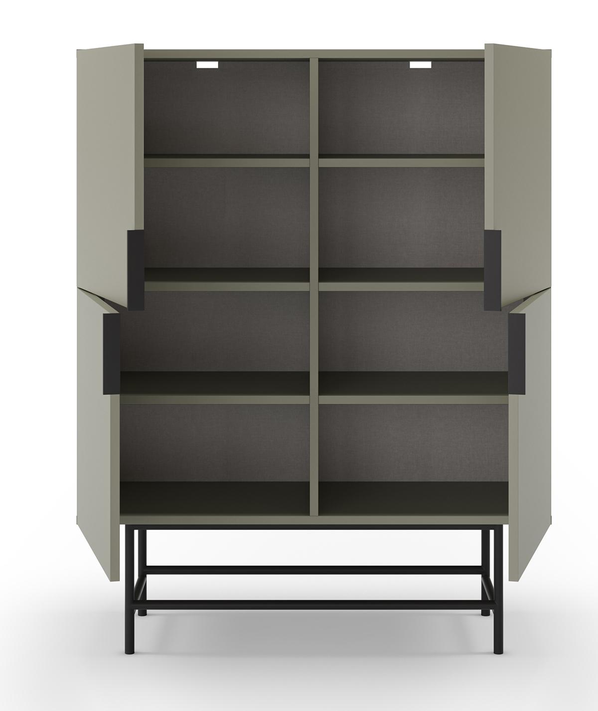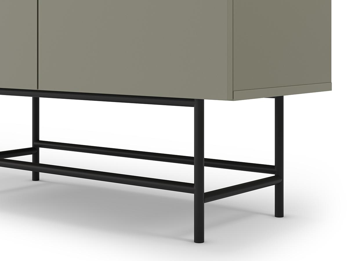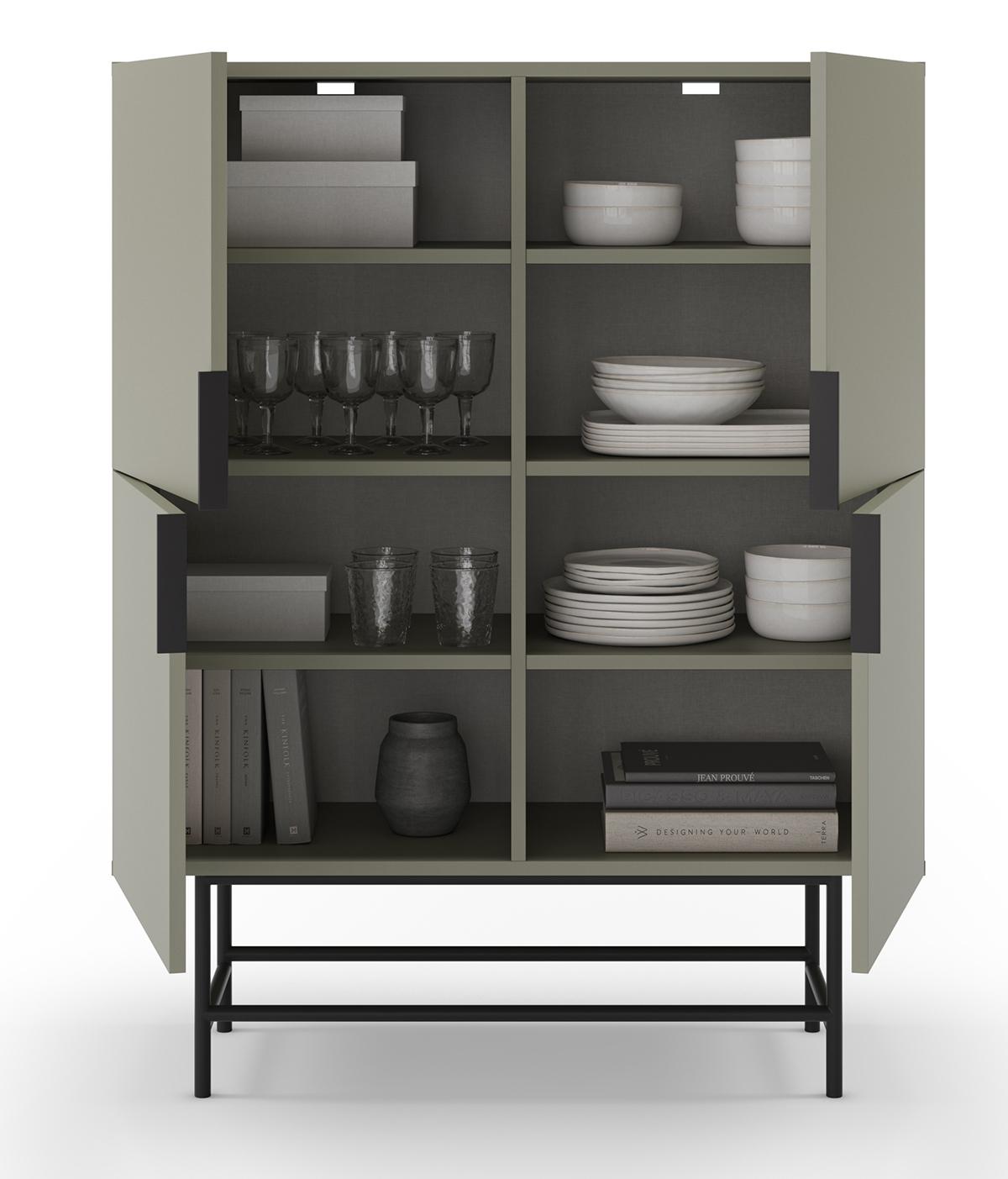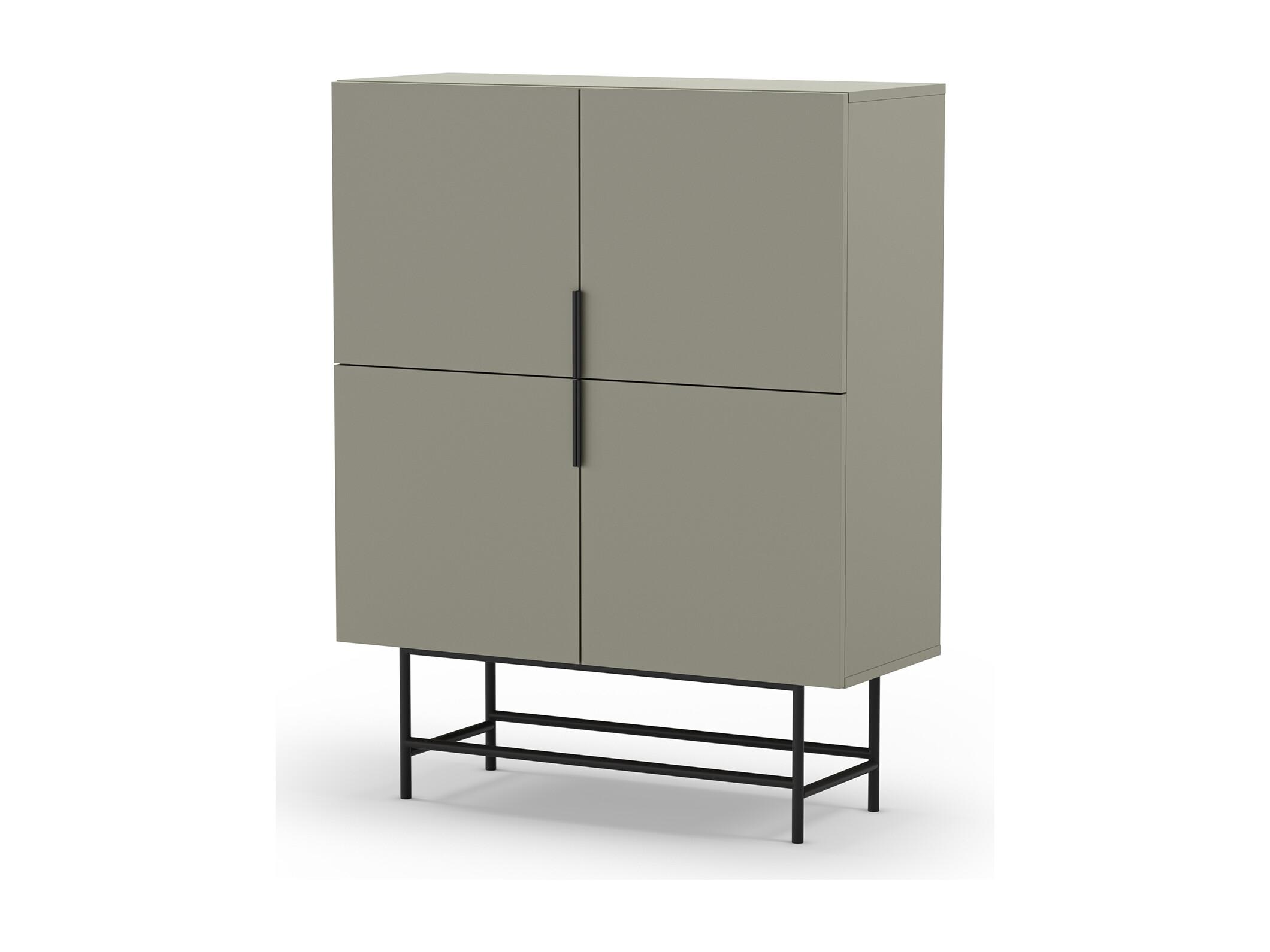 Buffet, meuble de rangement avec 4 portes aspect bois coloris Vert, pieds en métal noir - Longueur 100 x Profondeur 40 x Hauteur 128 cm