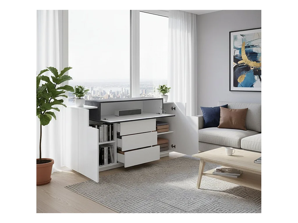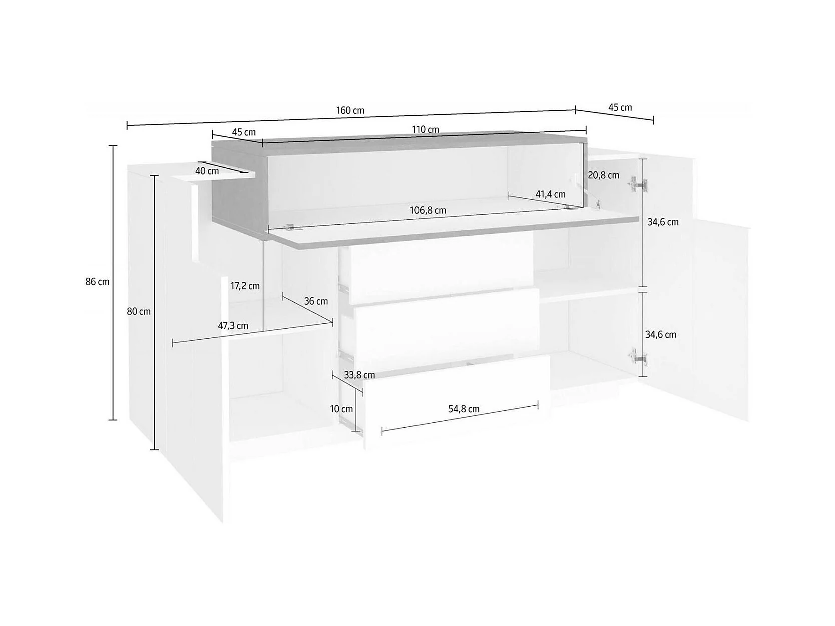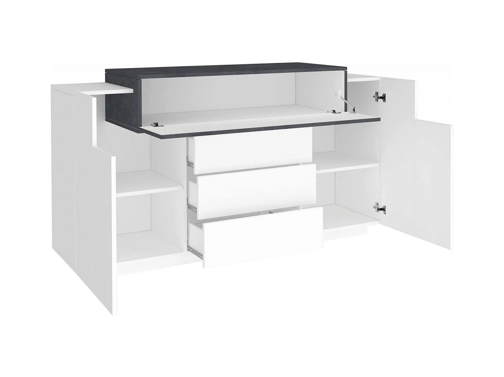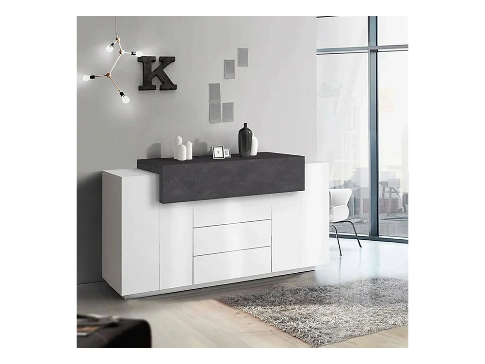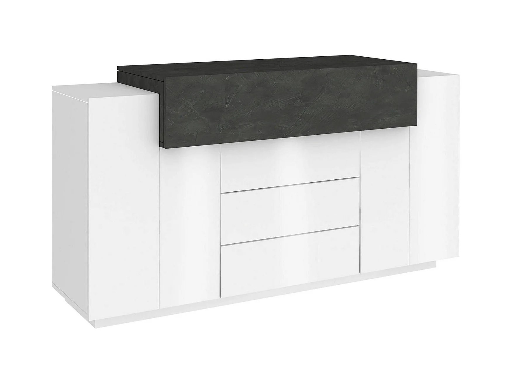 Buffet Milo, Buffet de cuisine avec 3 portes et 3 tiroirs, Buffet de salon, 100% Made in Italy, 160x45h86 cm, Blanc brillant et ardoise