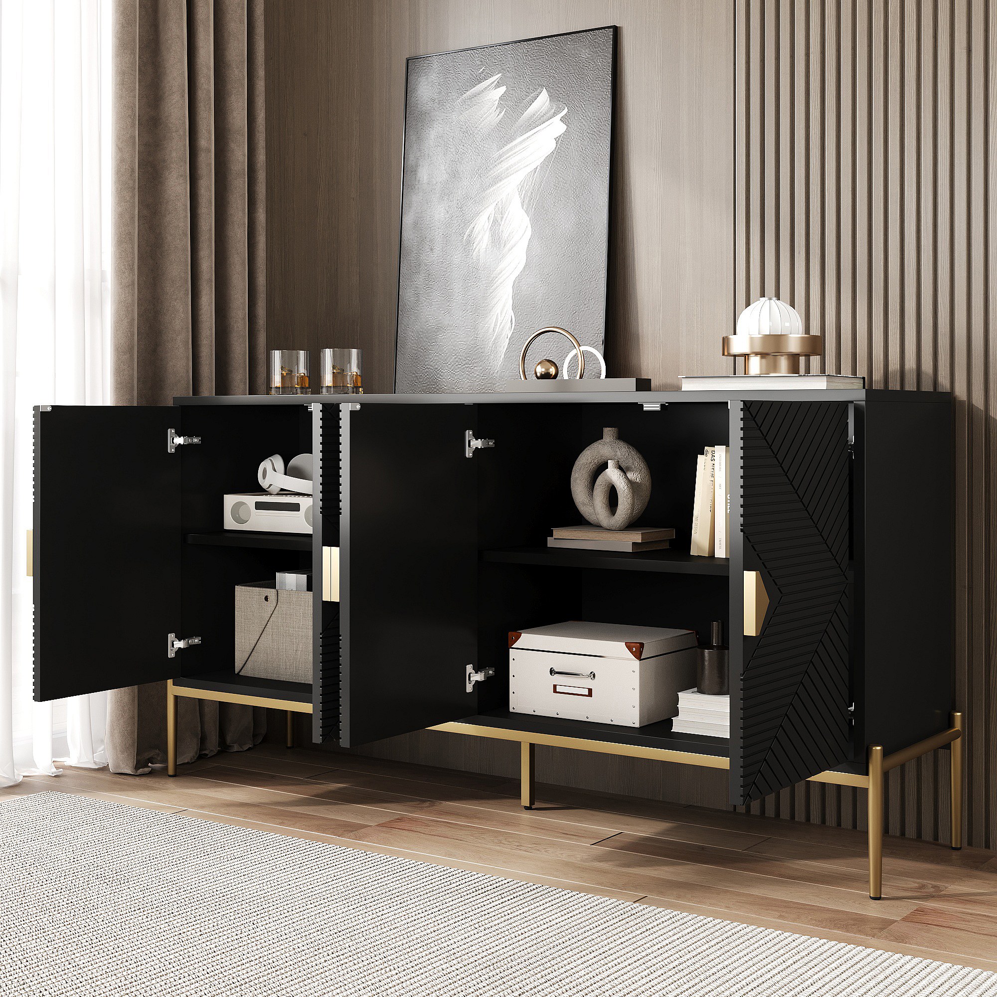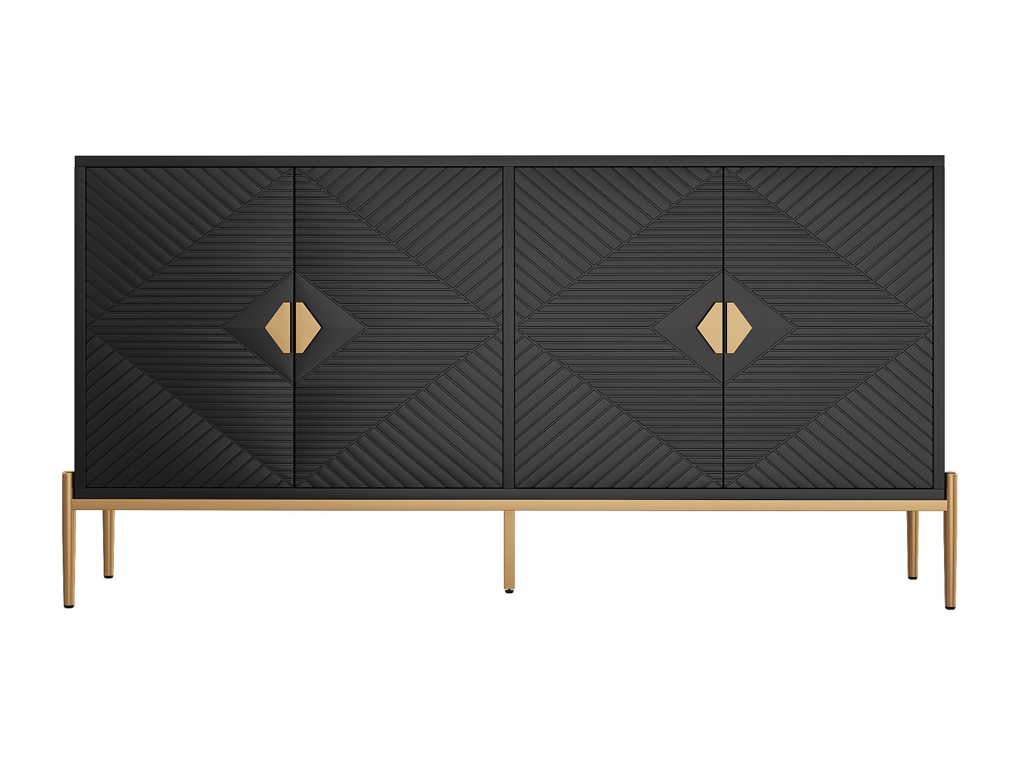 Buffet moderne 162x40x80 cm - avec 4 portes - Pieds en métal - MDF + panneaux de particules - Noir