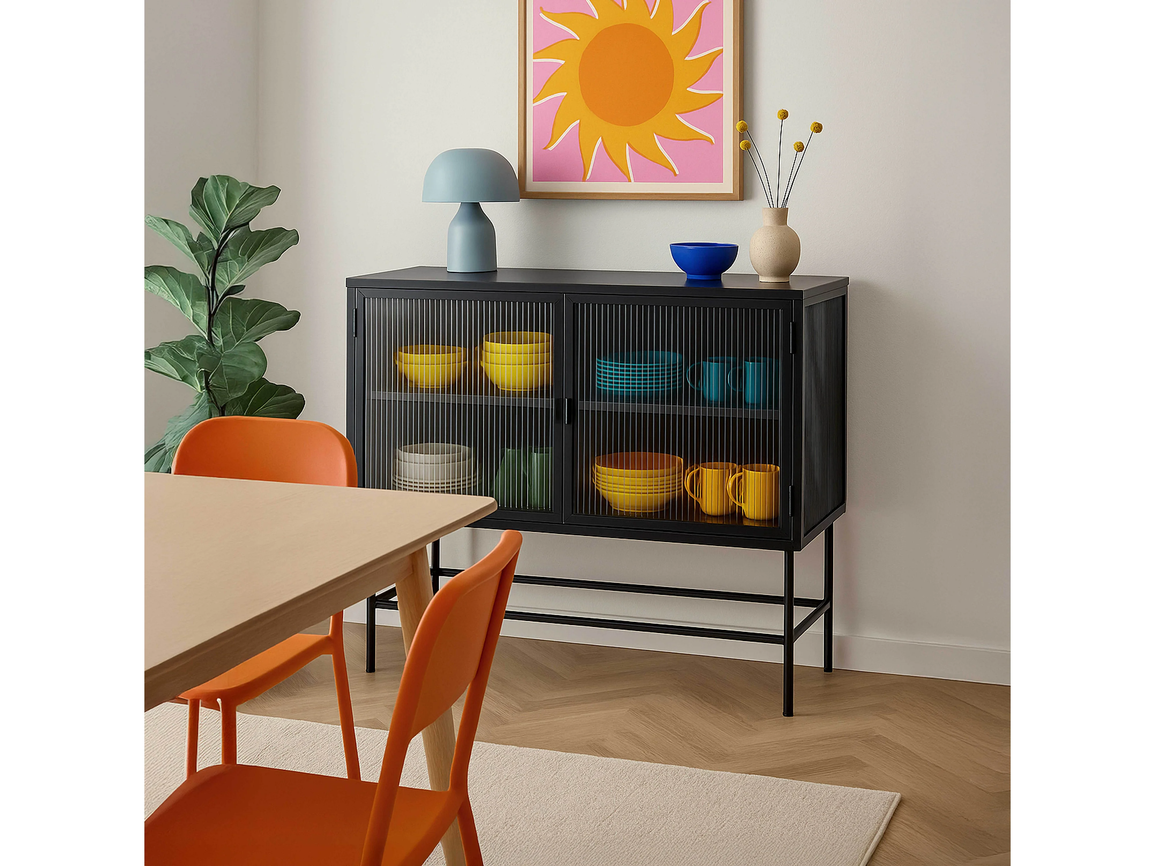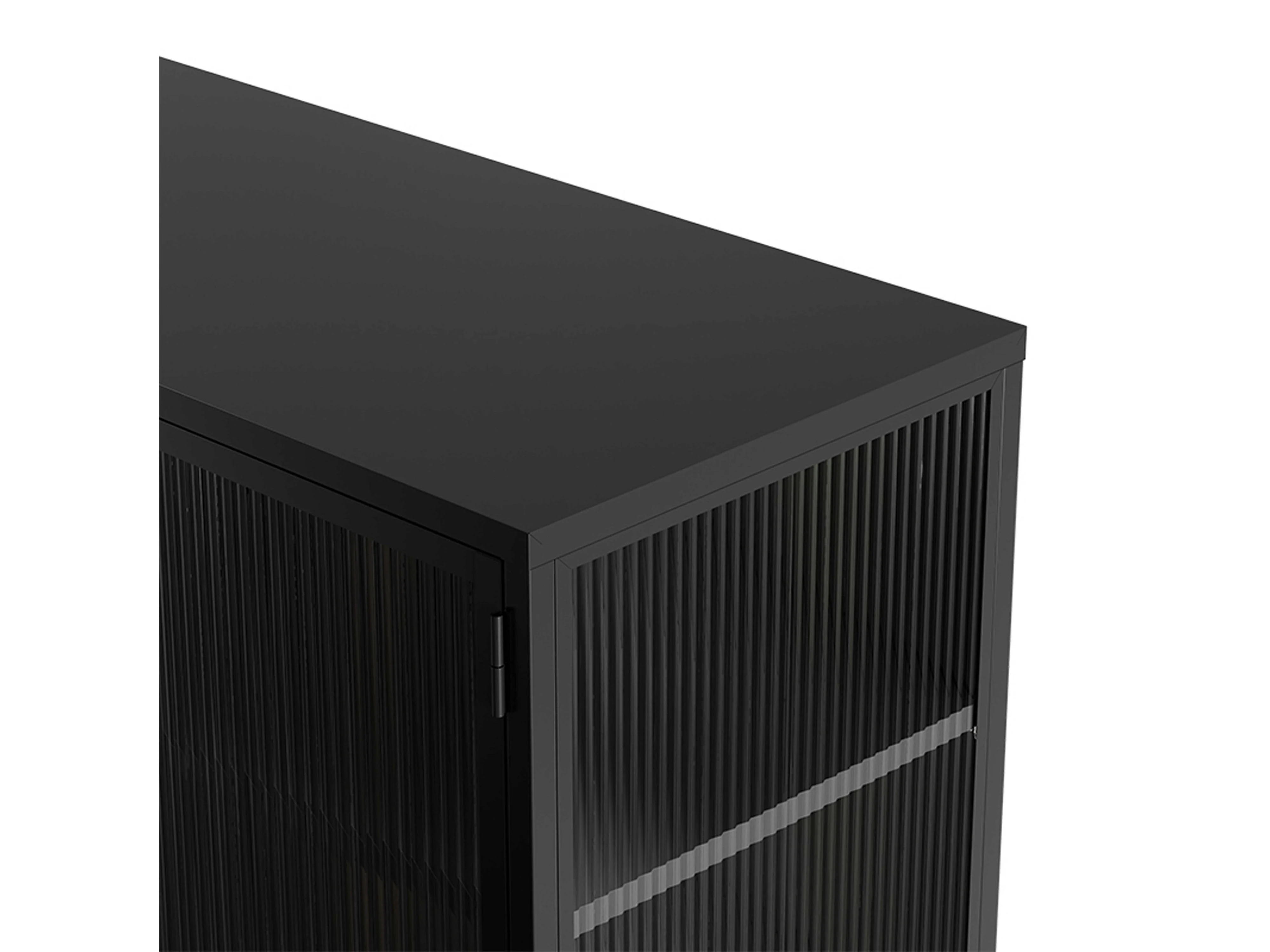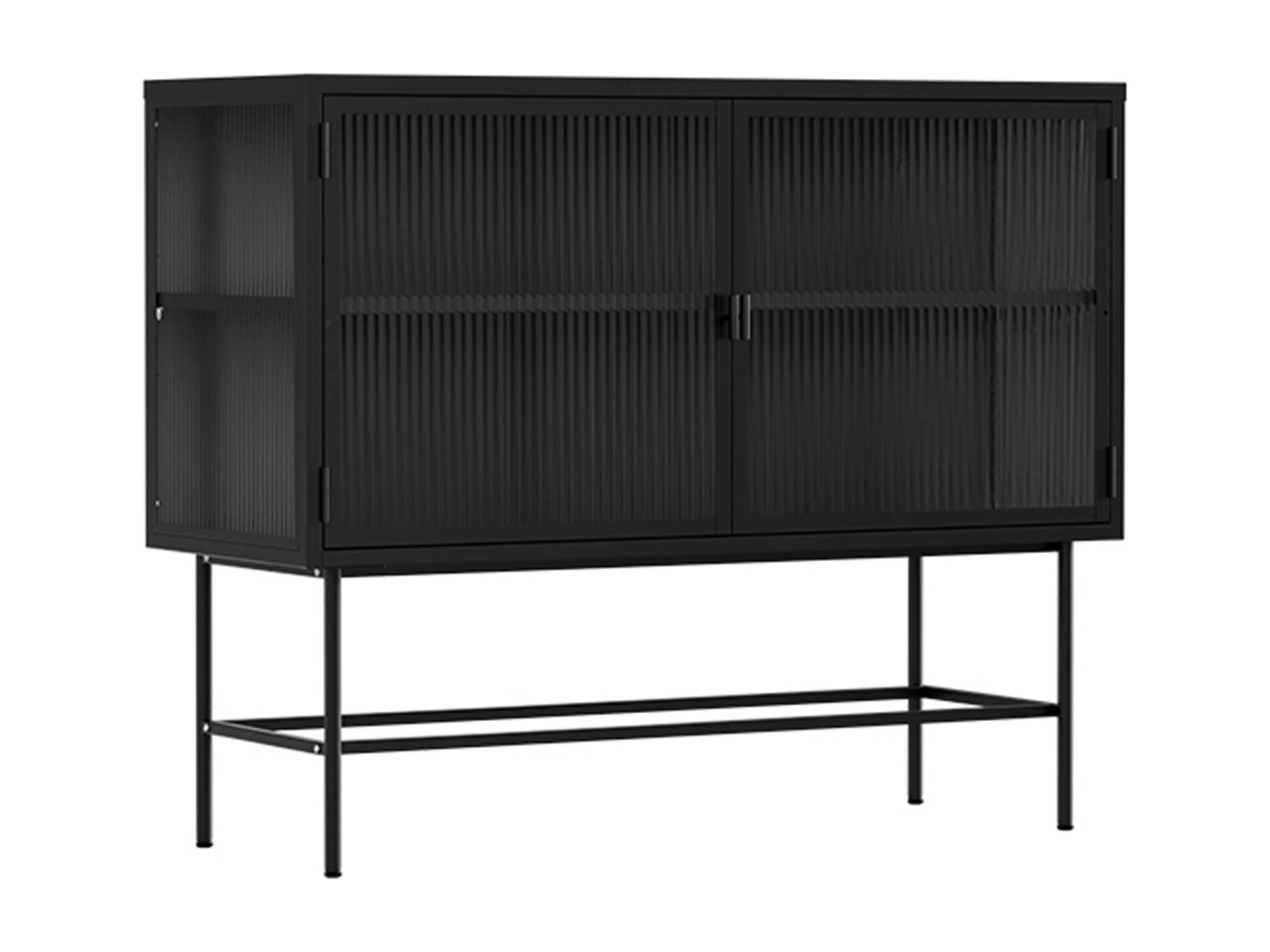 Buffet moderne 2 portes 110 cm en métal et verre noir