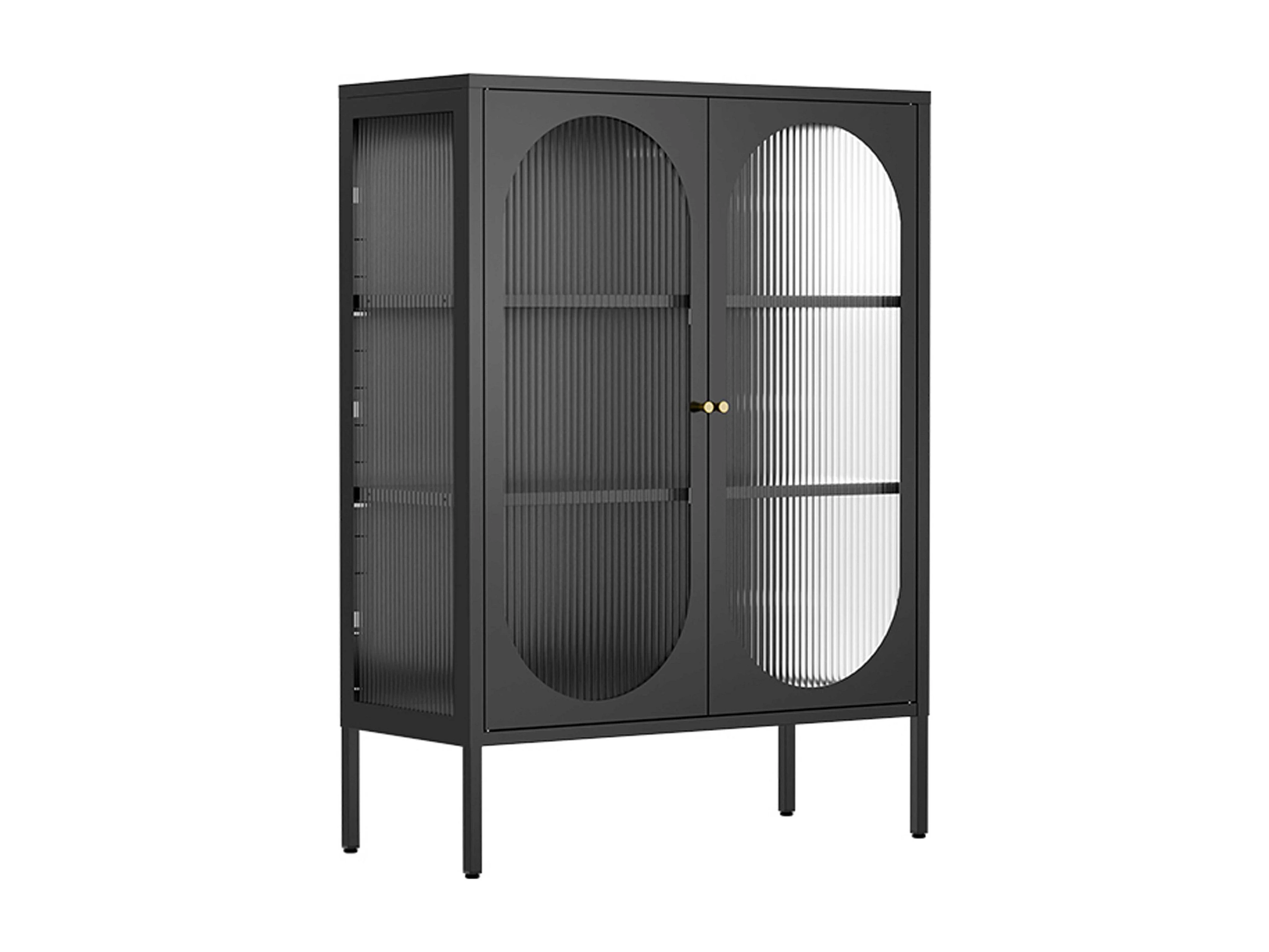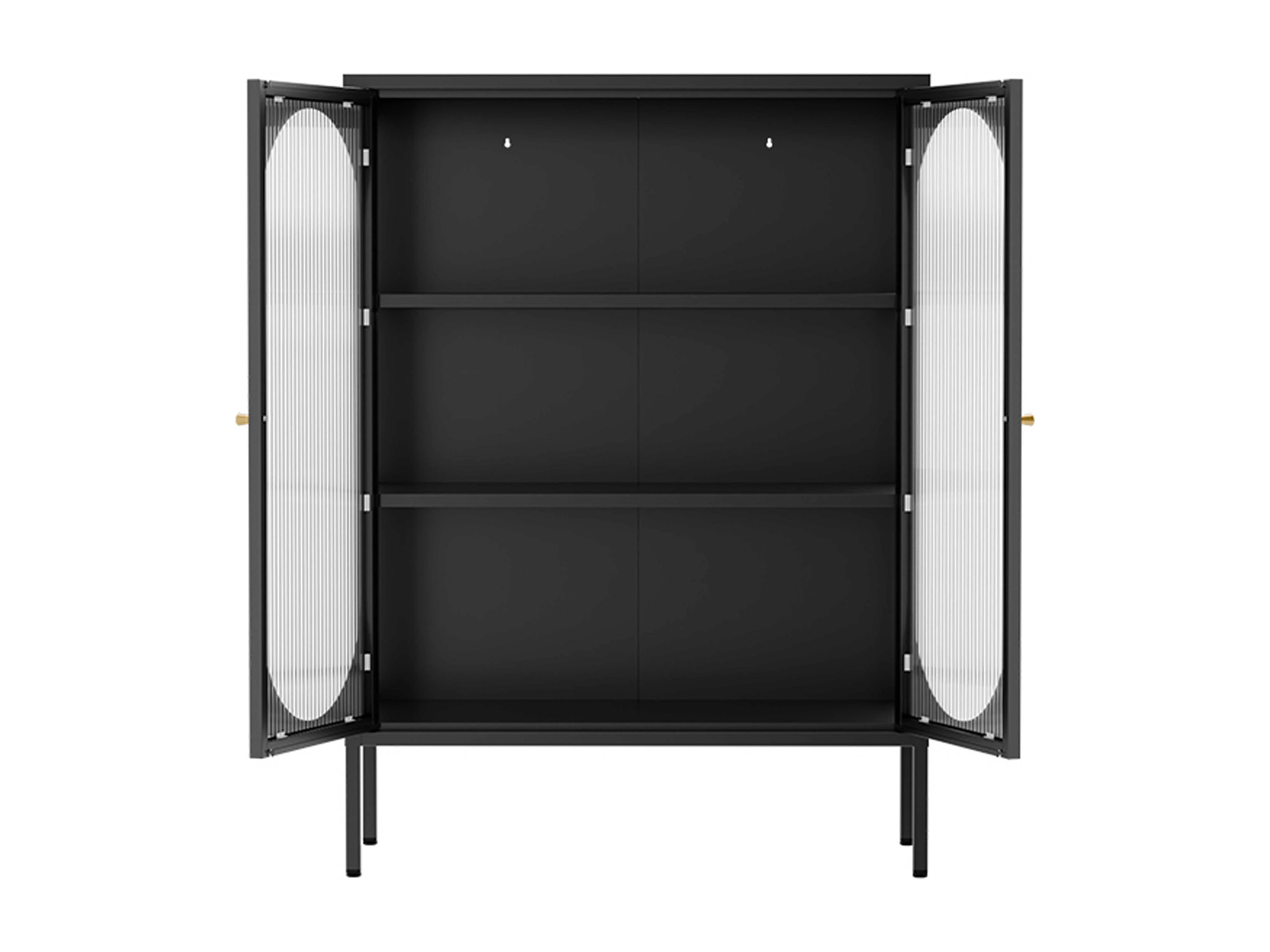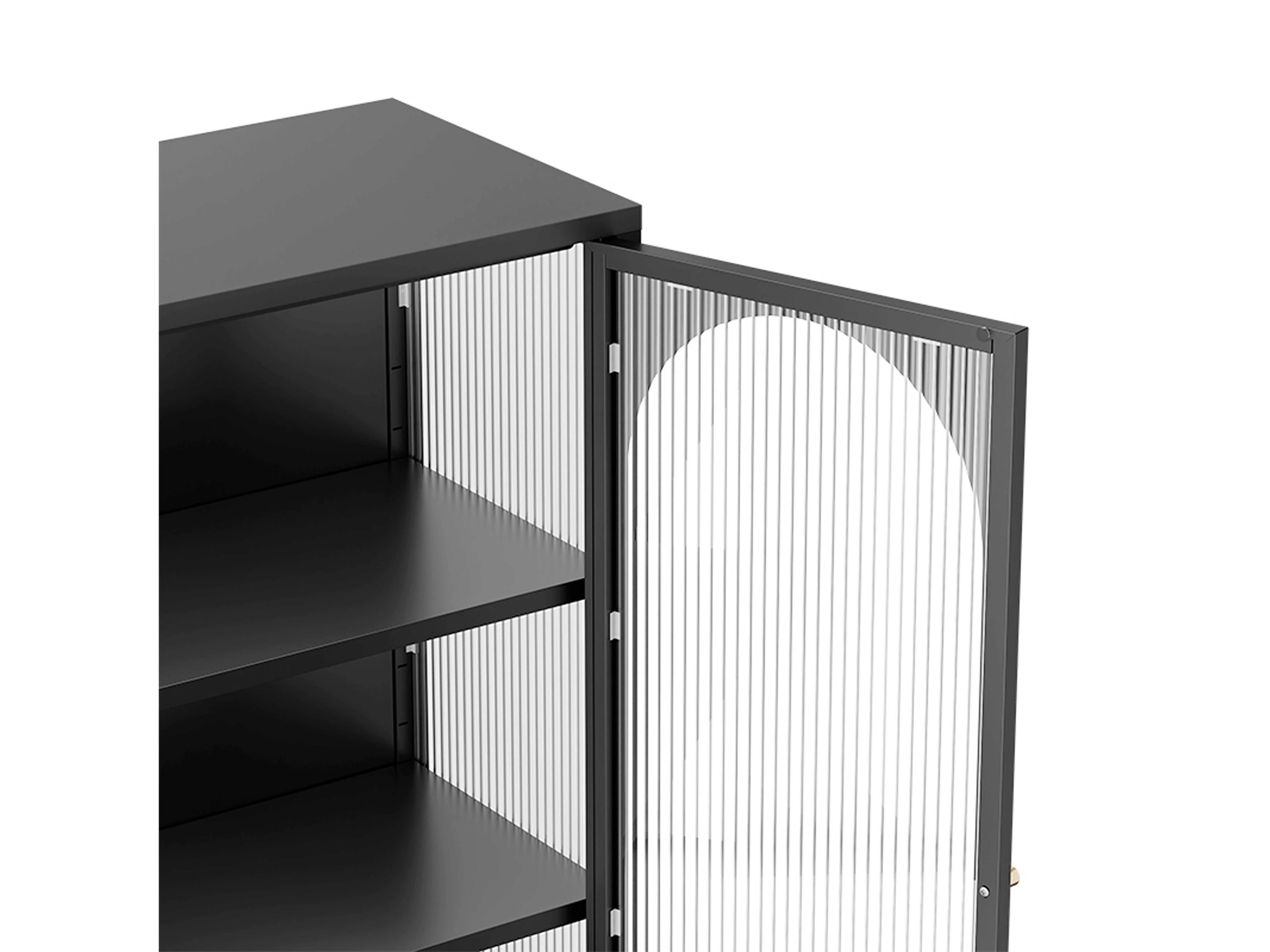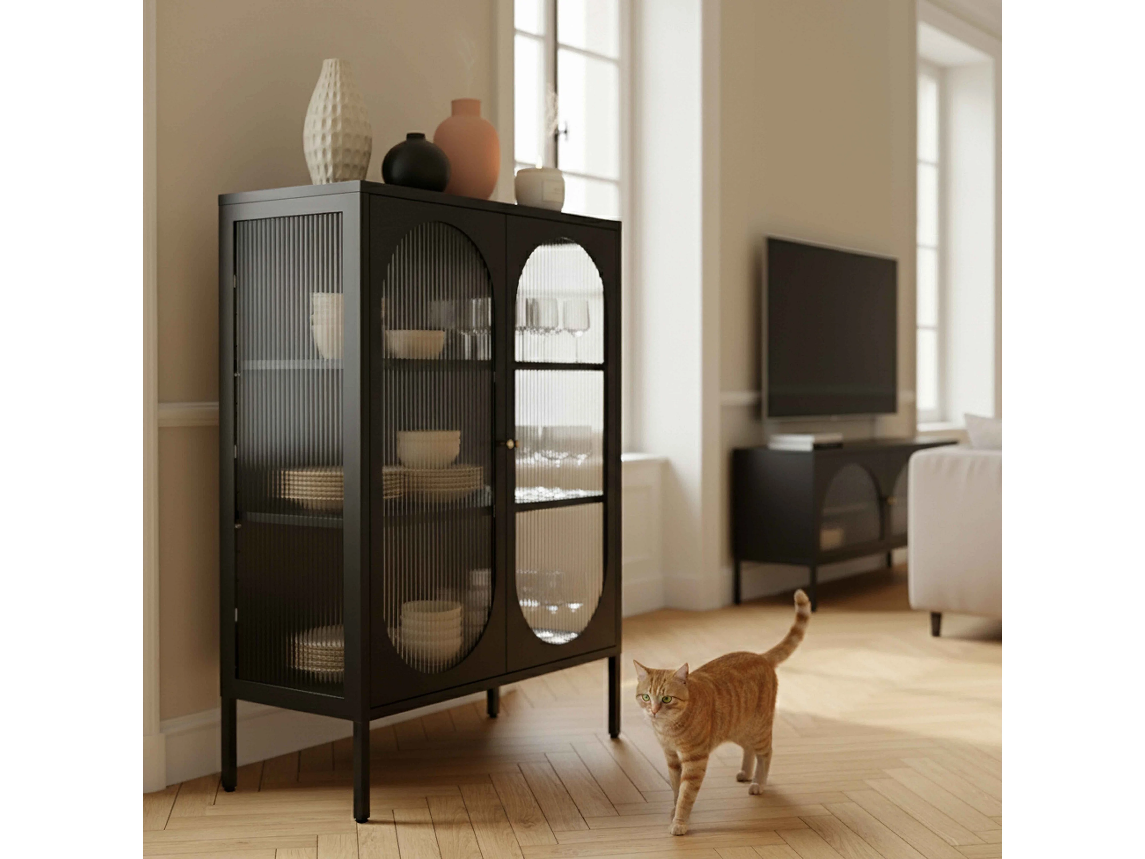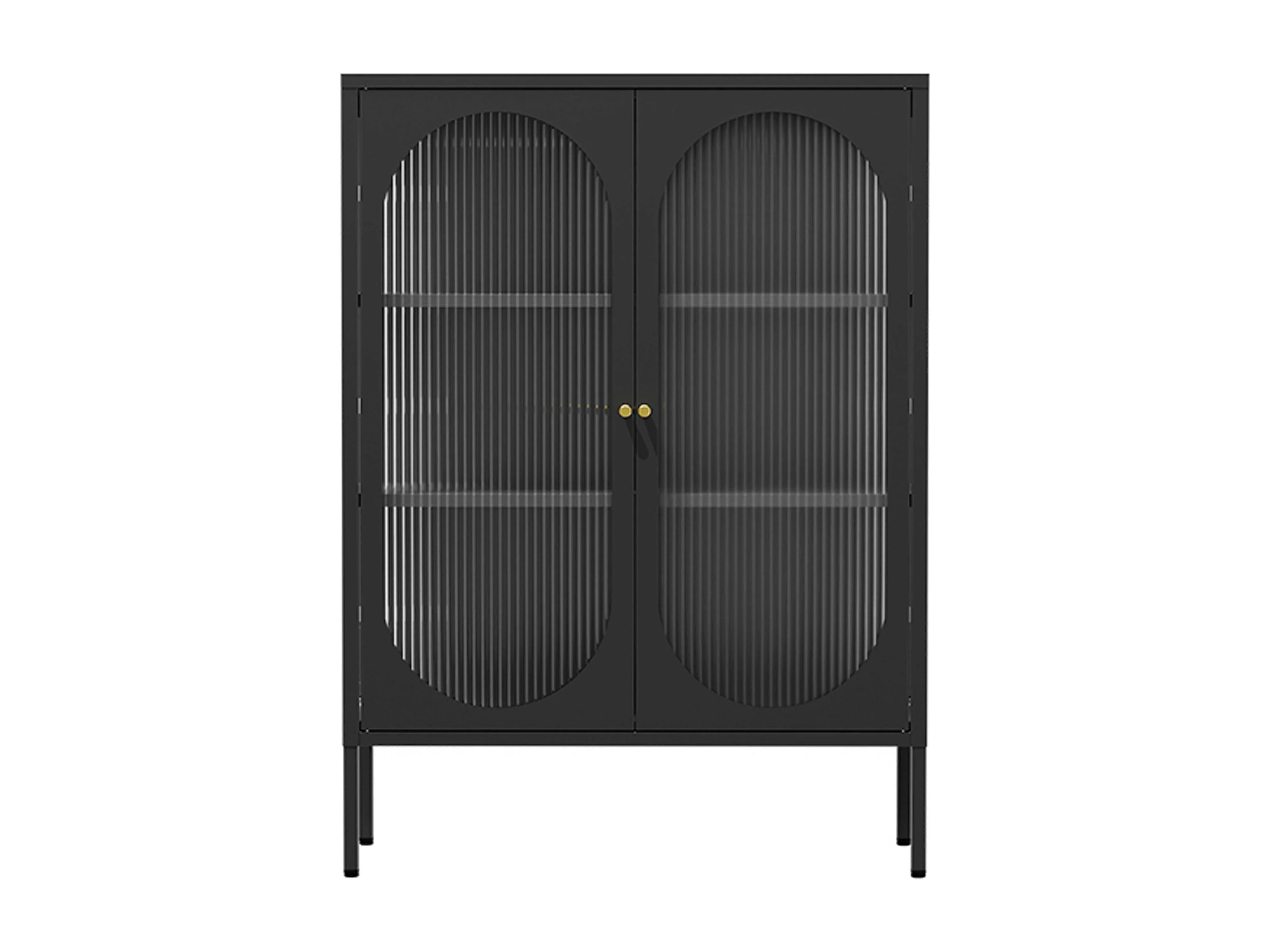 Buffet moderne 2 portes 80 cm en métal et verre noir