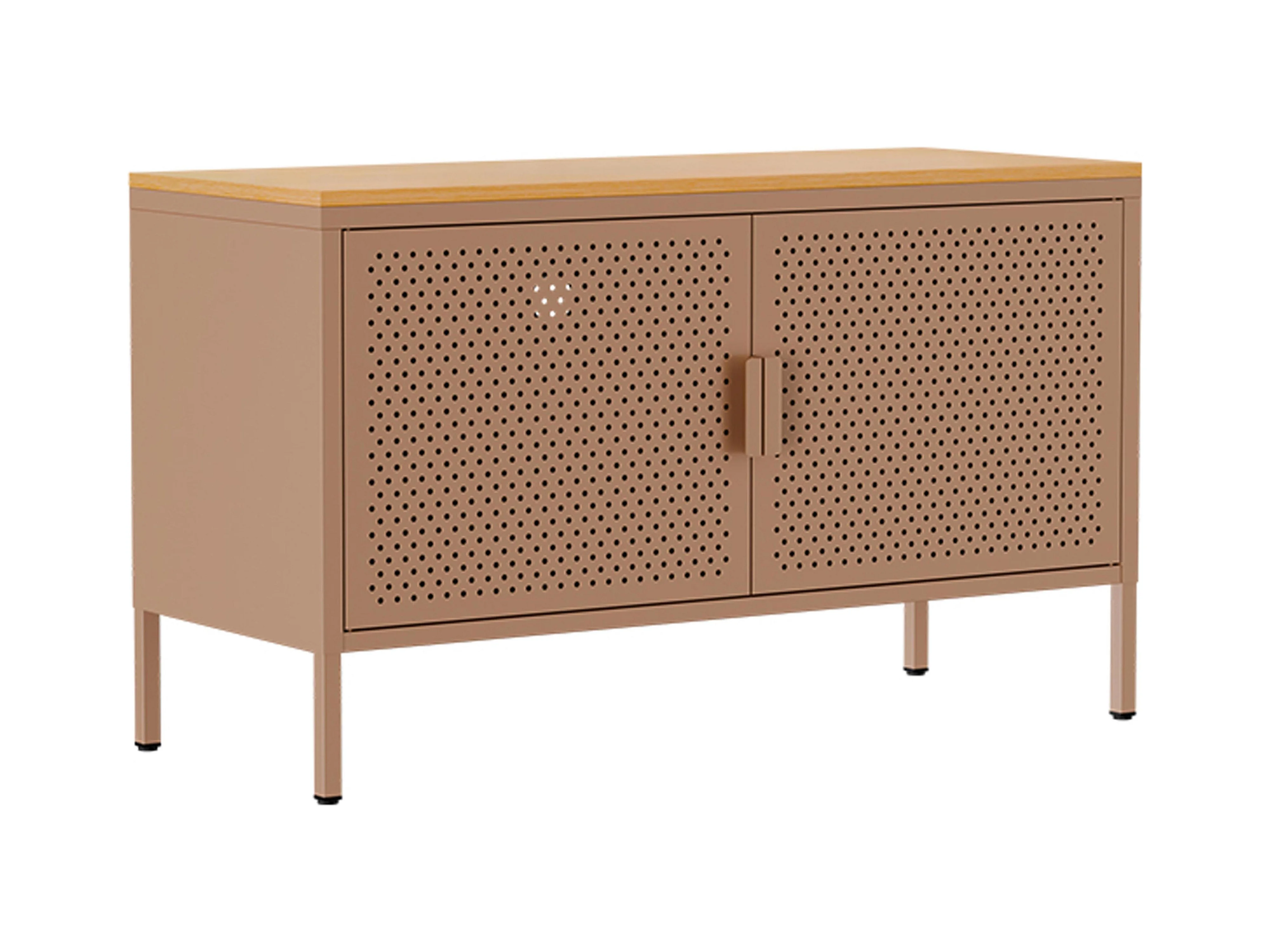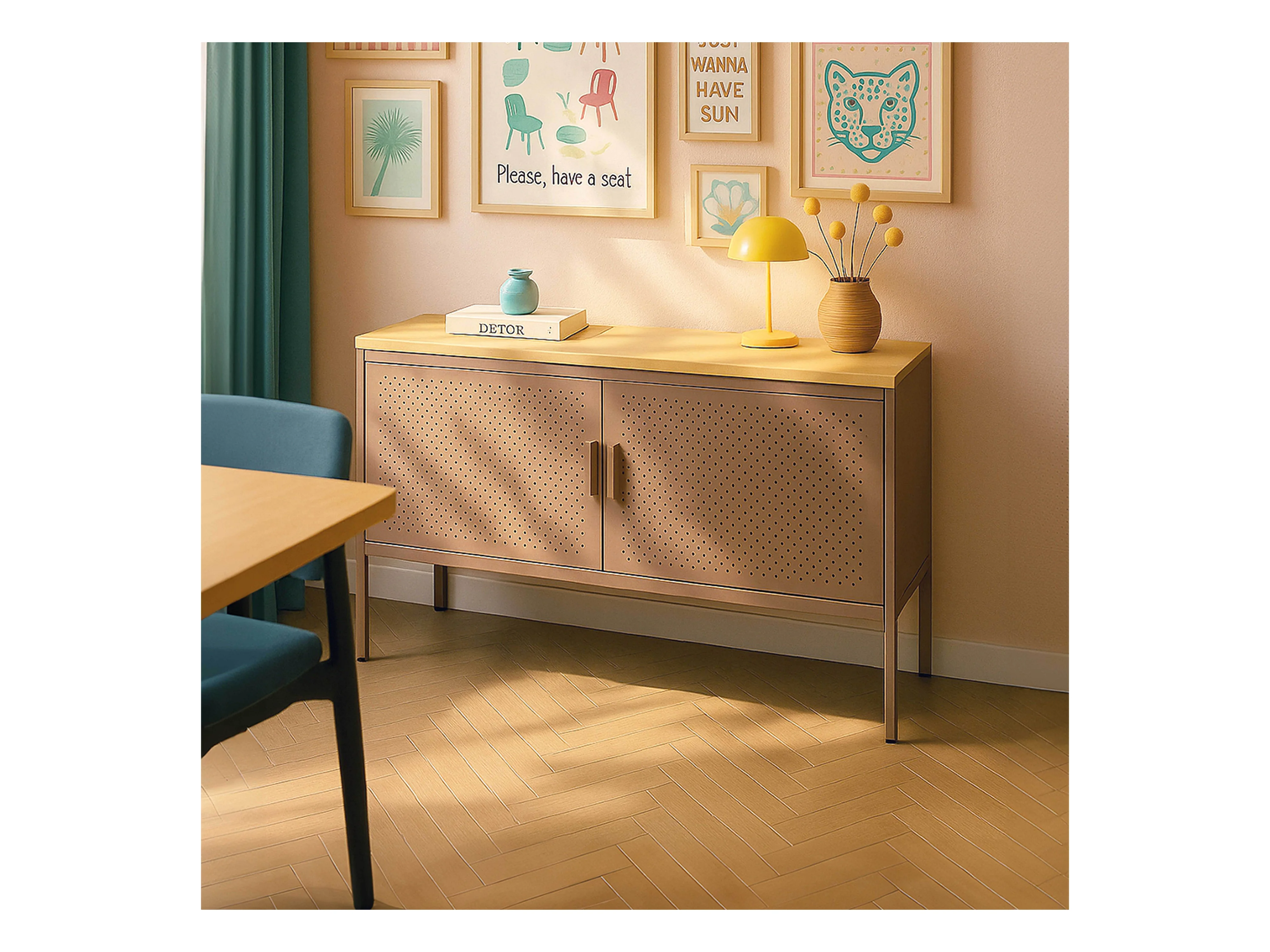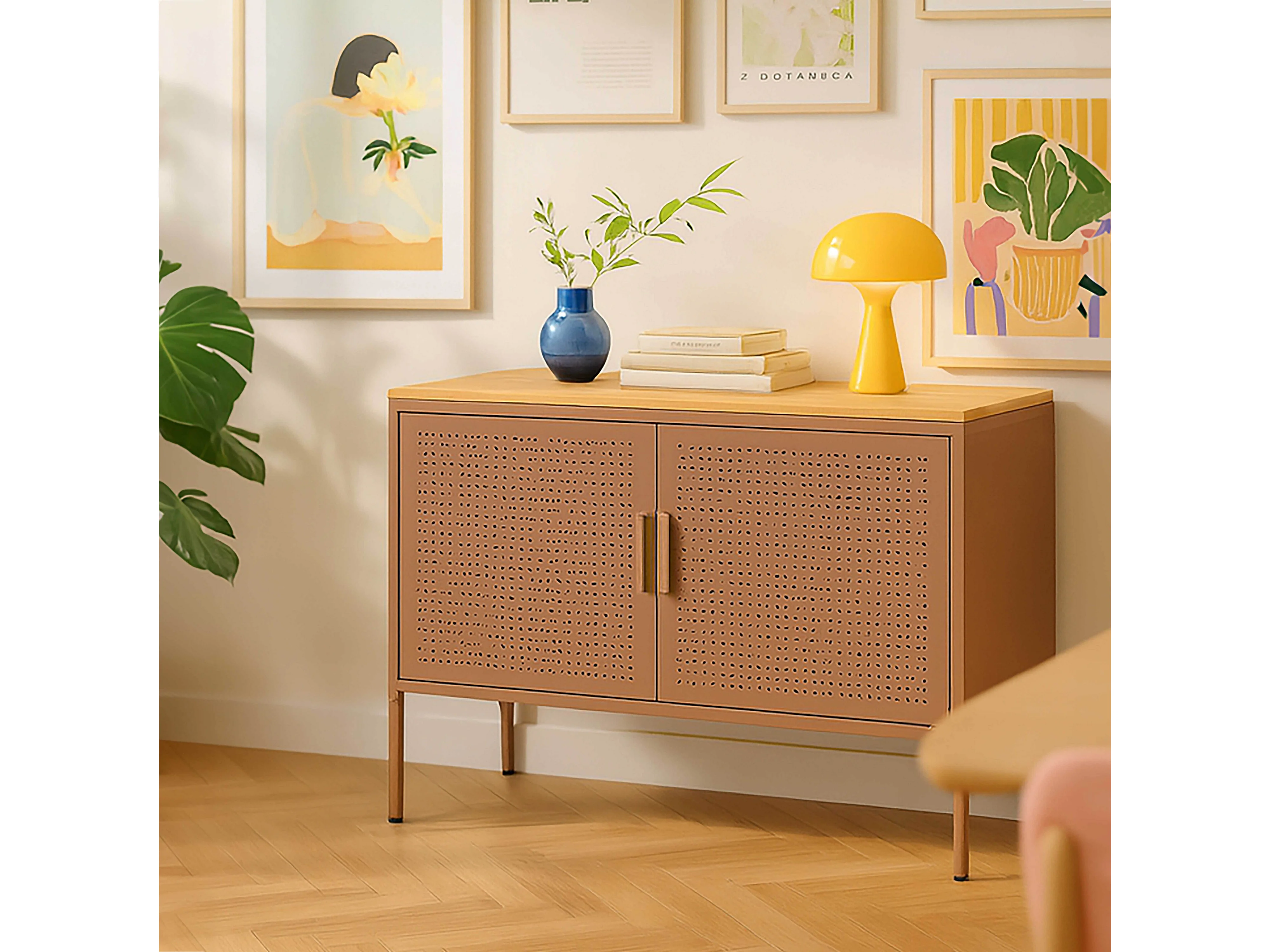 Buffet moderne 2 portes 110 cm en métal et verre marron
