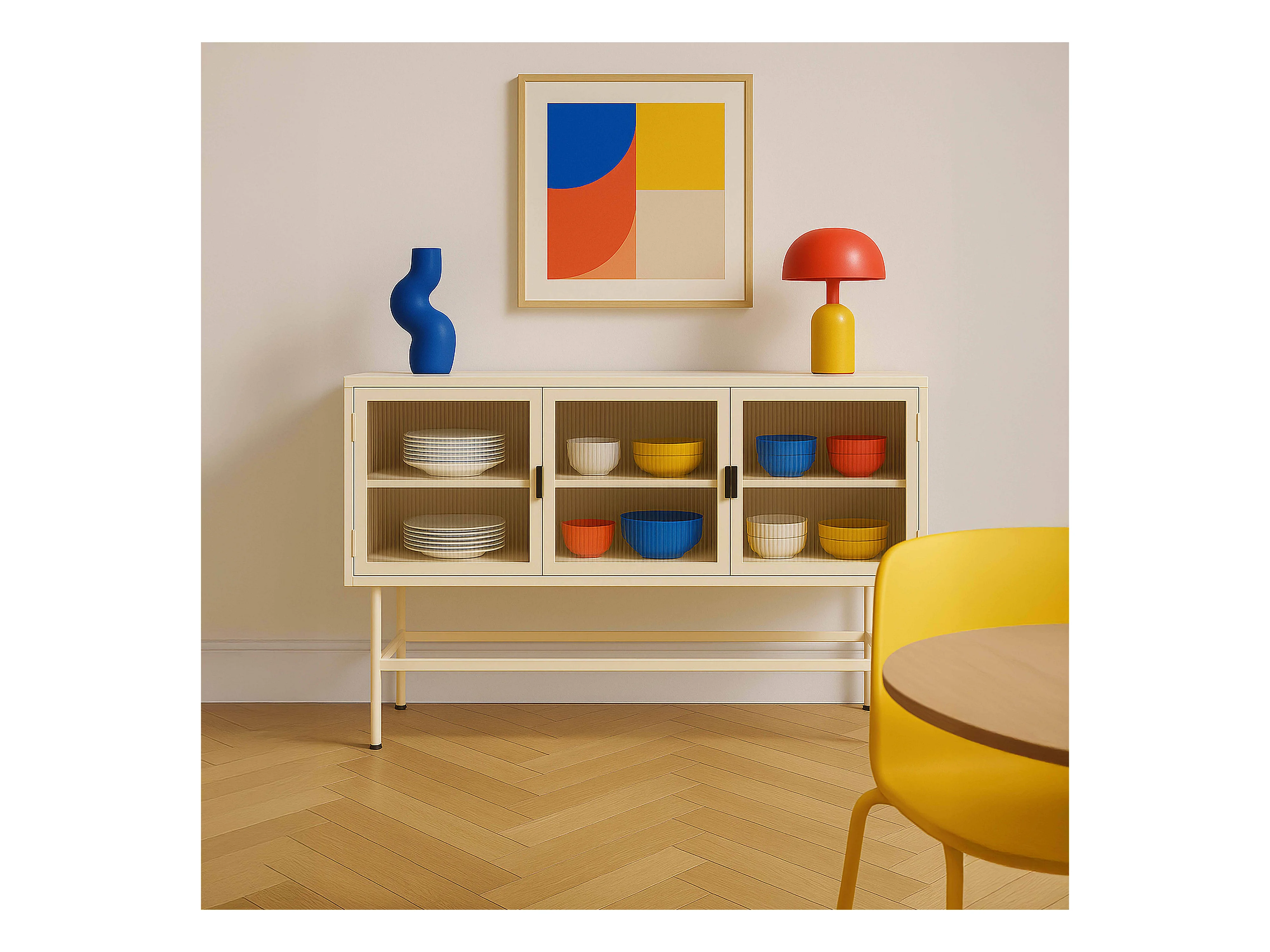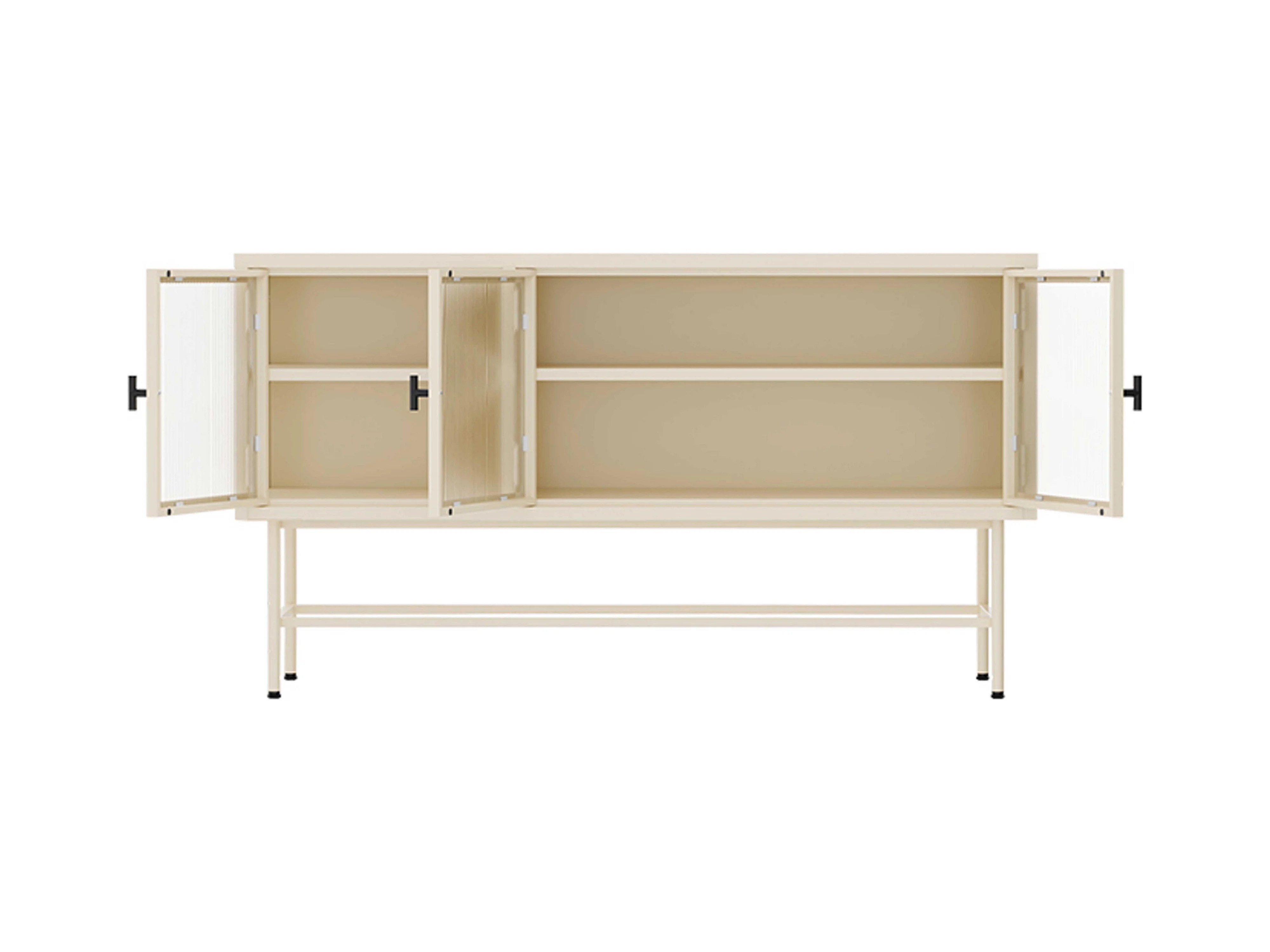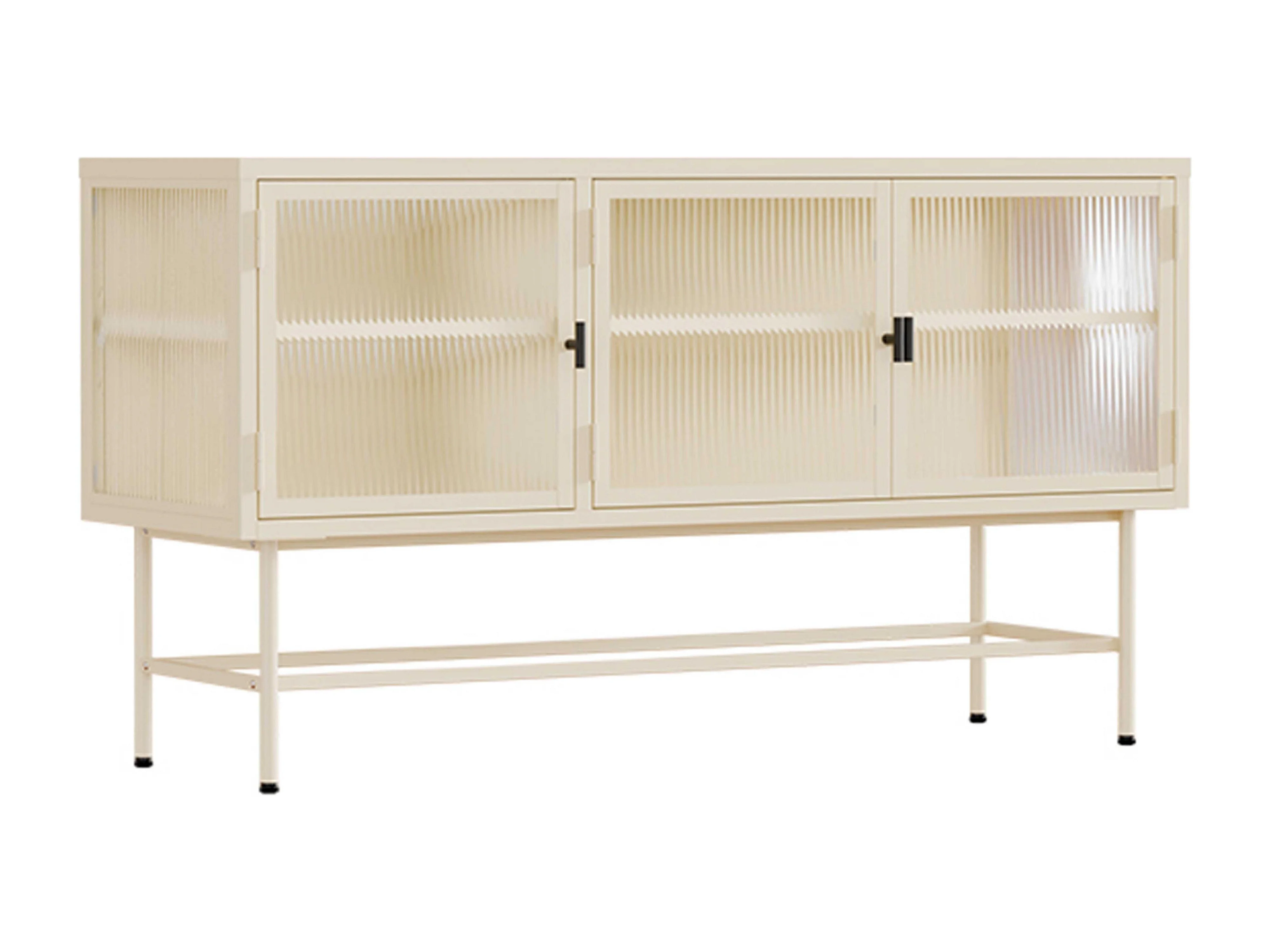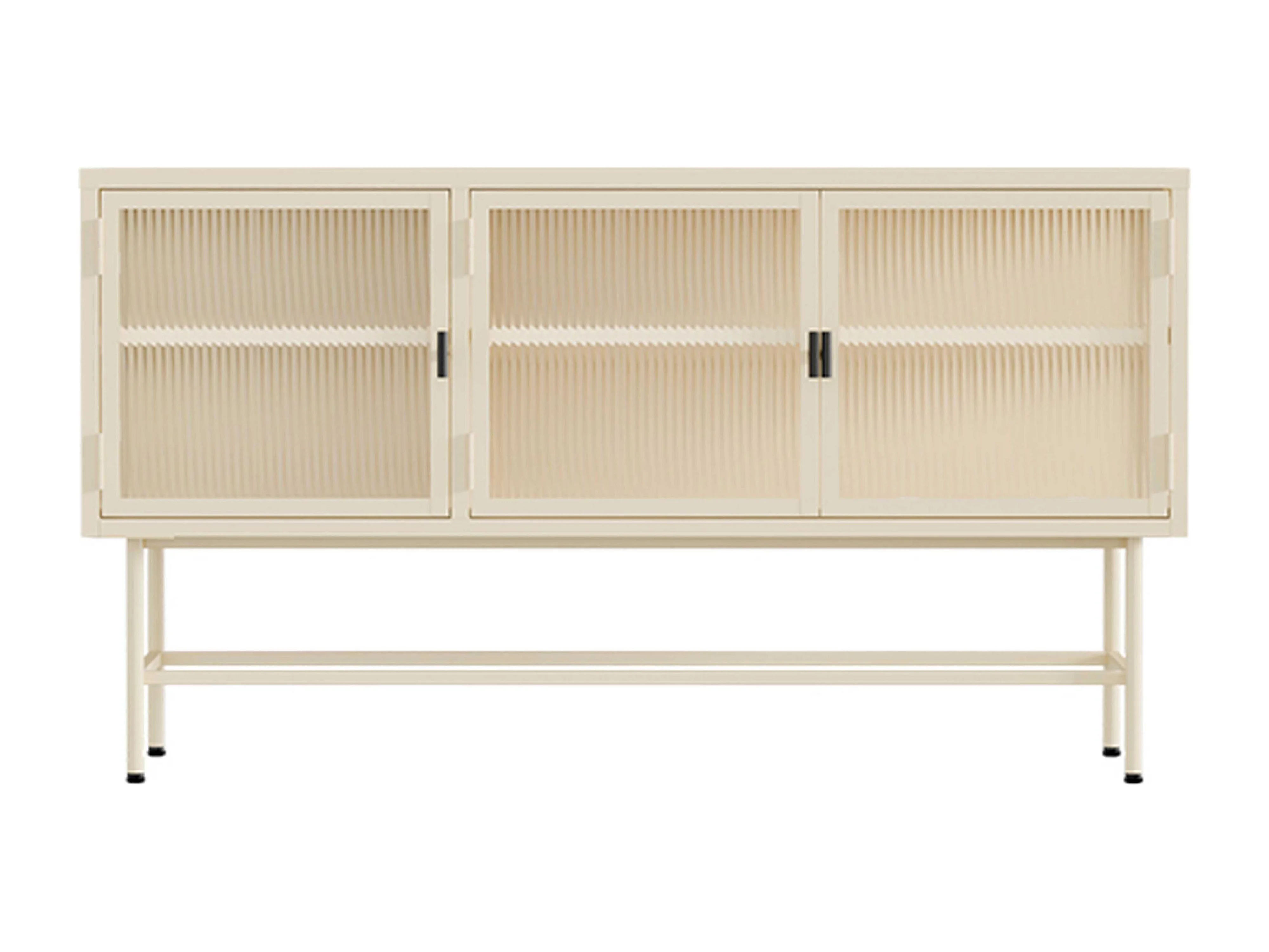 Buffet moderne 3 portes 120 cm en métal et verre écru