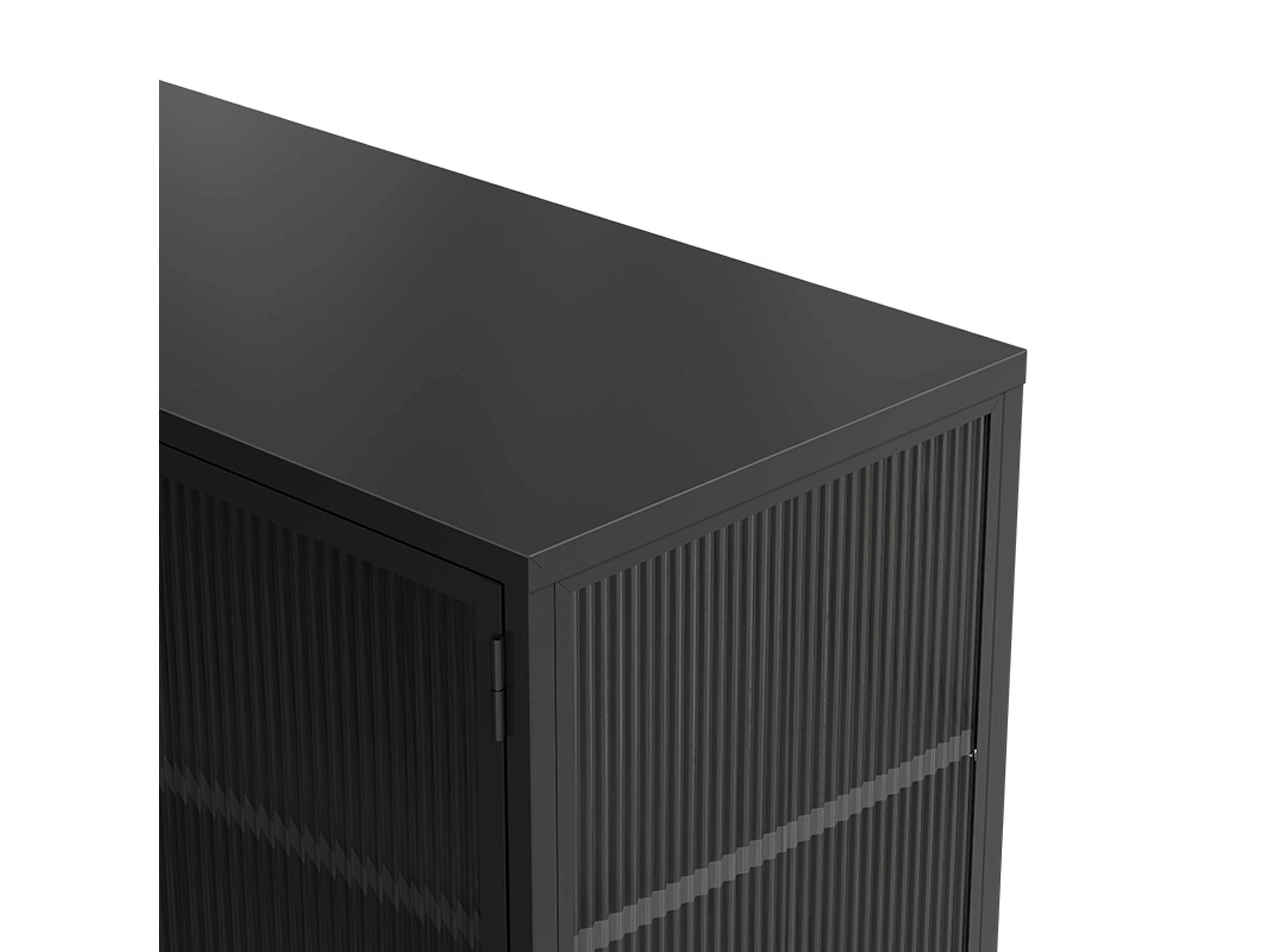 Buffet moderne 3 portes 120 cm en métal et verre noir