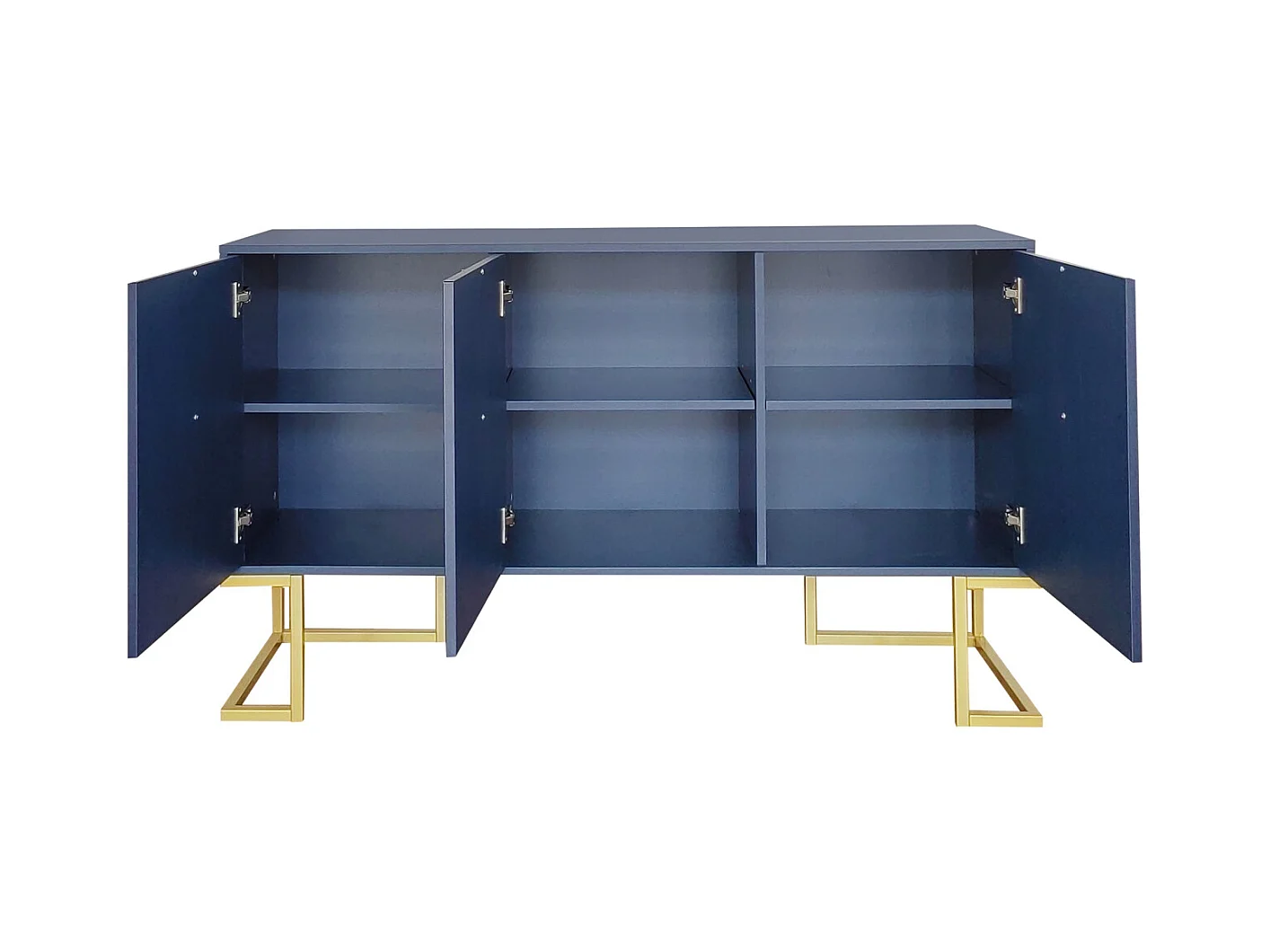 Buffet moderne 3 portes bleu marine – Étagères réglables, portes en U et socle stable, élégant et pratique pour salle à manger ou cuisine