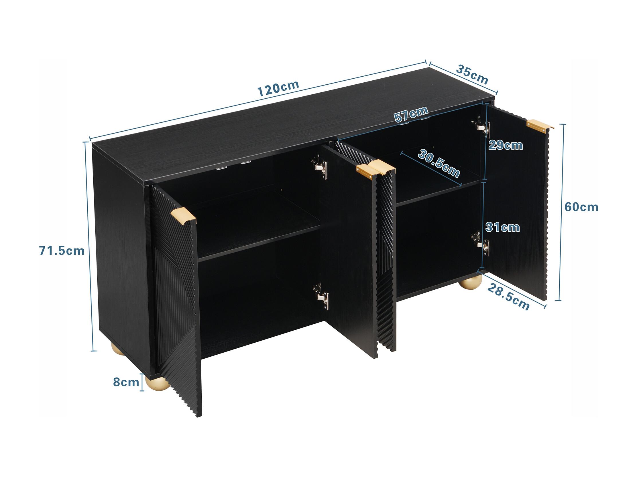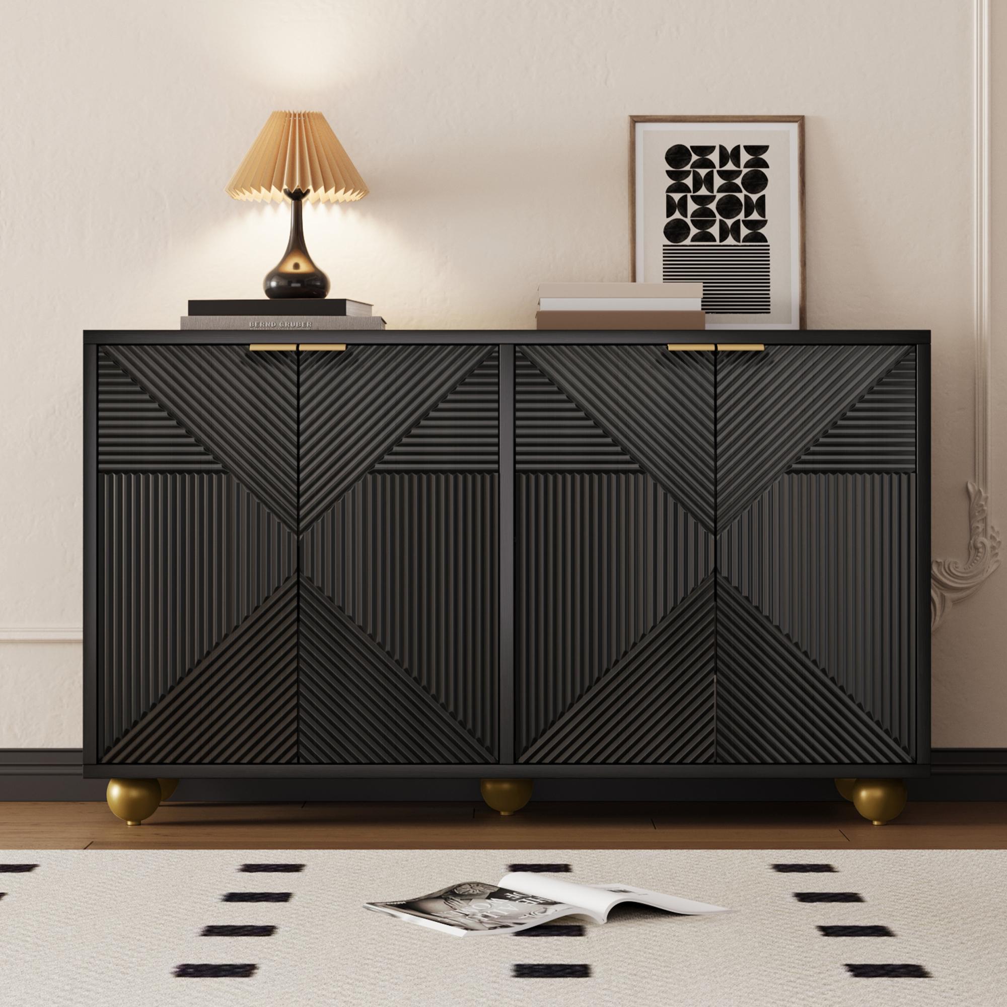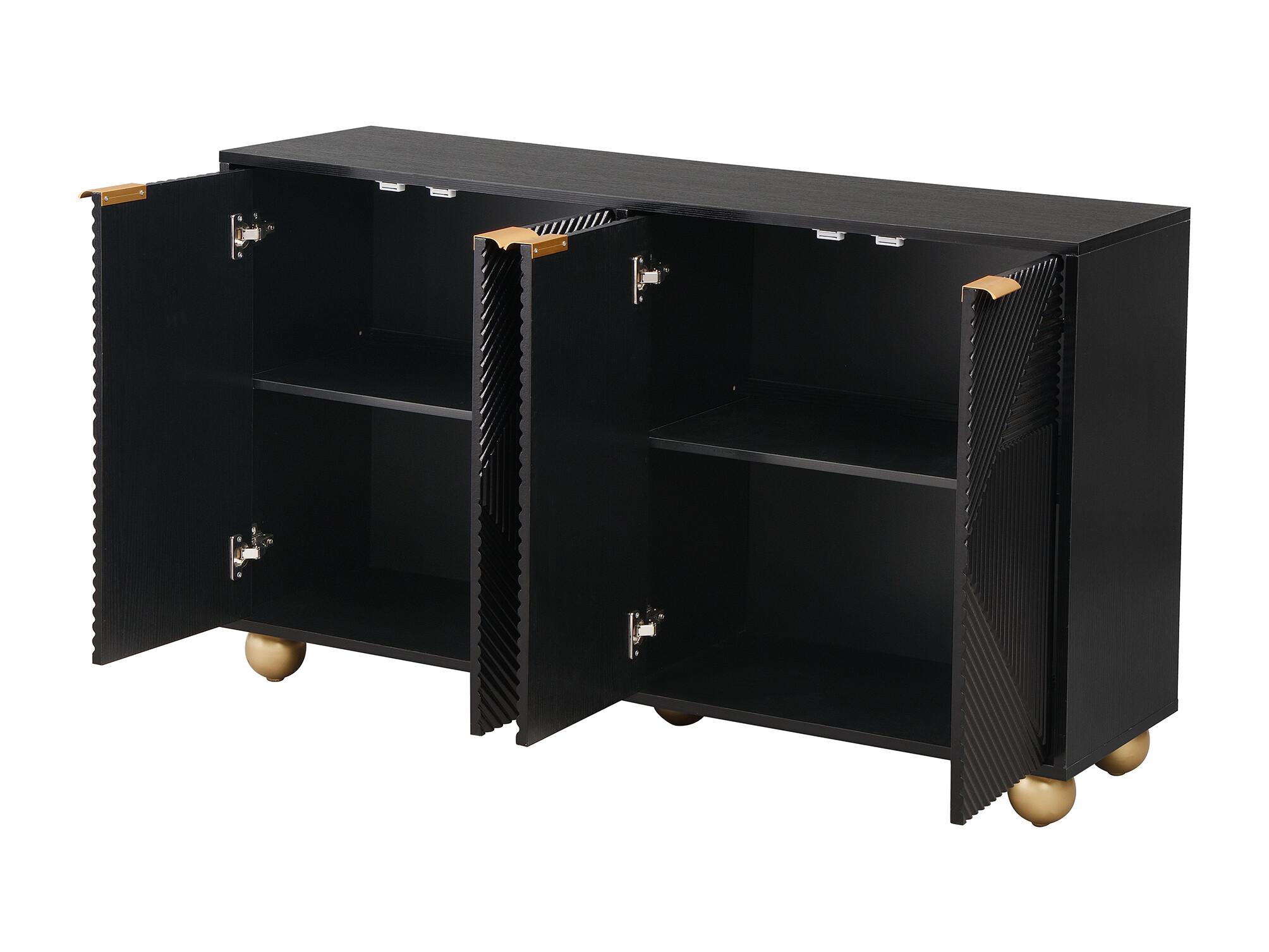 Buffet Moderne, Armoire de Salon avec 4 Portes Sculptées et Étagères Réglables, Noir