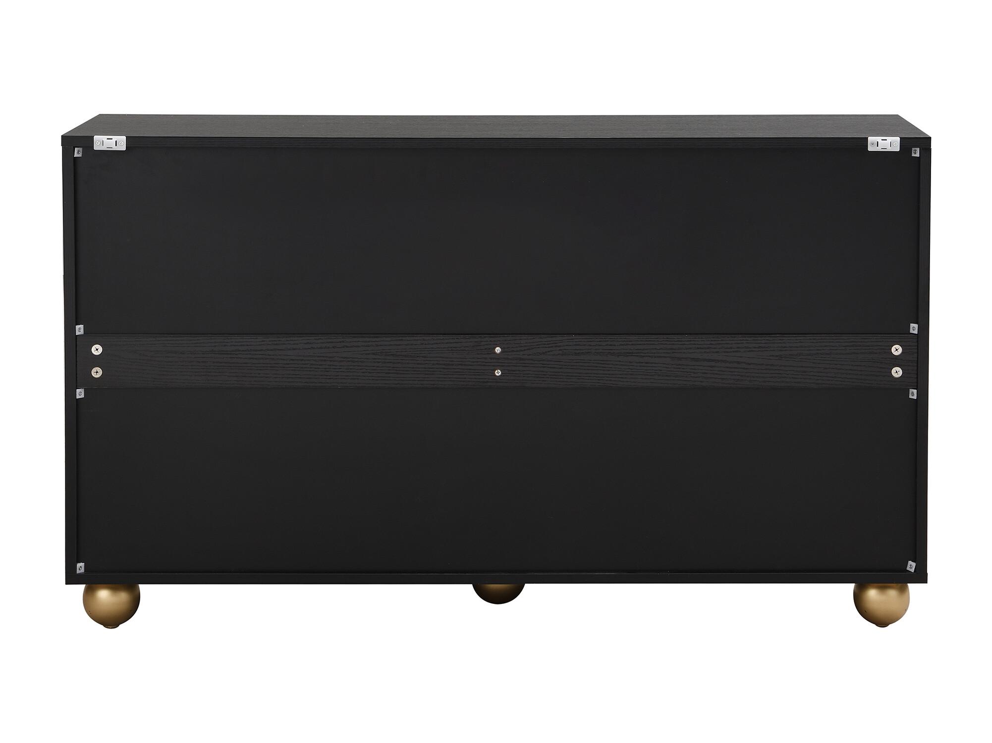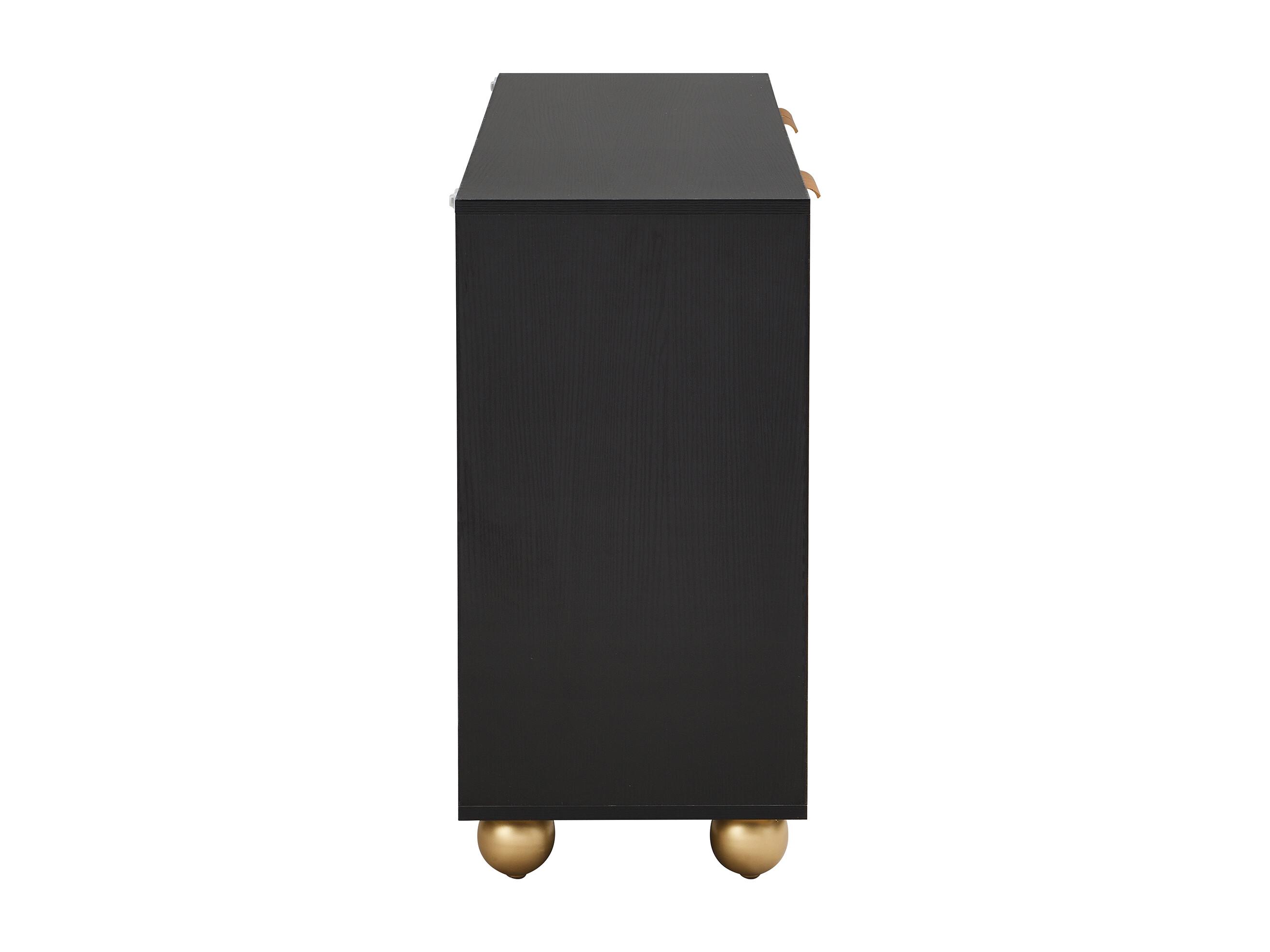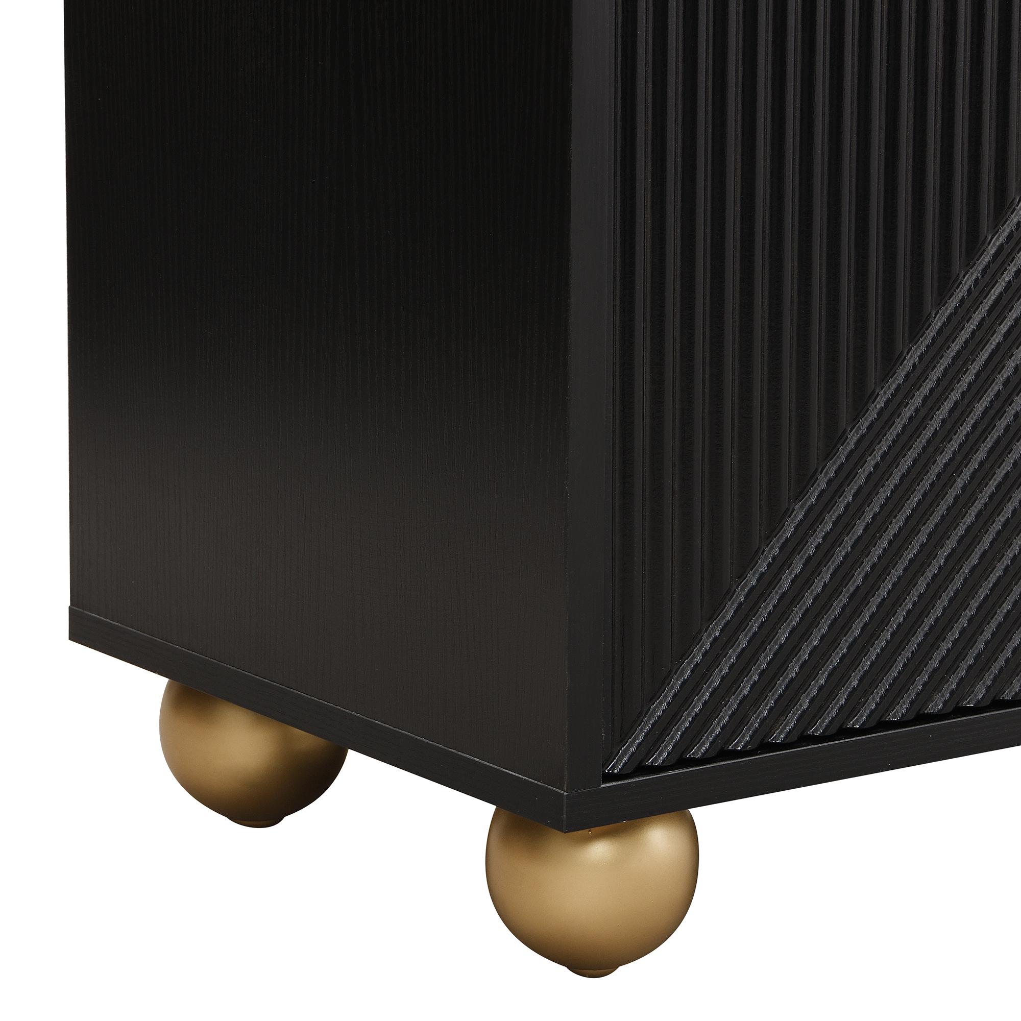 Buffet Moderne, Armoire de Salon avec 4 Portes Sculptées et Étagères Réglables, Noir