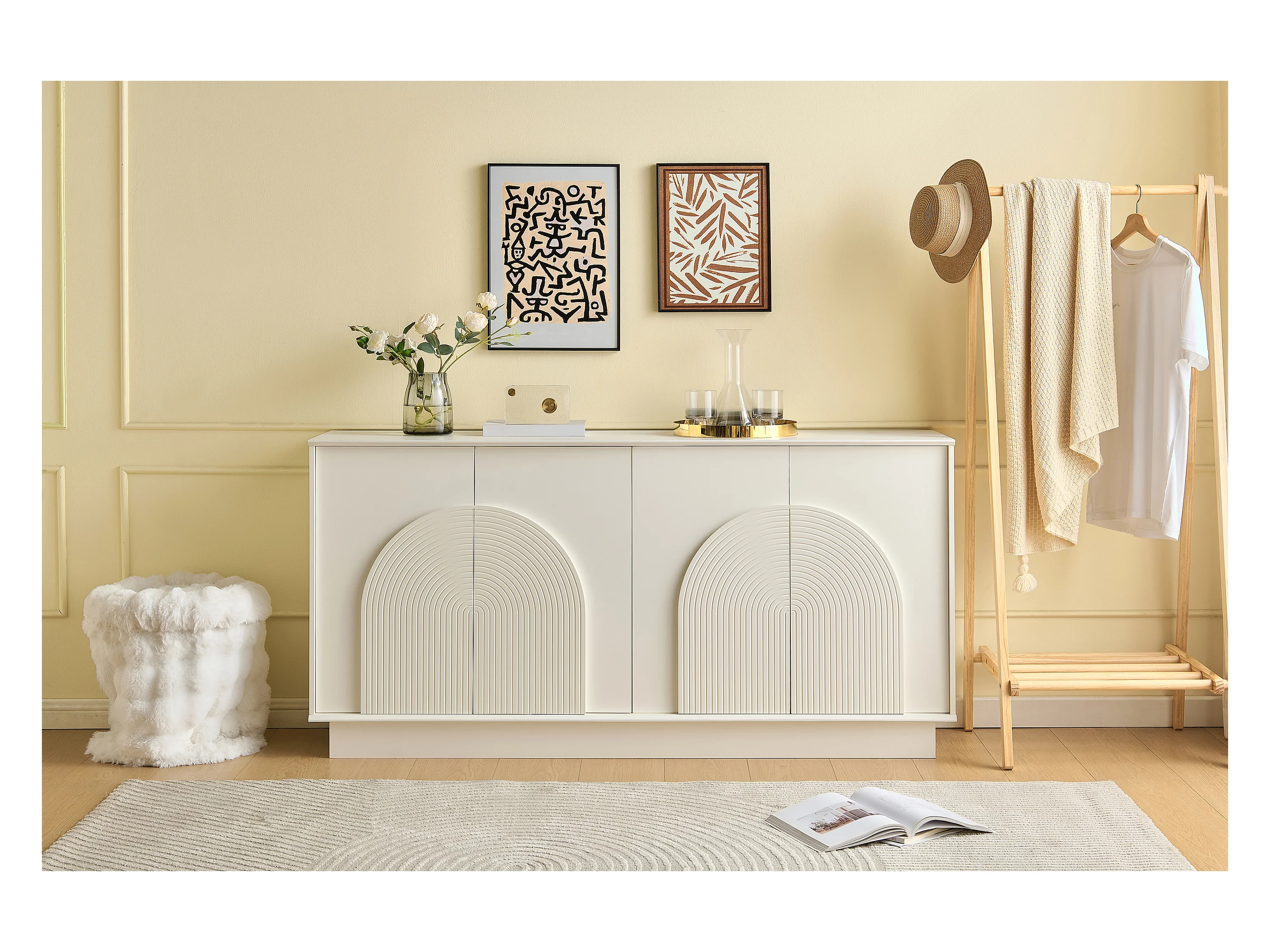 Buffet moderne avec 4 portes incurvées - pour salon et salle à manger - 160 x 38 x 80 cm - MDF - Blanc