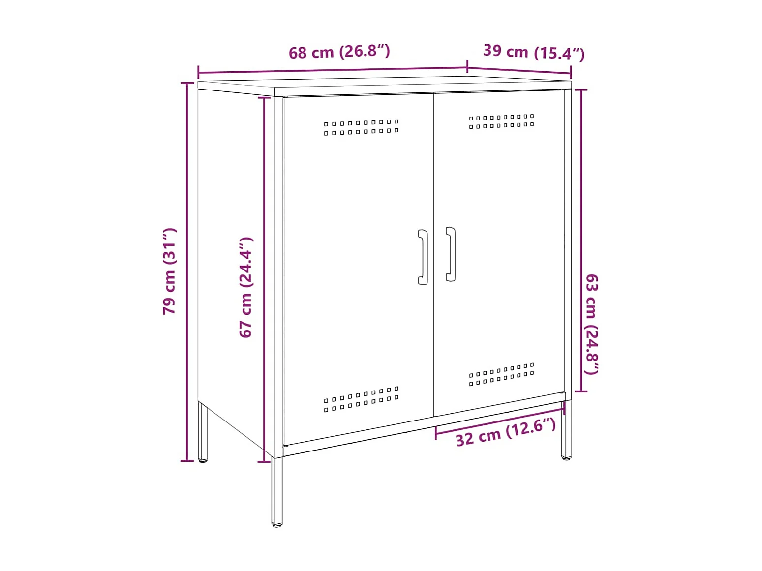 Buffet noir 68x39x79 cm acier