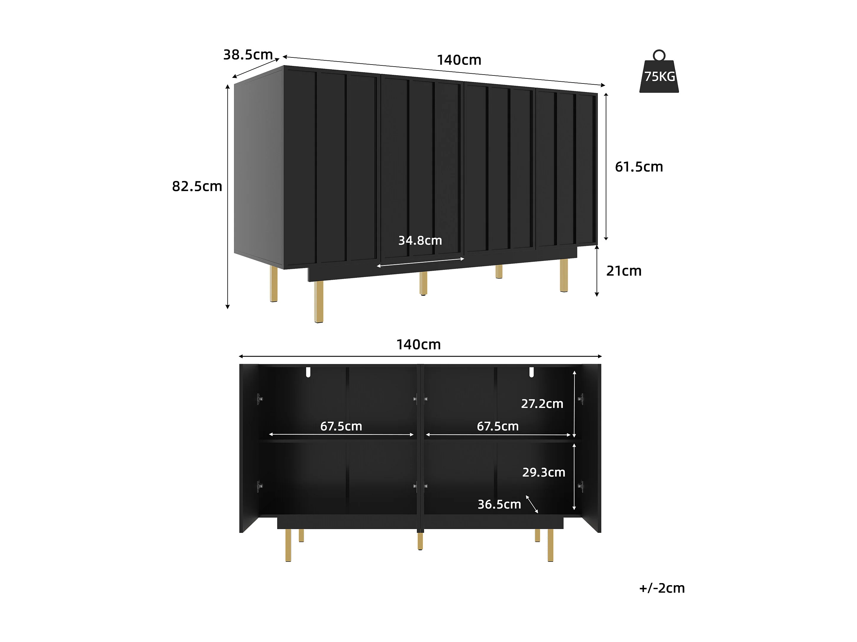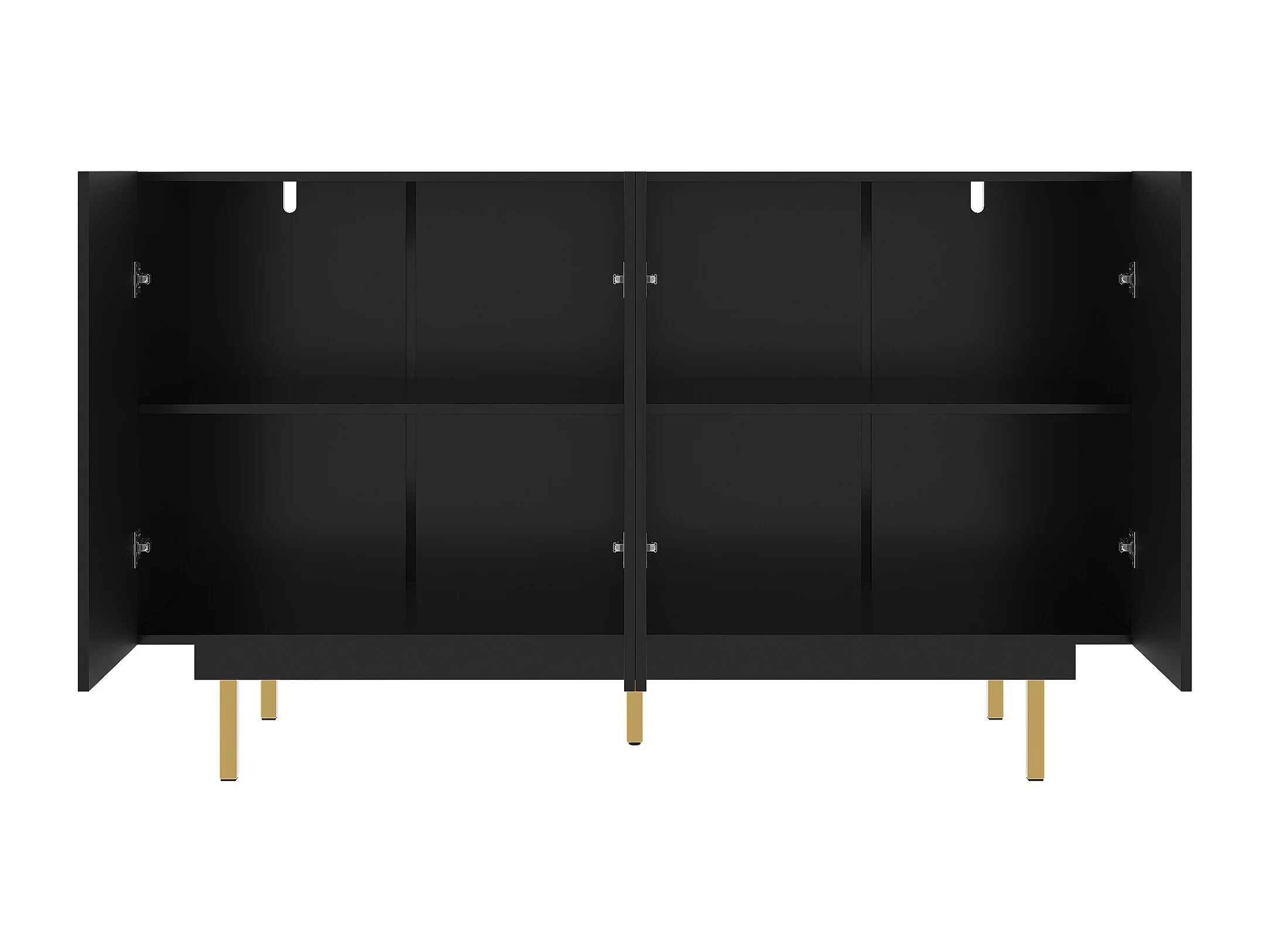 Buffet noir - Buffet à 4 portes et 5 pieds - compartiments réglables