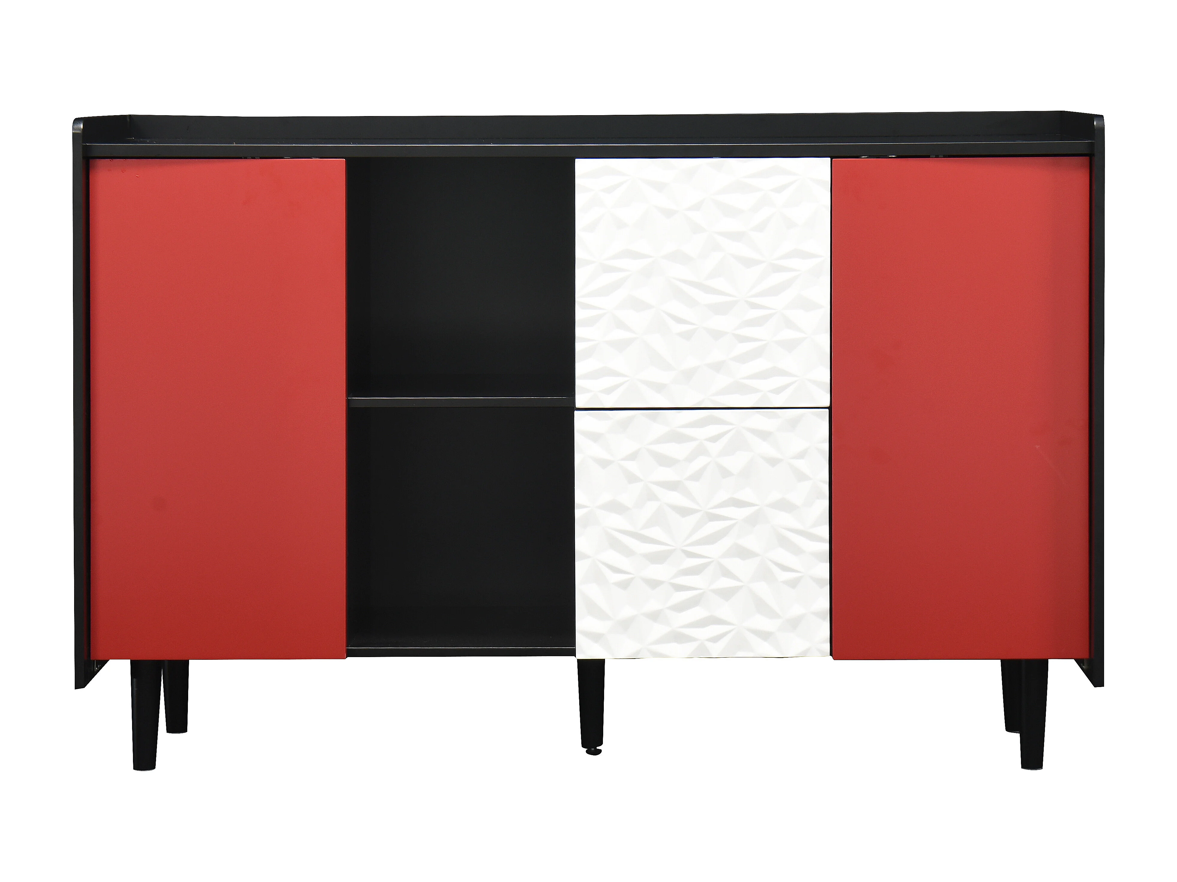 Buffet noir - Buffet avec 2 tiroirs et 2 porte - 2 rangements ouverts - pour salle à manger et salon