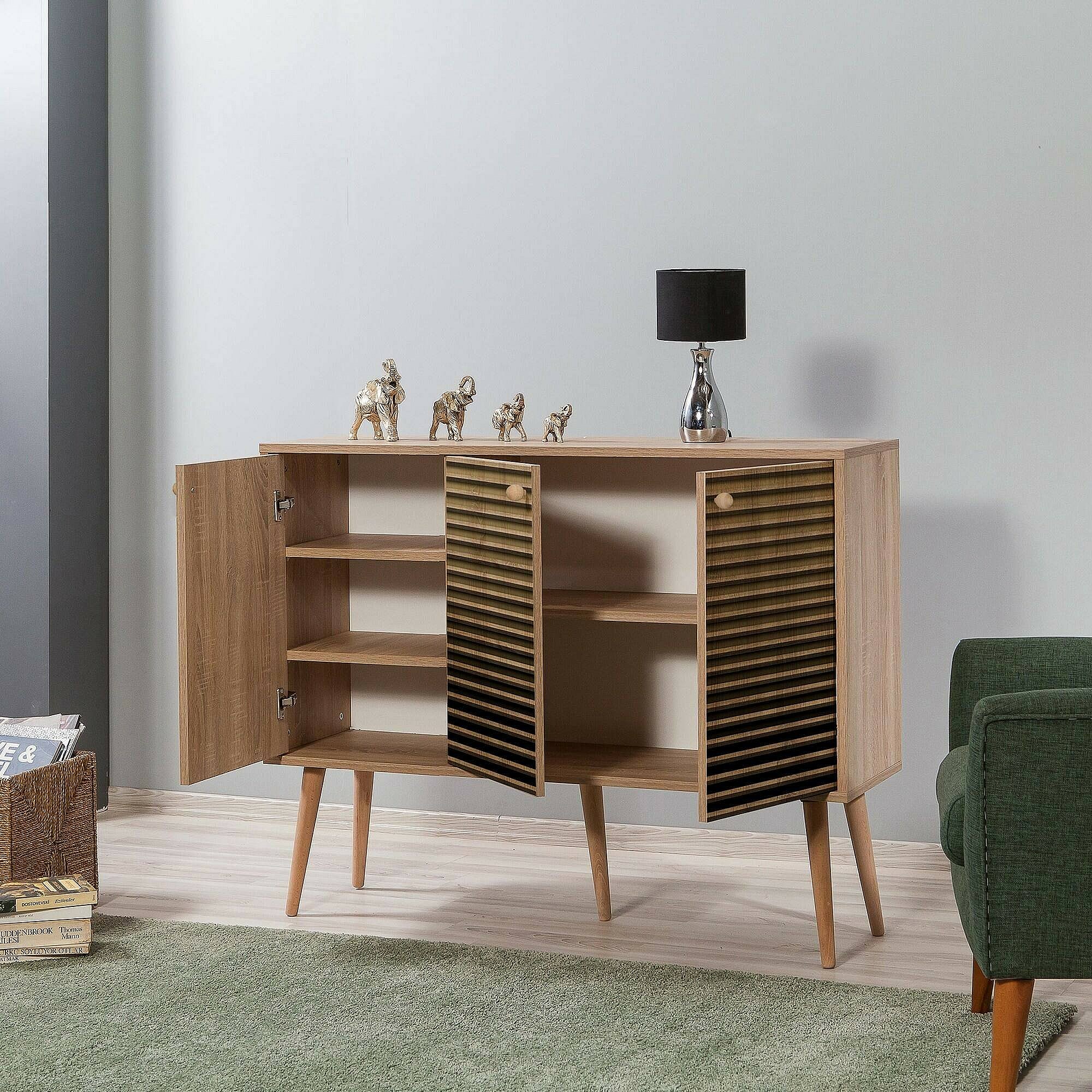 Buffet Nunki, Buffet du salon, Commode de salon, Garde-manger de cuisine, 120x36h90 cm, Chêne