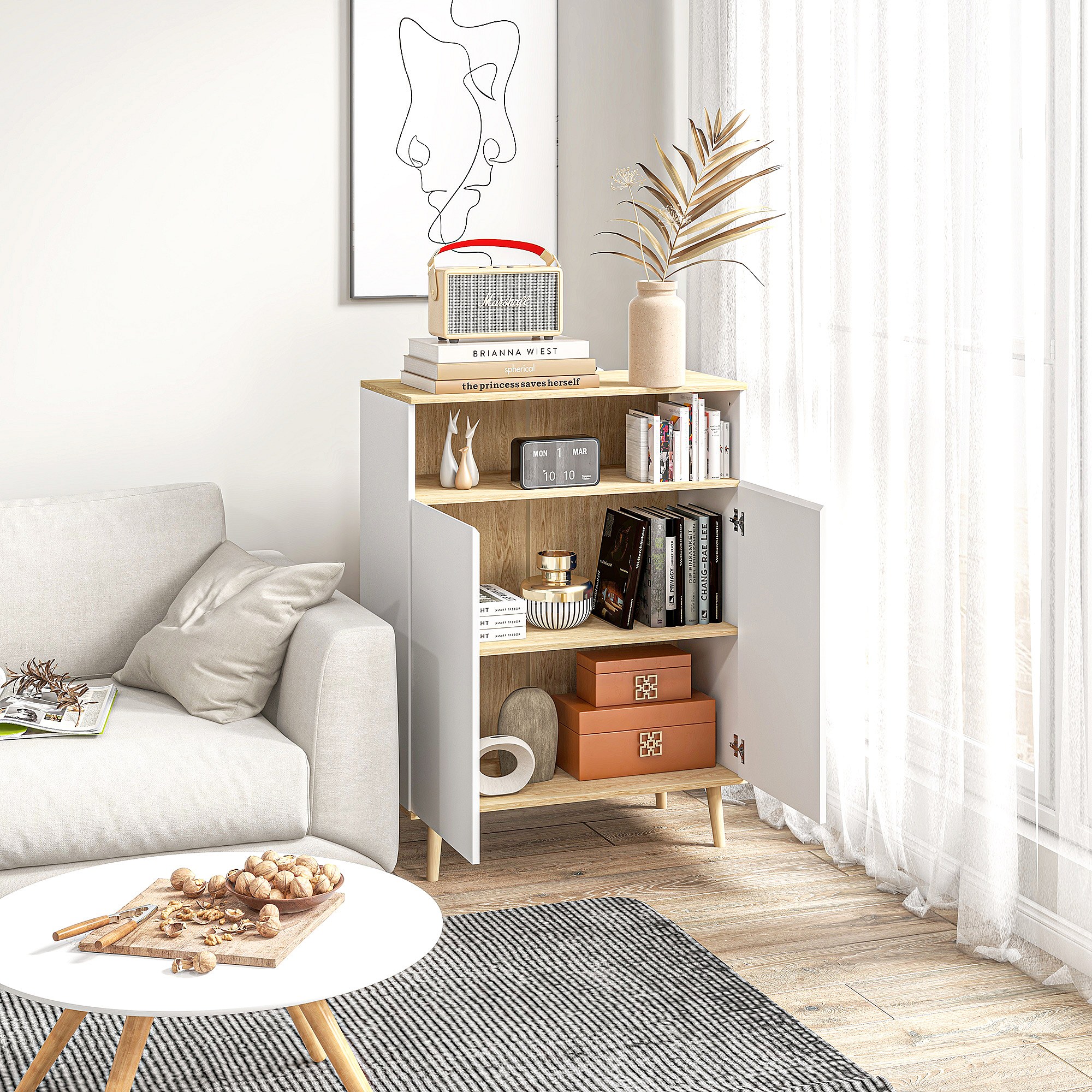 HOMCOM Meuble de rangement design scandinave 2 placards tiroir coulissant pieds bois massif pin panneaux particules blanc chêne clair