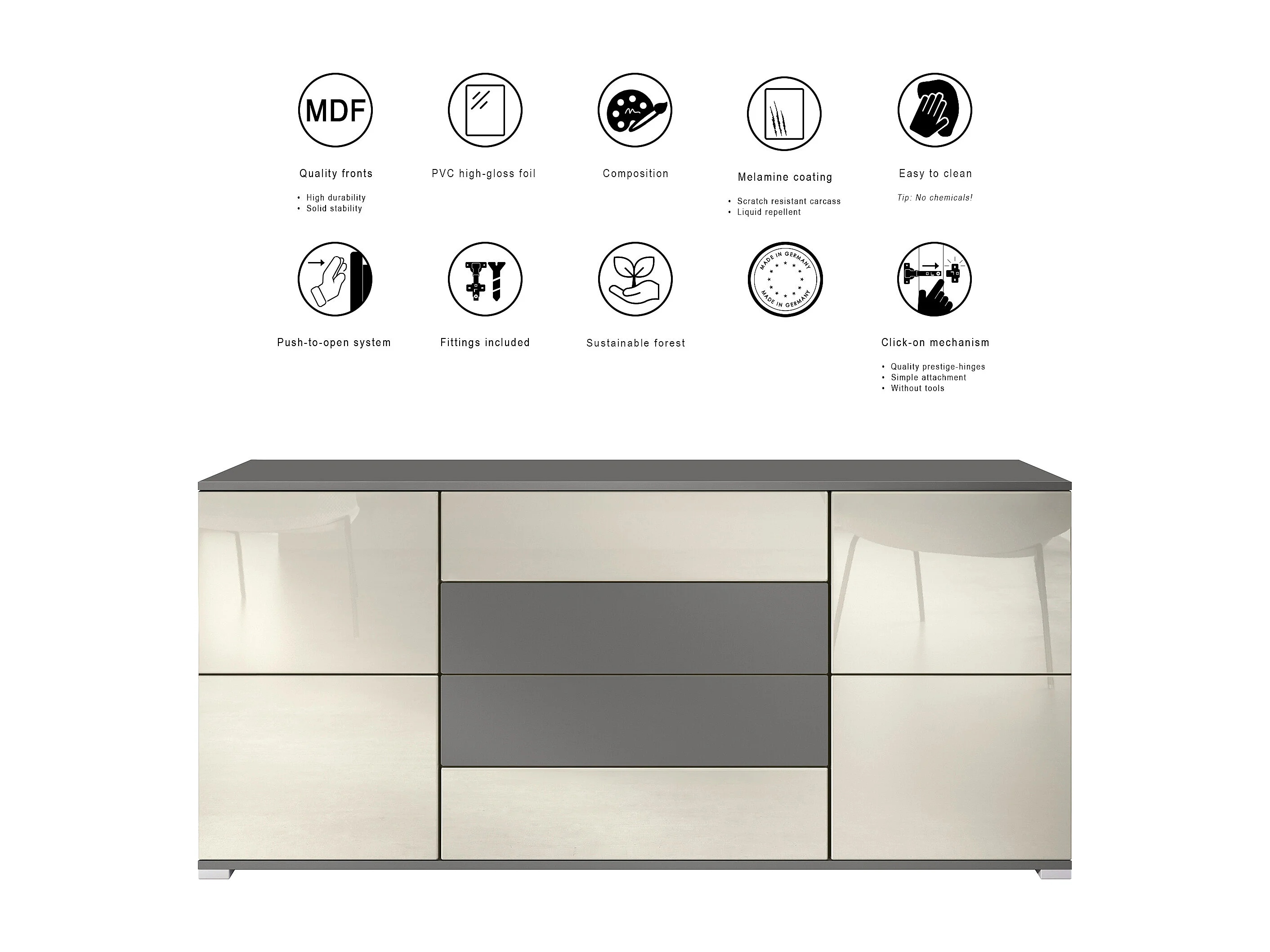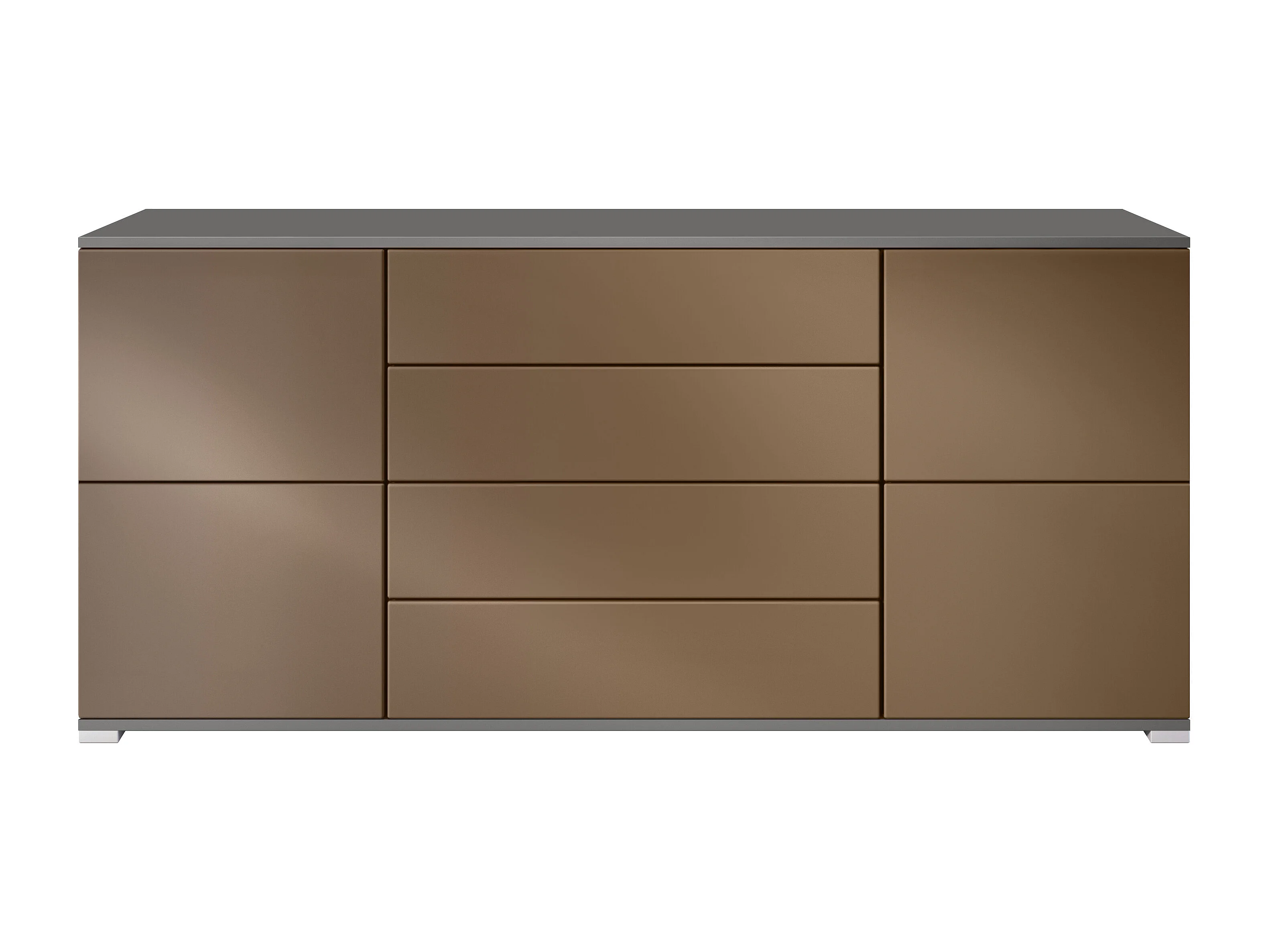 Buffet Rova V2 – Meuble avec 4 Portes et 4 Tiroirs, anthracite mat/aspect bronzé (166,5 x 75,5 x 35)