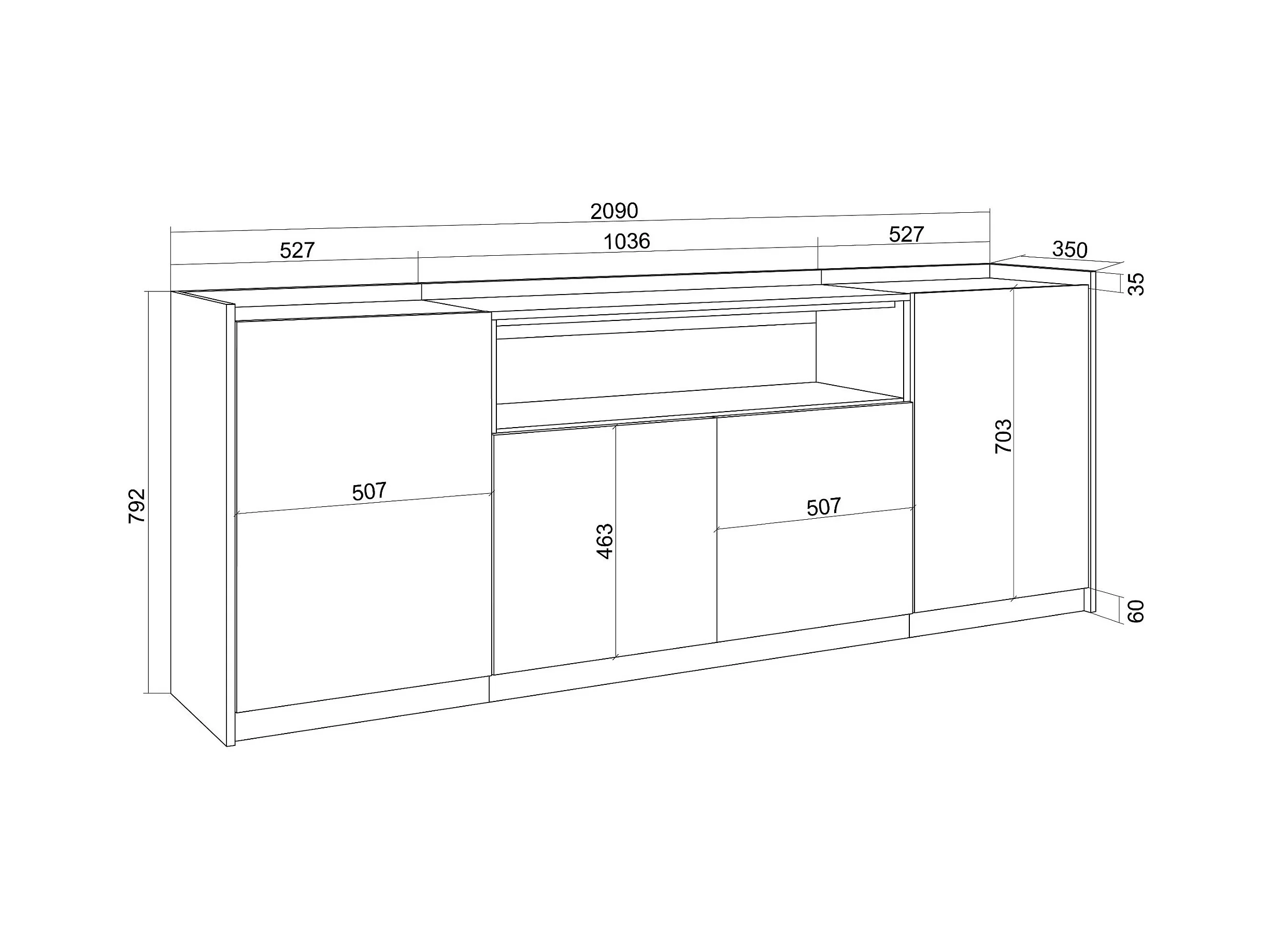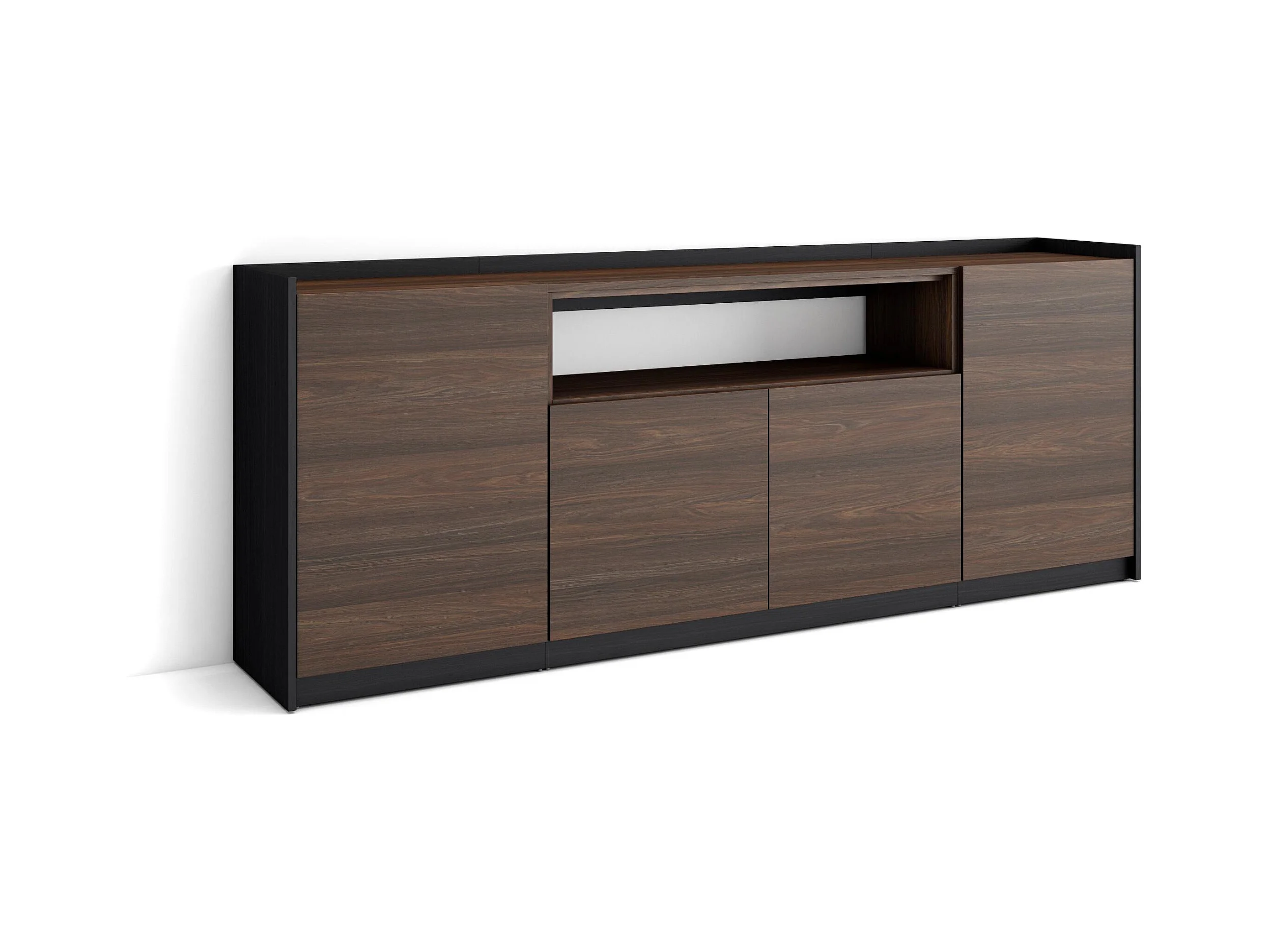 Buffet salon et cuisine, 207x80x37 cm, 4 Portes, Meuble chaussure, Chêne foncé et Noir