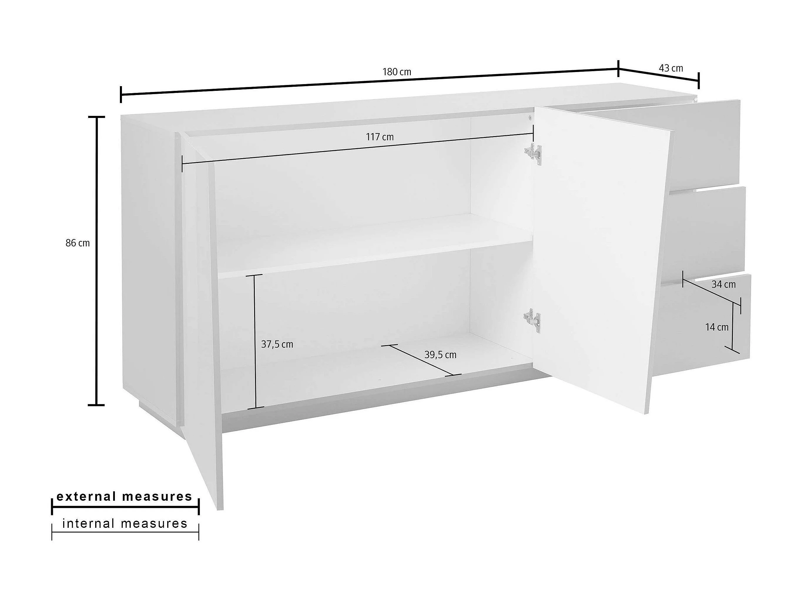 Buffet salon et salle à manger design moderne 2 portes 3 tiroirs Vega Living L Ardesia