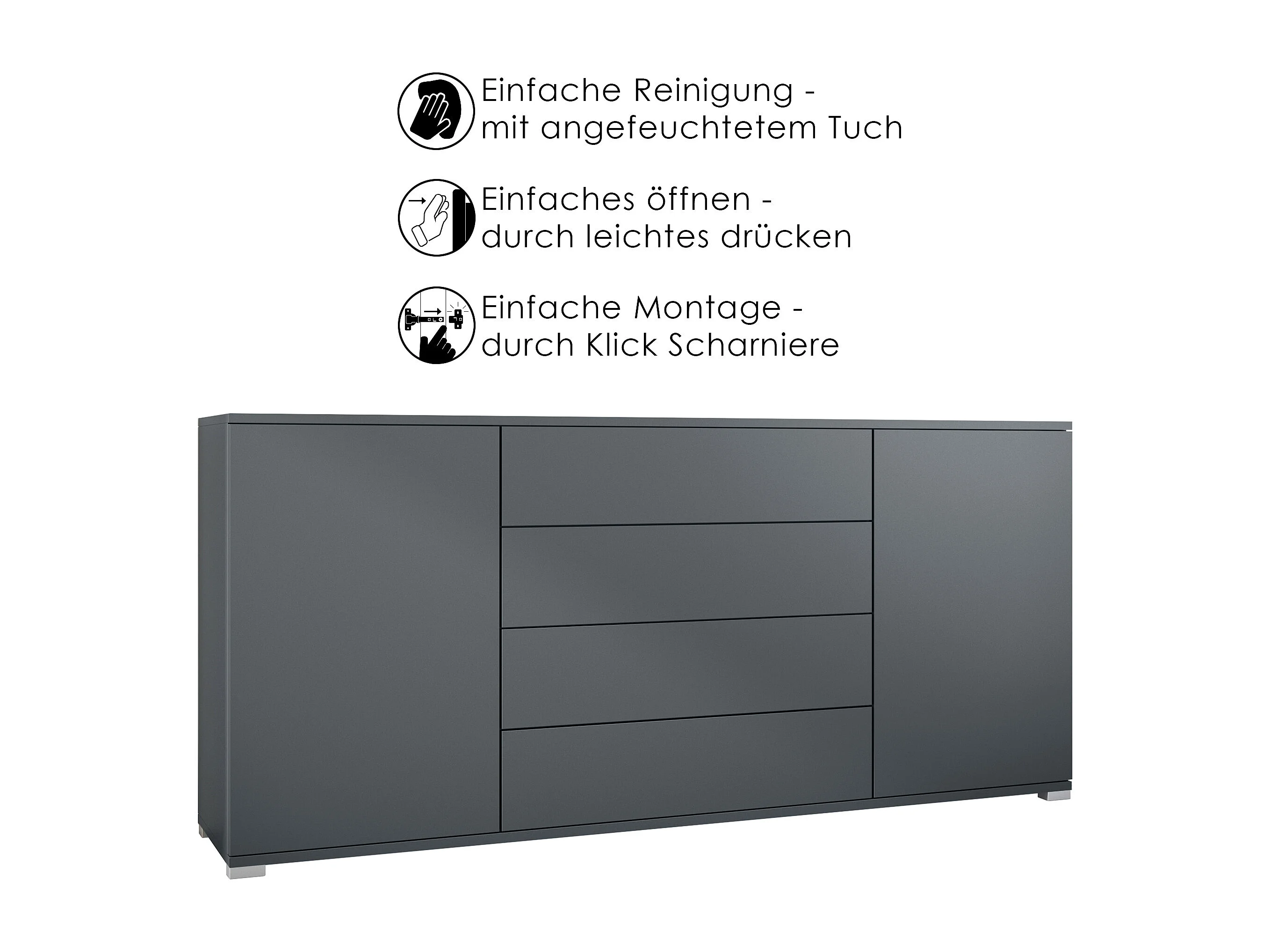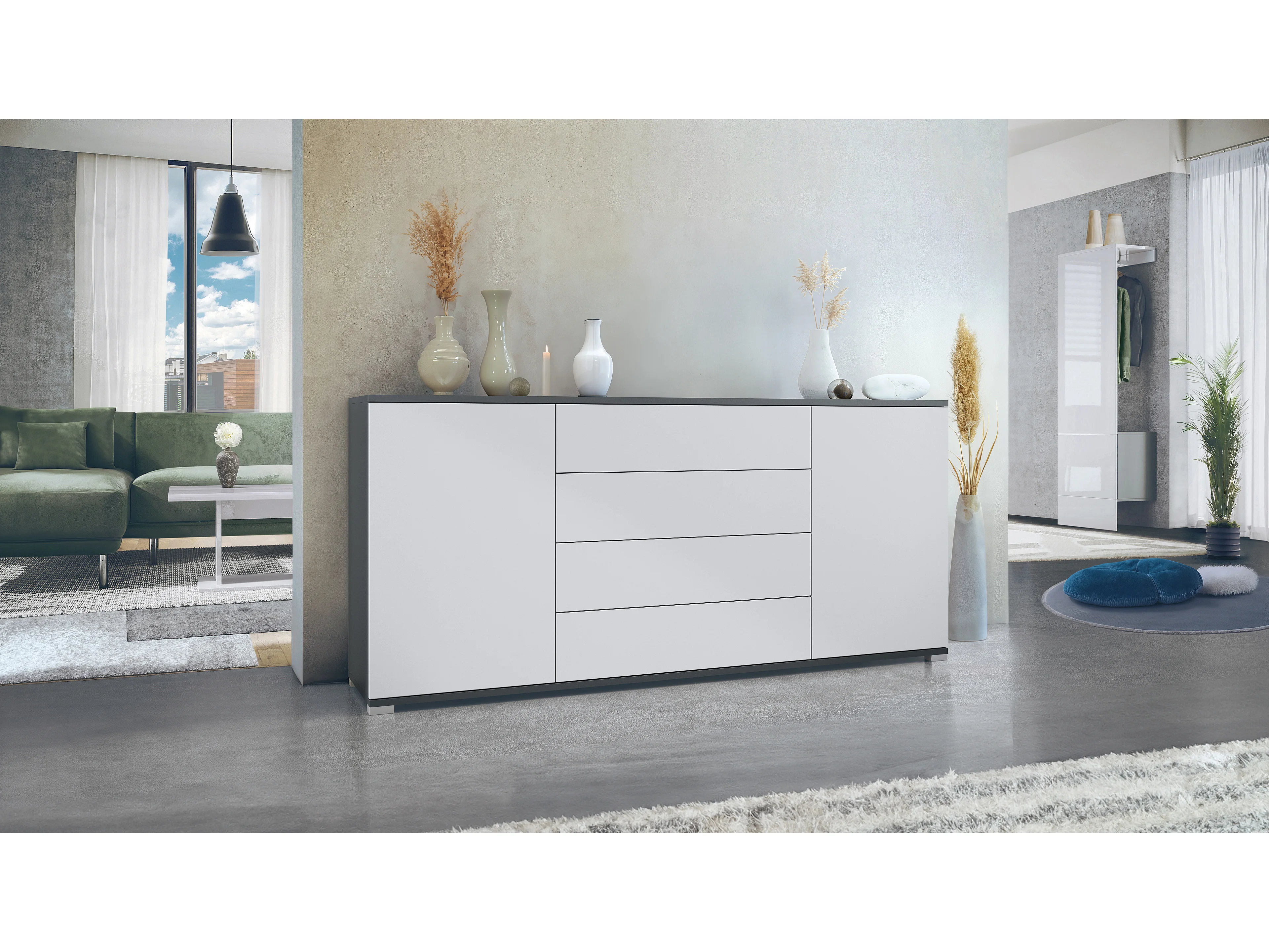 Buffet Santo V2, Enfilade avec 2 portes et 4 tiroirs, anthracite mat / blanc mat (166,5 x 75,5 x 35 cm)
