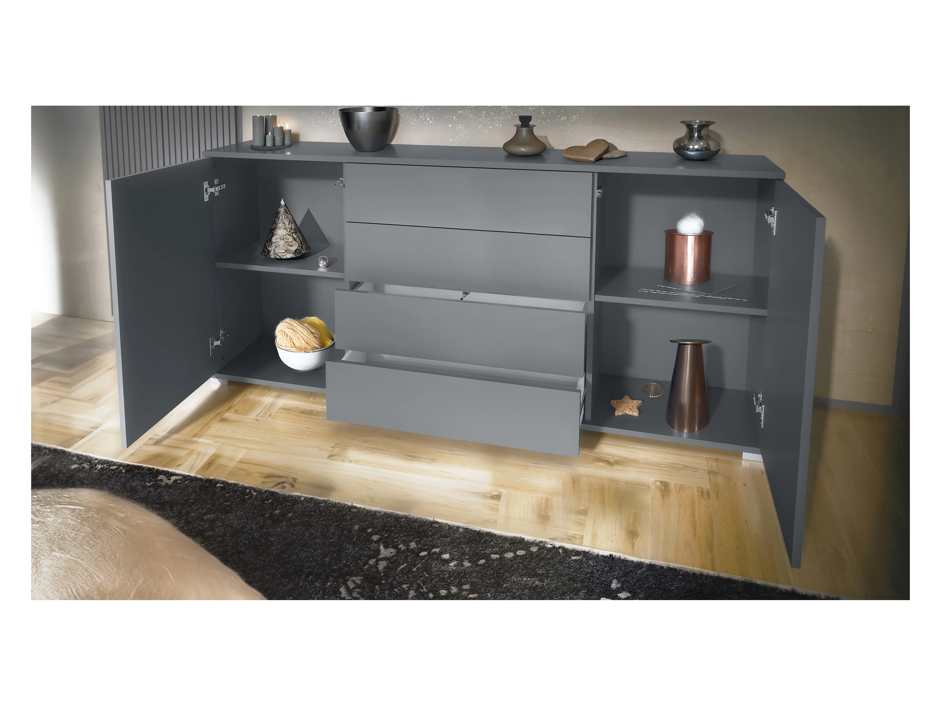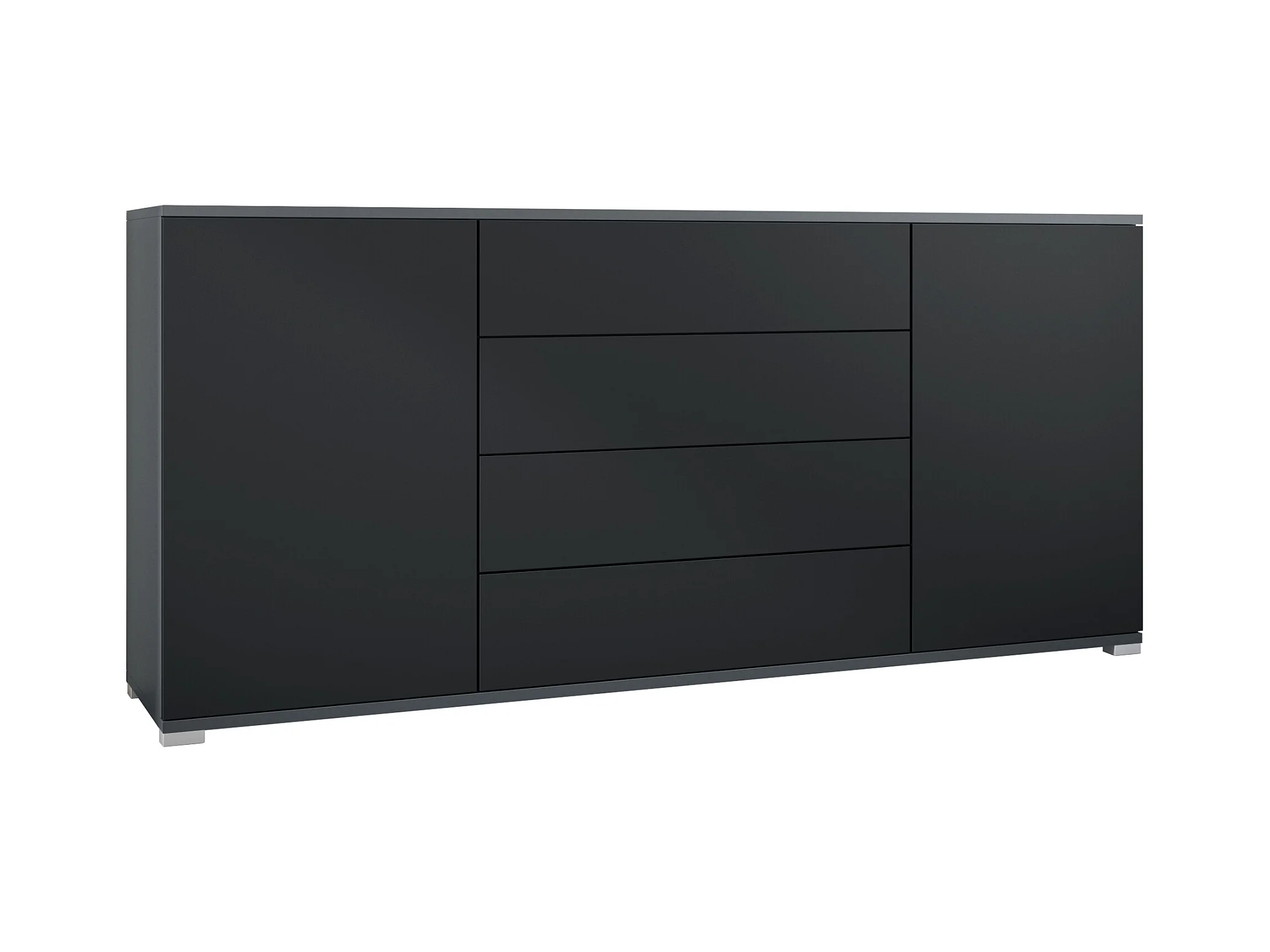 Buffet Santo V2, Enfilade avec 2 portes et 4 tiroirs, anthracite mat / noir mat (166,5 x 75,5 x 35 cm)