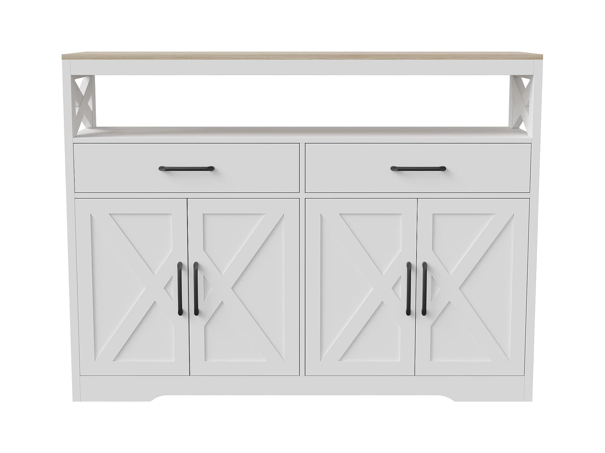 Buffet scandinave 2 tiroirs et 2 portes, 140 cm – Bois et blanc