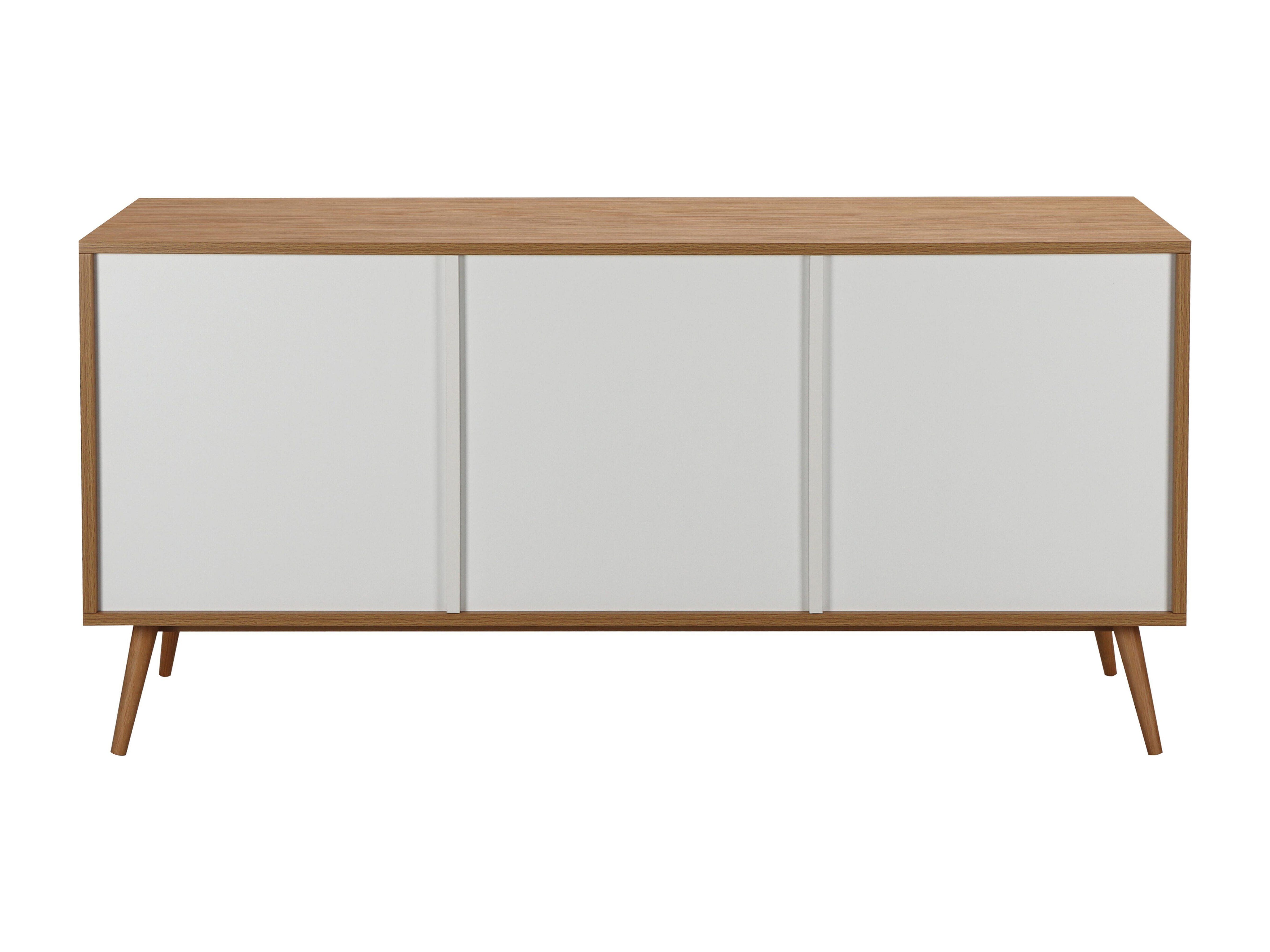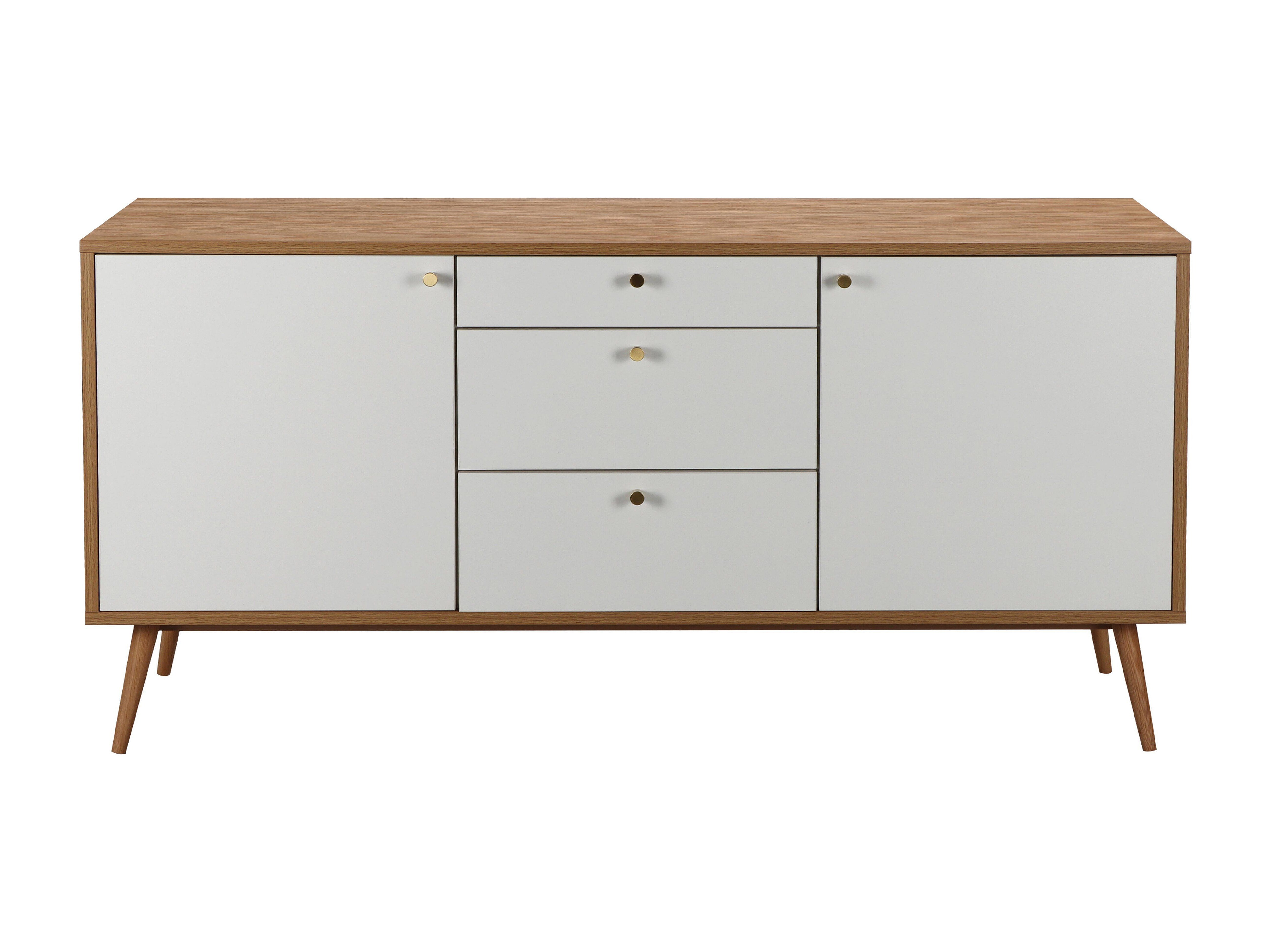 Buffet scandinave effet bois clair 2 portes 3 tiroirs 150 cm blanc