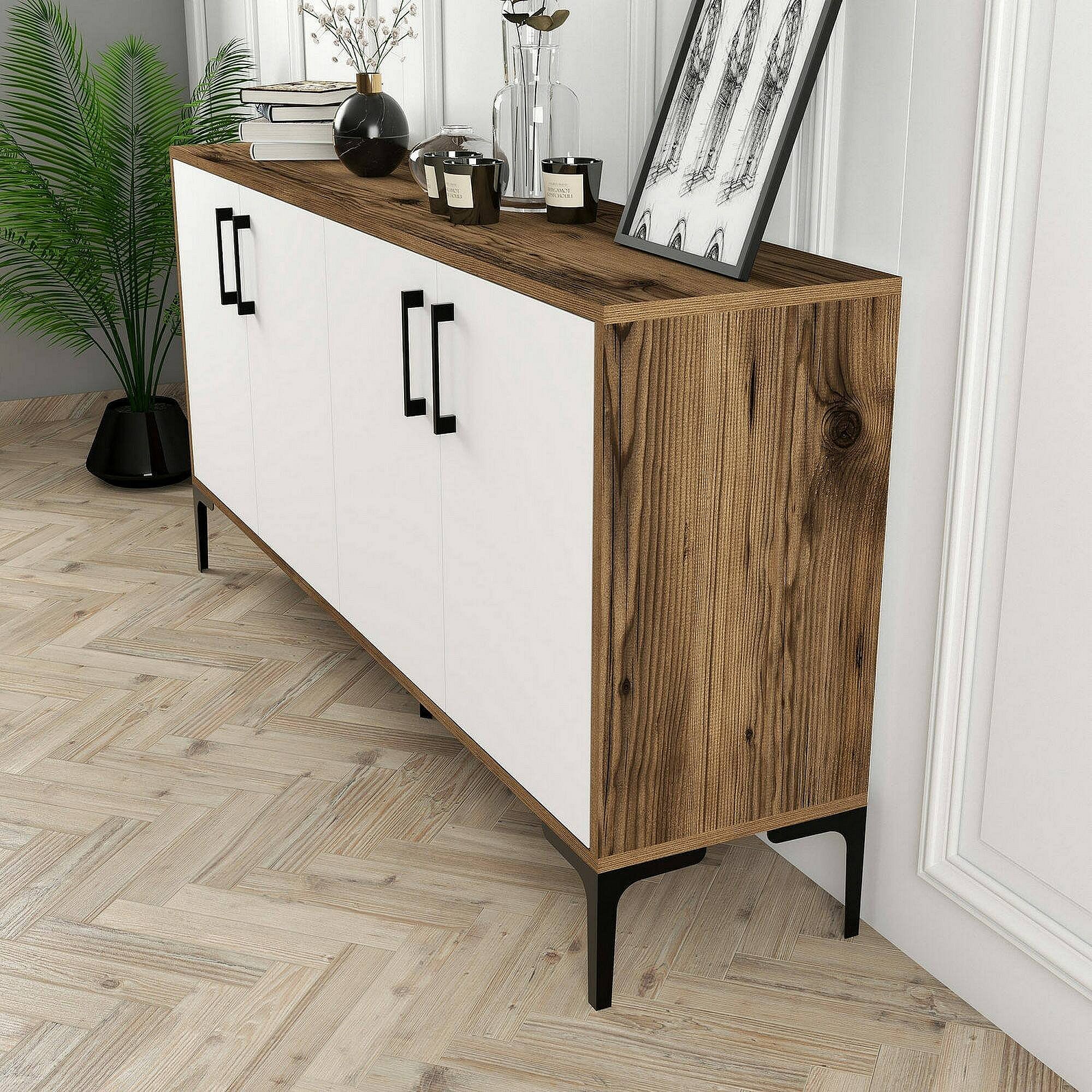 Buffet Sestante, Buffet du salon, Commode de salon, Garde-manger de cuisine, 160x35h78 cm, Noyer et Blanc