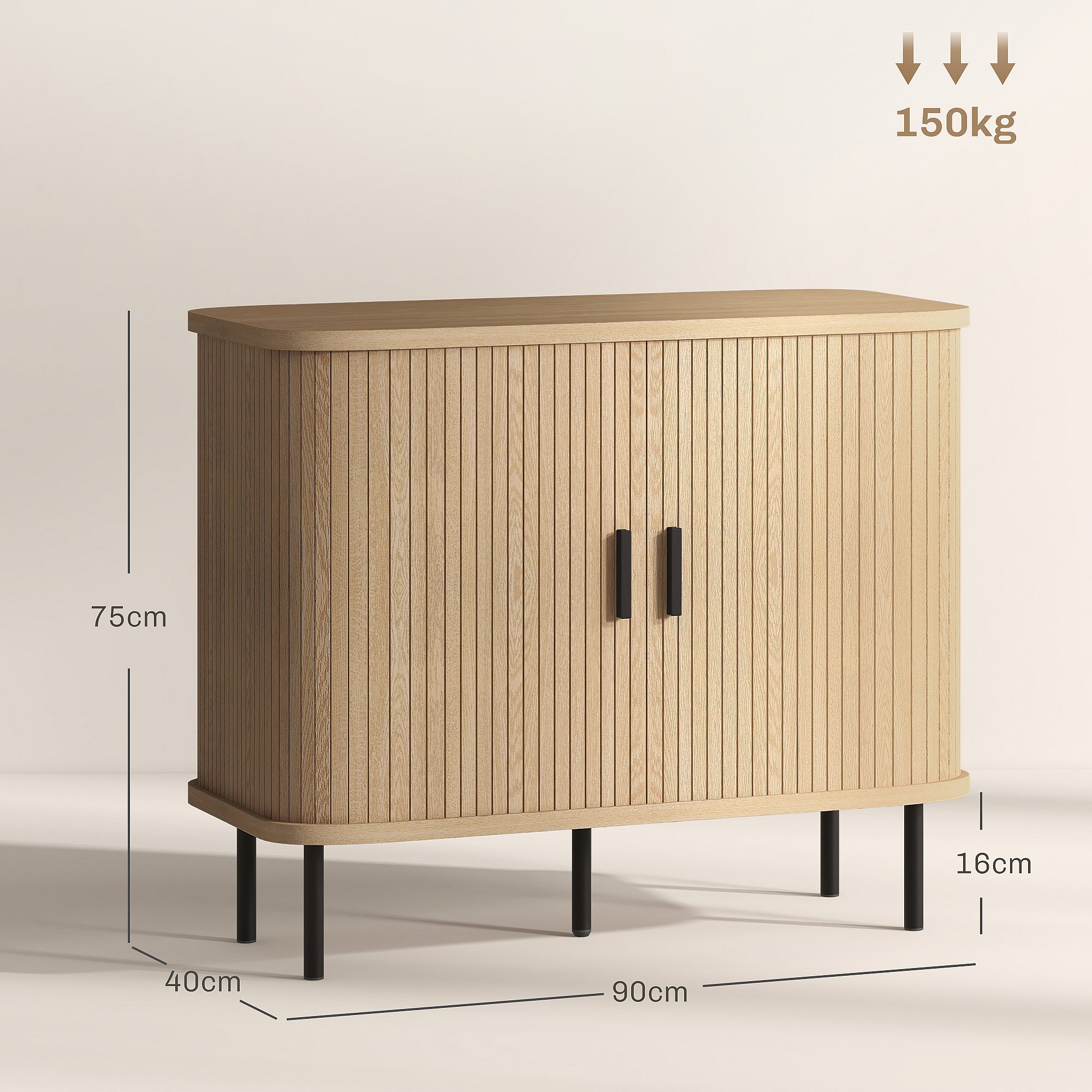 Buffet style scandinave 2 portes coulissantes 4 compartiments acier noir aspect bois clair