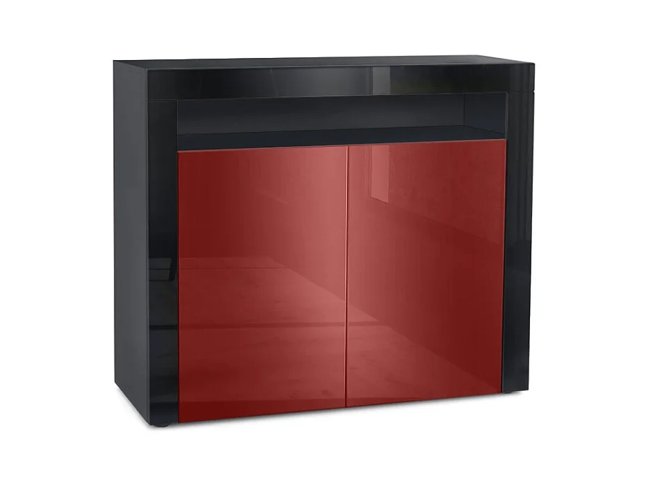 Buffet Valencia, Commode avec 2 portes et 1 compartiment ouvert, Noir mat/bordeaux haute brillance/noir haute brillance (108 x 92 x 40 cm)