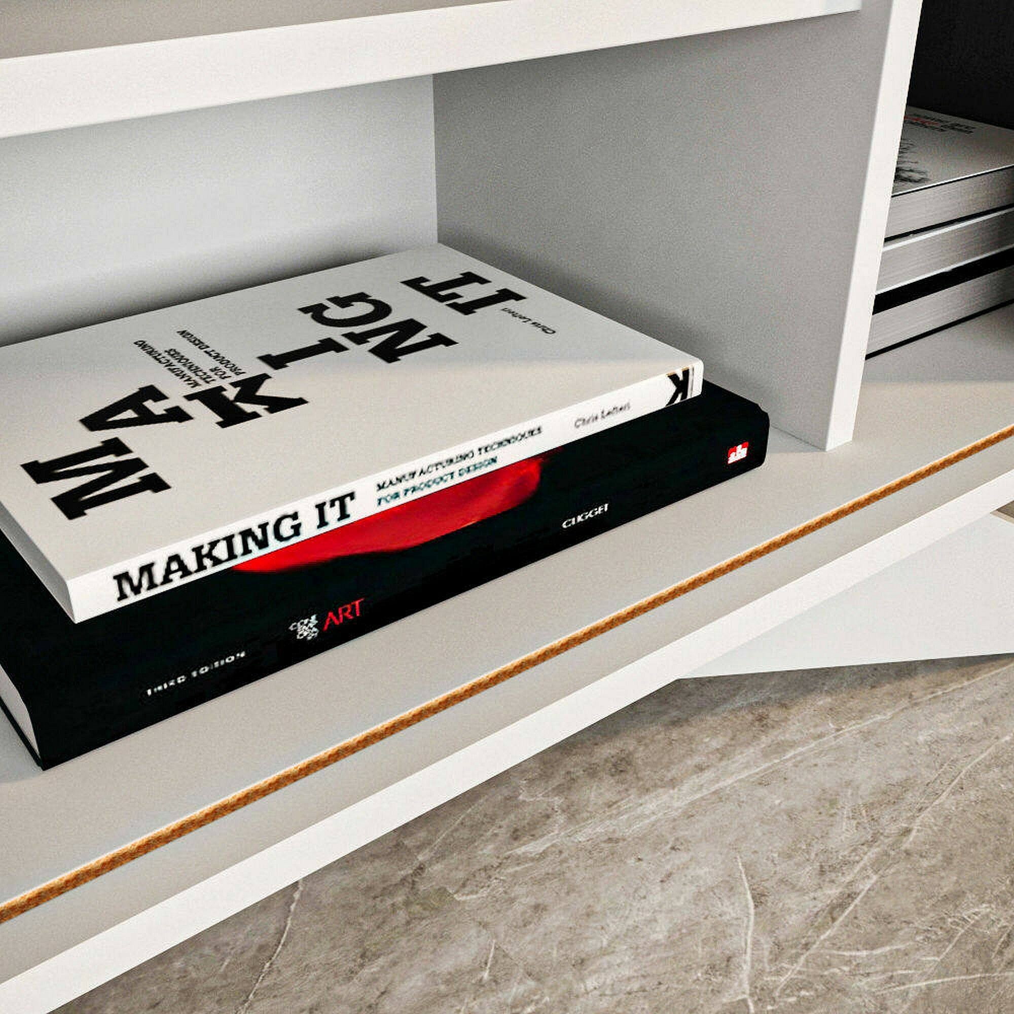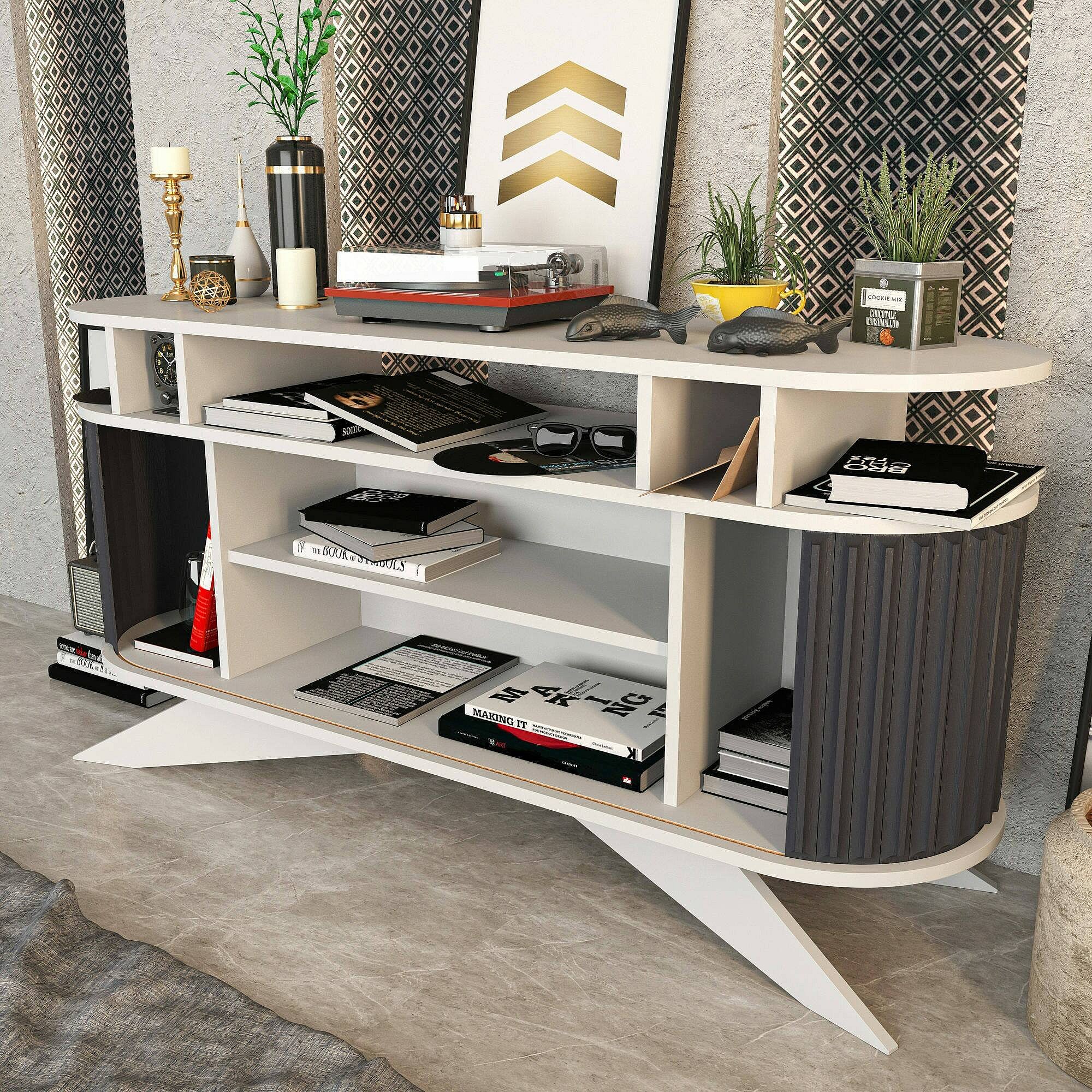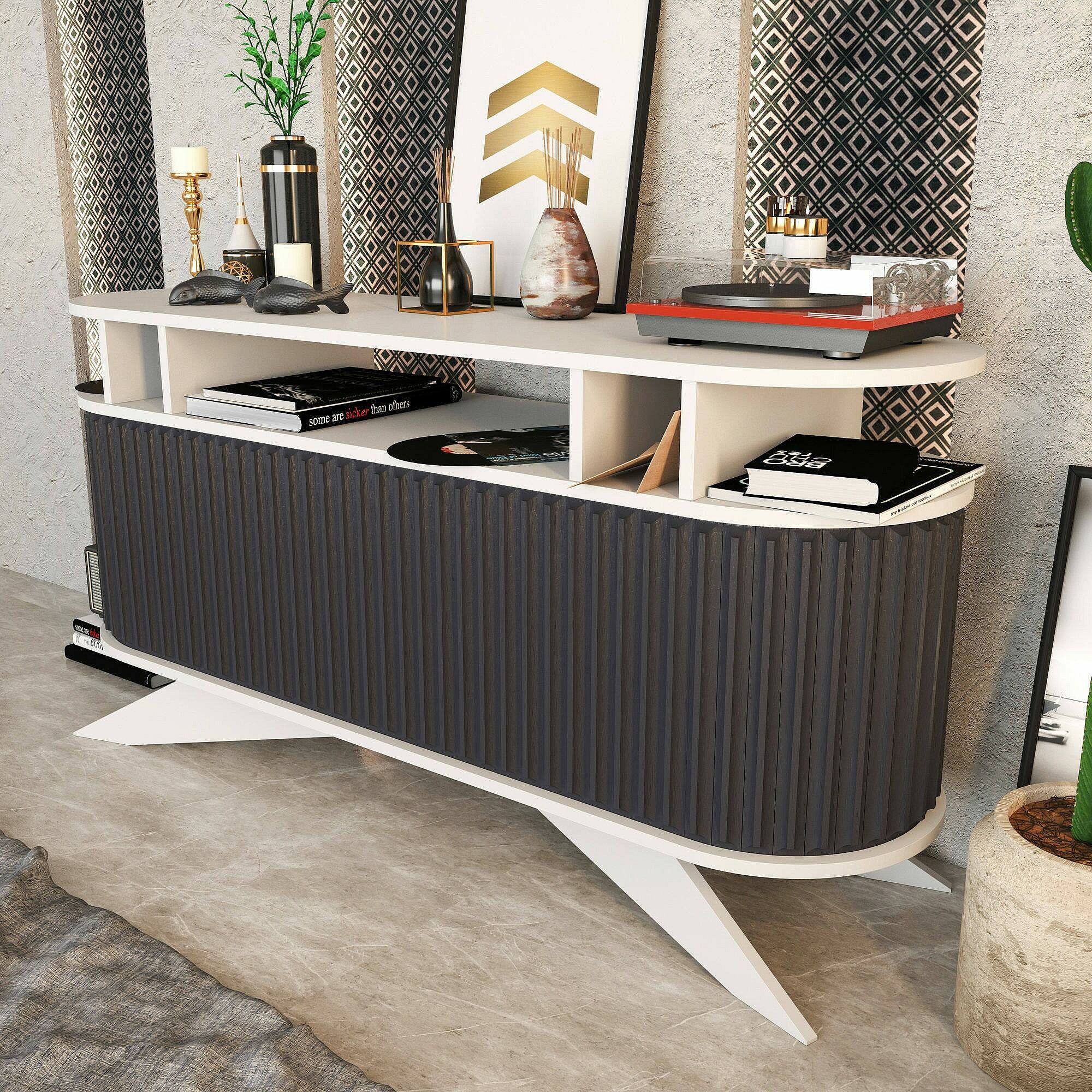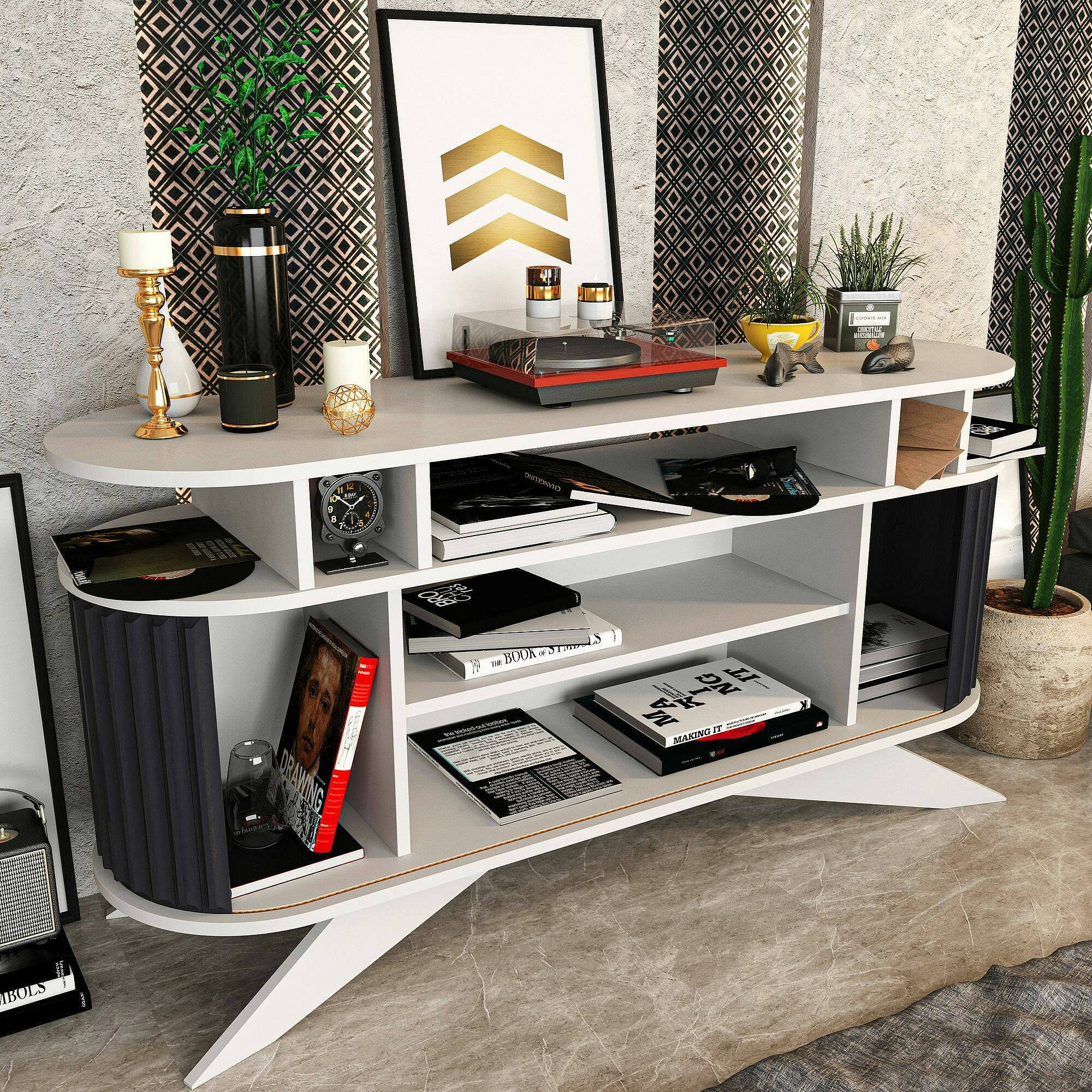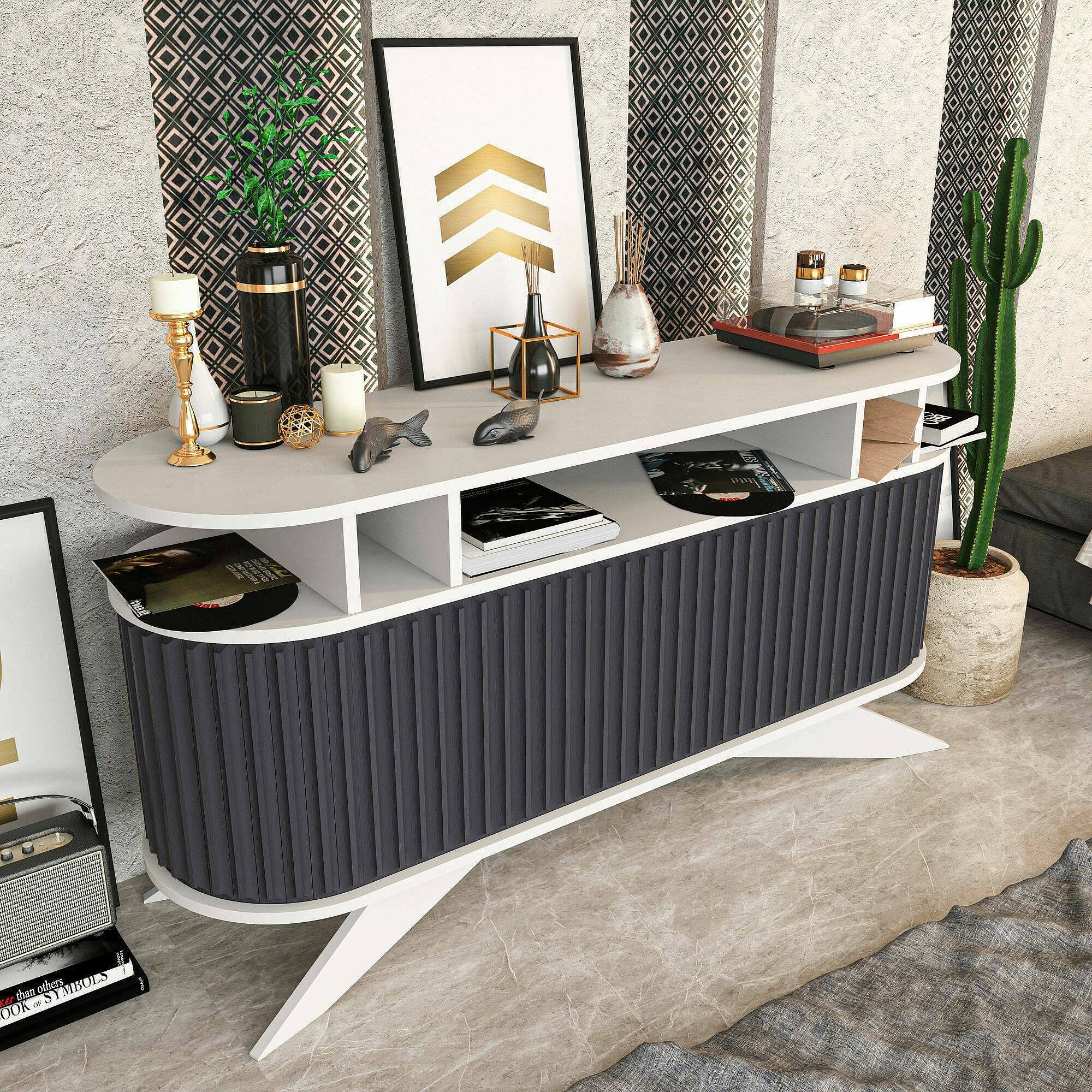 Buffet Zaurak, Buffet du salon, Commode de salon, Garde-manger de cuisine, 150x43h75 cm, Blanc et anthracite