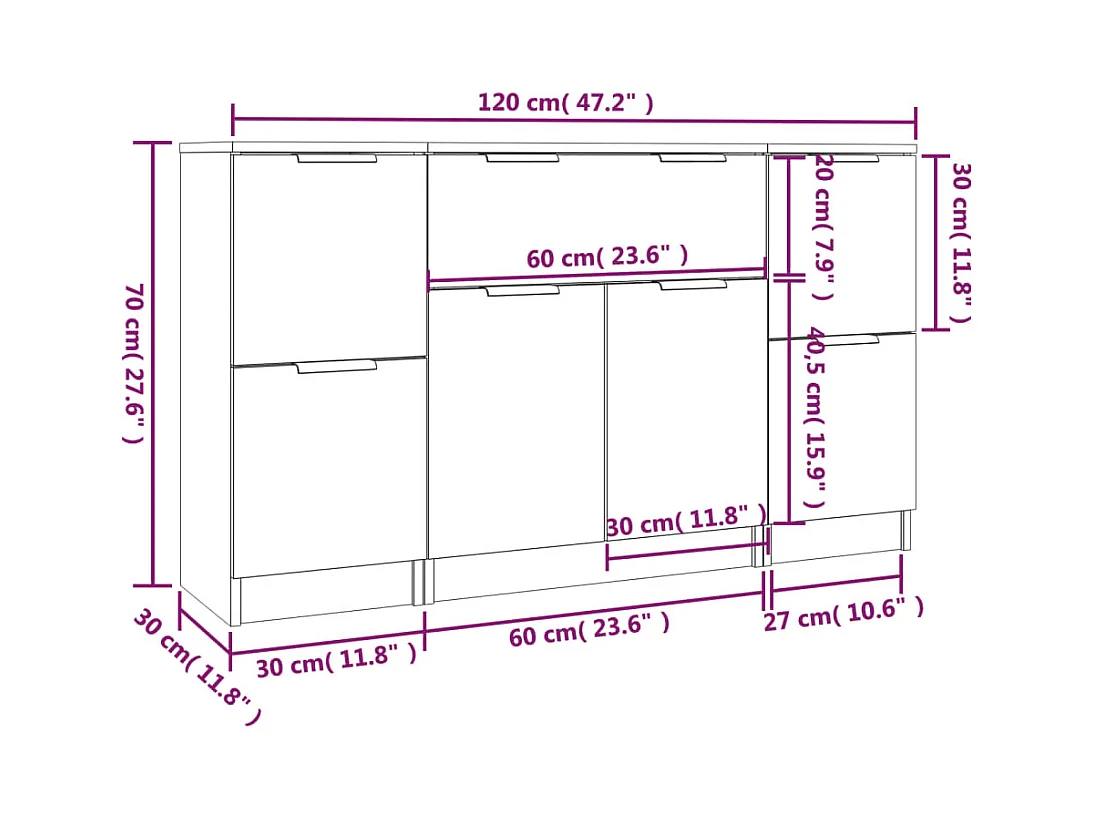 Buffets 3 pcs Chêne fumé Bois d'ingénierie