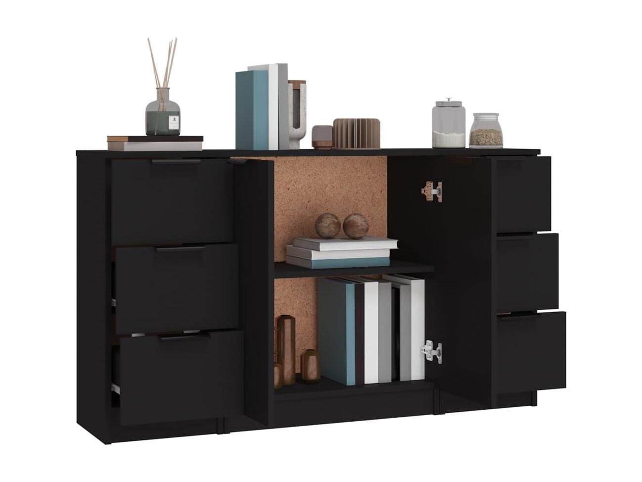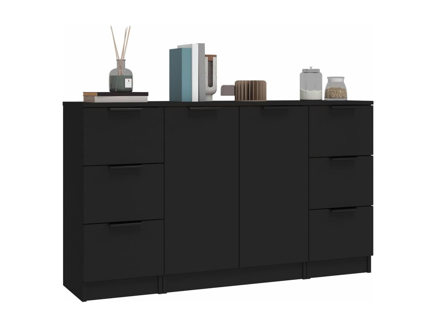 Buffets 3 pcs noir bois d'ingénierie