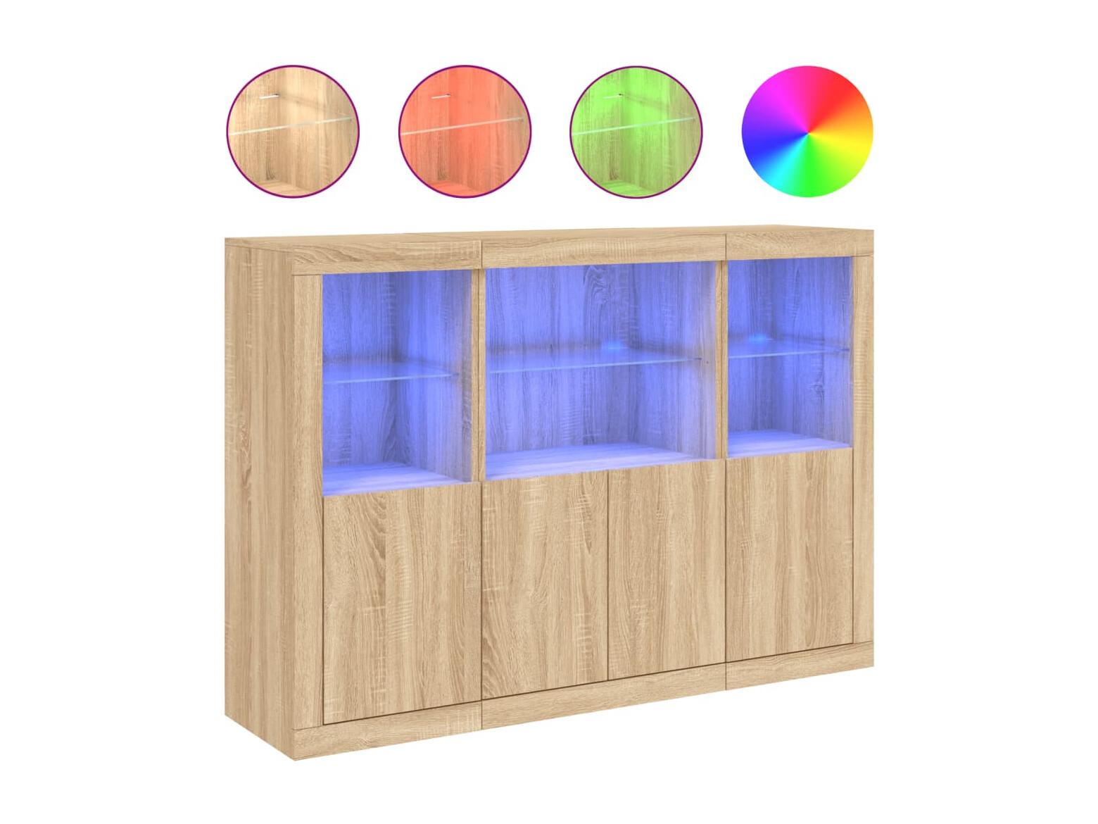 Buffets avec lumières LED 3 pcs chêne sonoma bois d'ingénierie