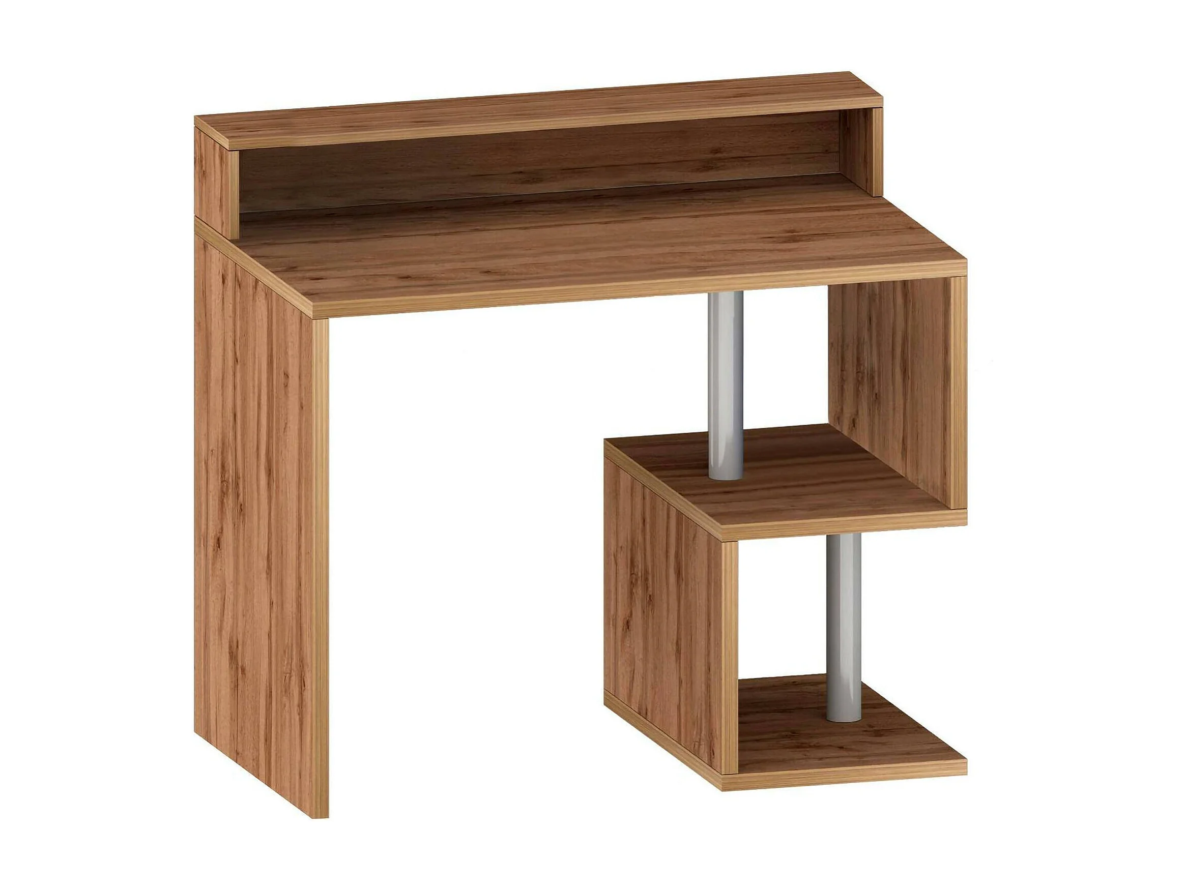 Bureau Adrien, Bureau linéaire avec étagères de rangement avec lampes LED, Bureau polyvalent avec plateau, 100x50h93 cm, Chêne