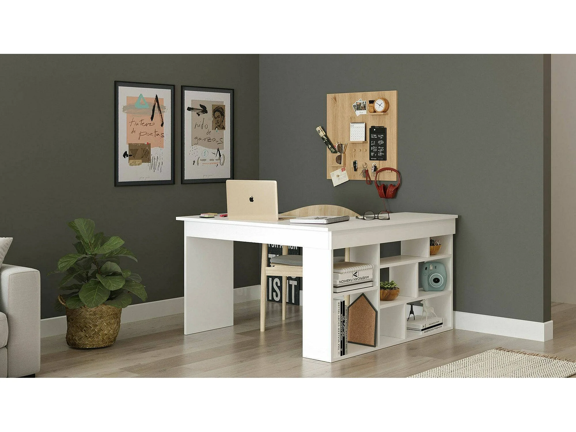 Bureau Angete, Pupitre polyvalent, Table de bureau pour PC, Plan de travail, 129x120h72 cm, Blanc