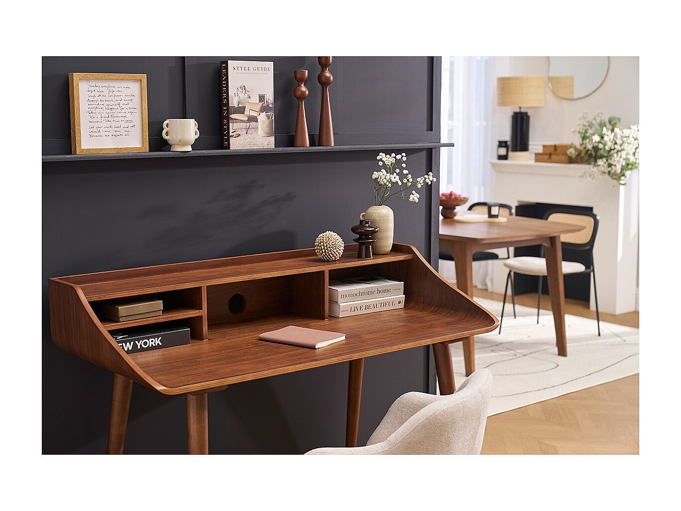 Bureau avec rangements vintage bois foncé L120 cm NORDECO