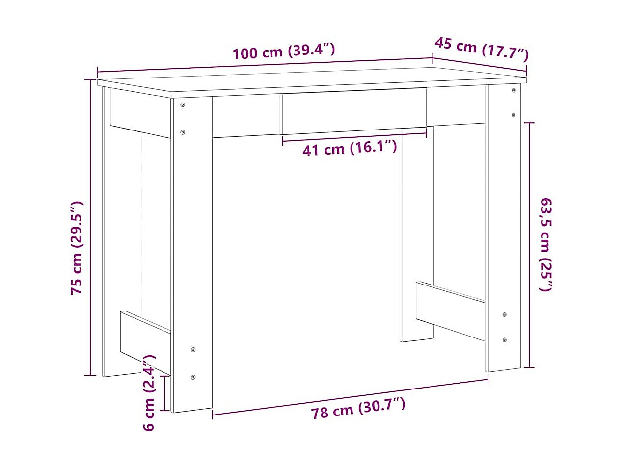 Bureau blanc 100x45x75 cm bois d'ingénierie