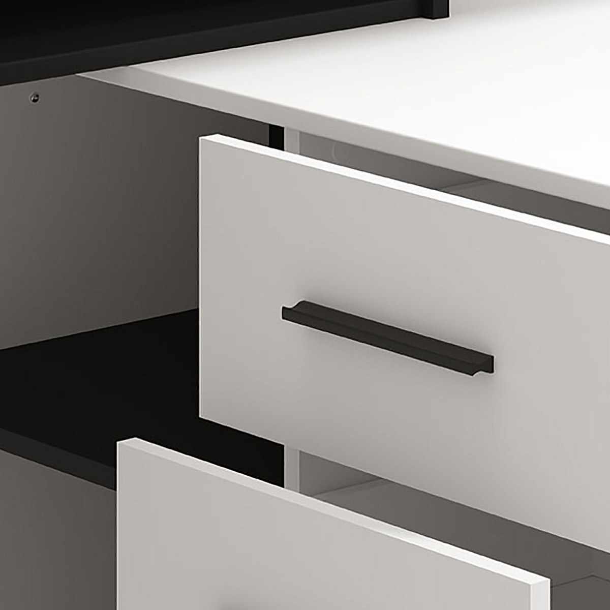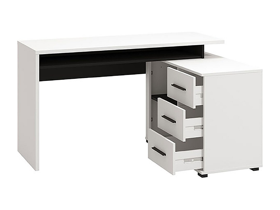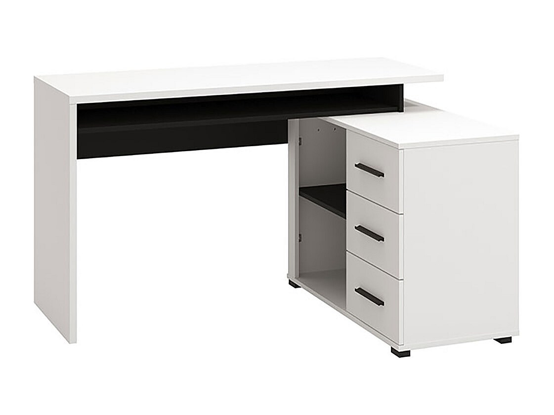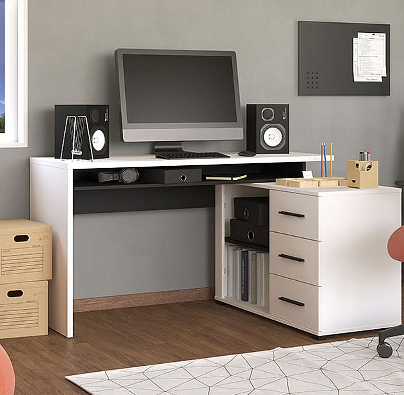 Bureau d'angle avec rangement couleur blanc / noir - Longueur 137,5 x profondeur 101,5 x hauteur 75cm