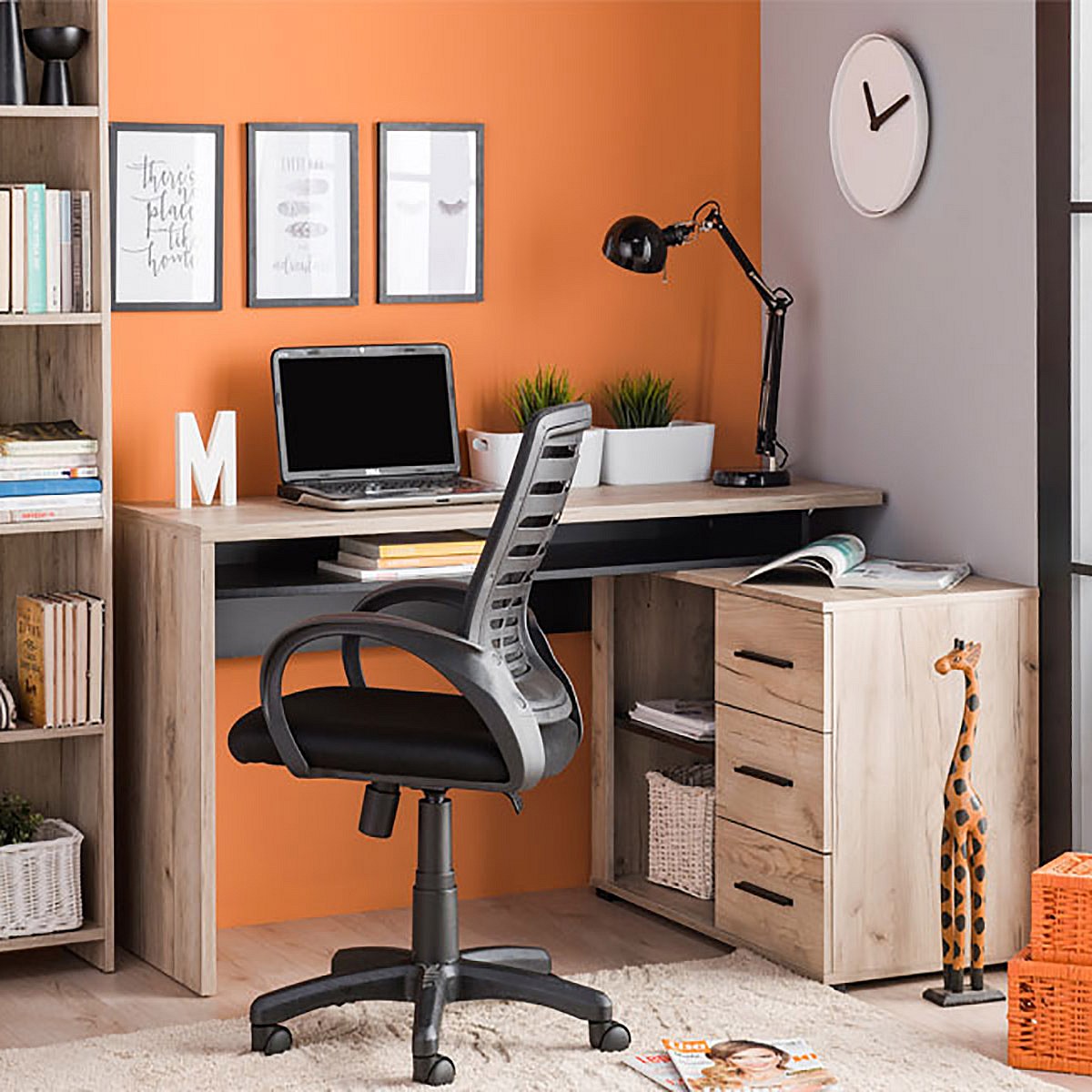 Bureau d'angle avec rangement couleur chêne gris / noir - Longueur 137,5 x profondeur 101,5 x hauteur 75cm