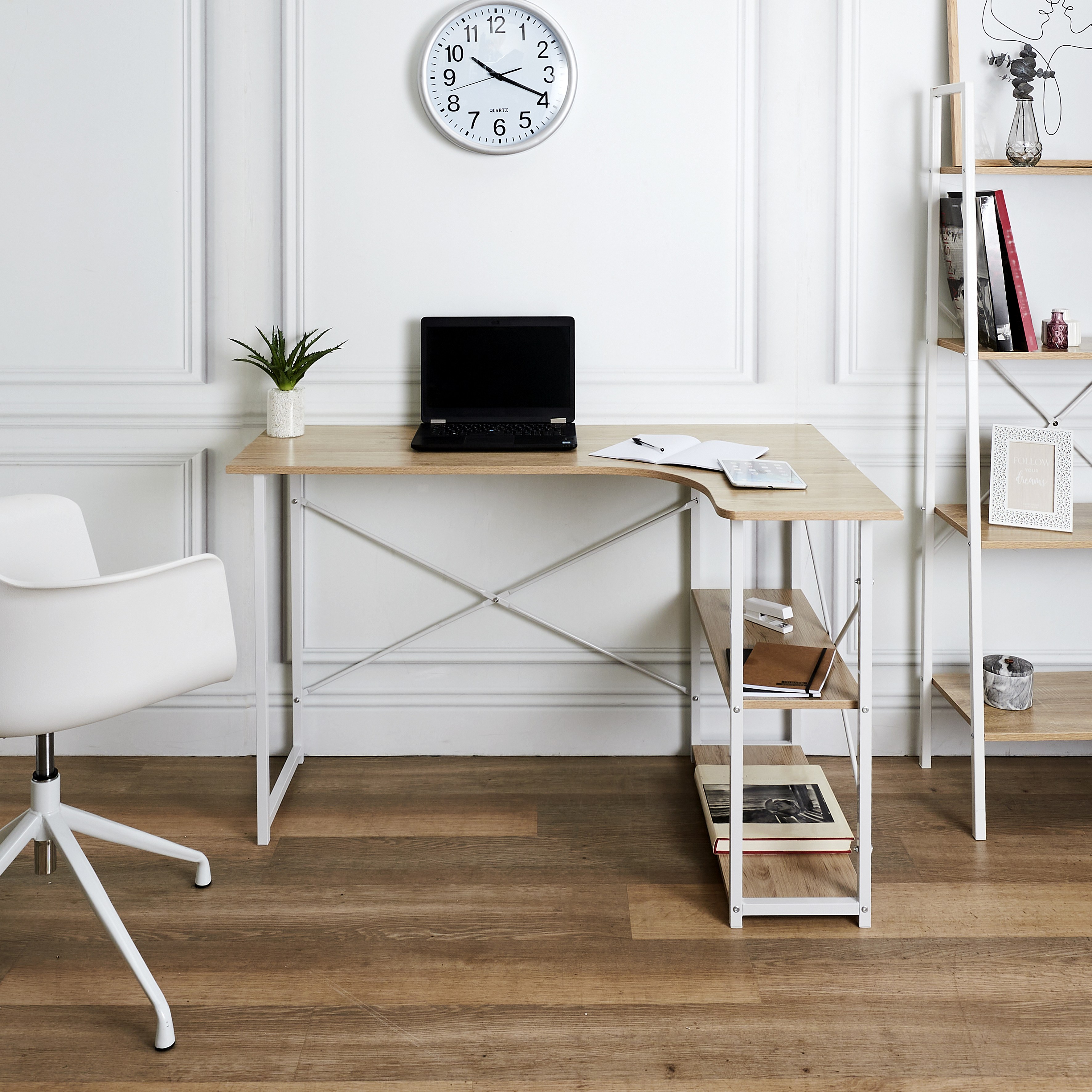 Bureau D Angle Job Blanc Marron, Blanc