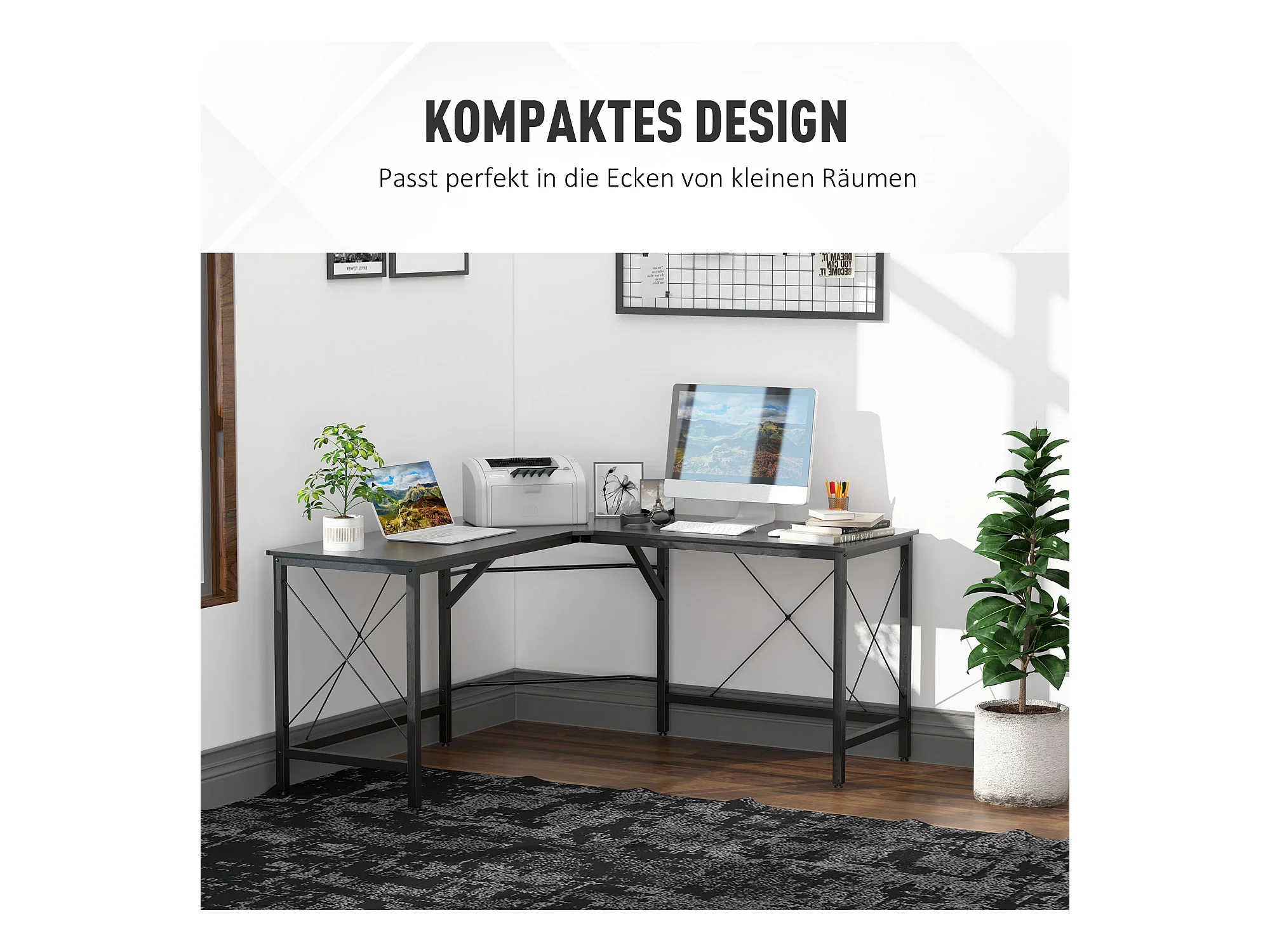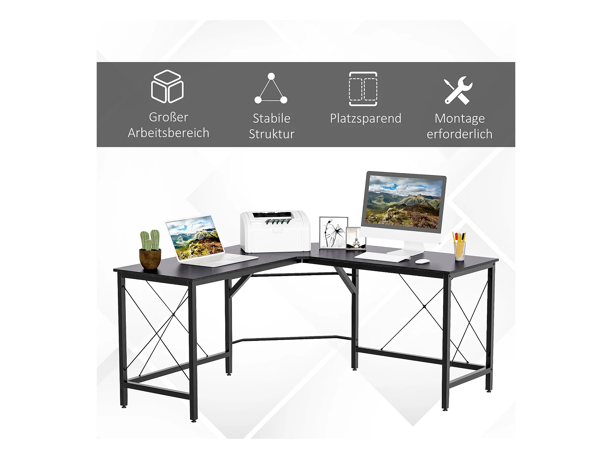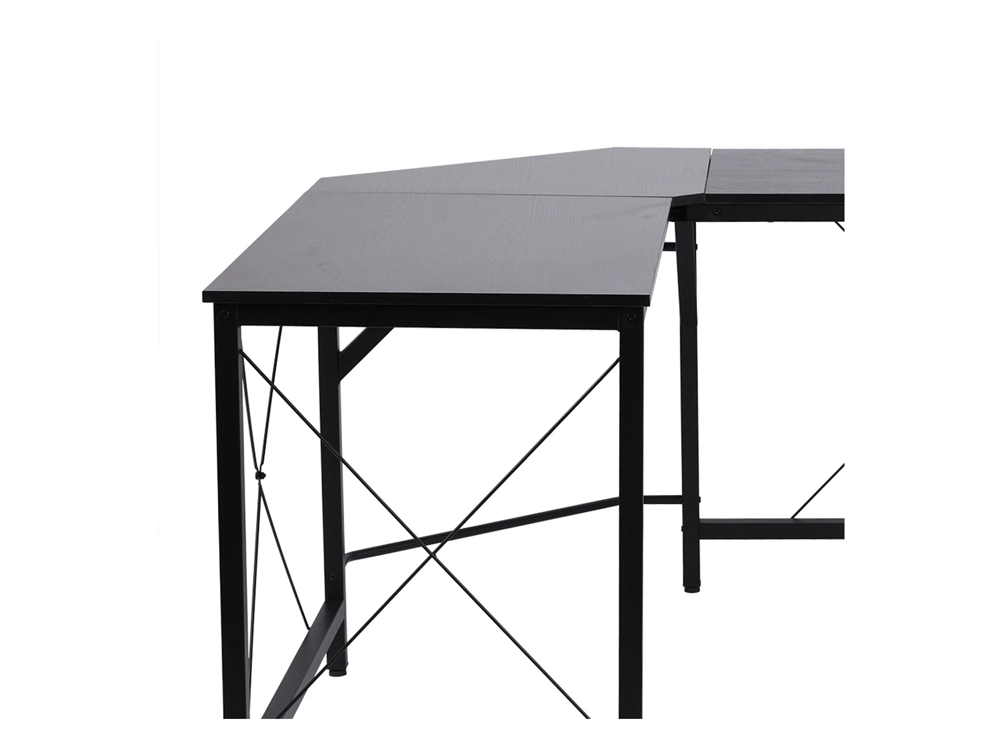 Bureau d'angle L-forme, avec étagère, métal et MDF, noir (150x150x76.5 cm)
