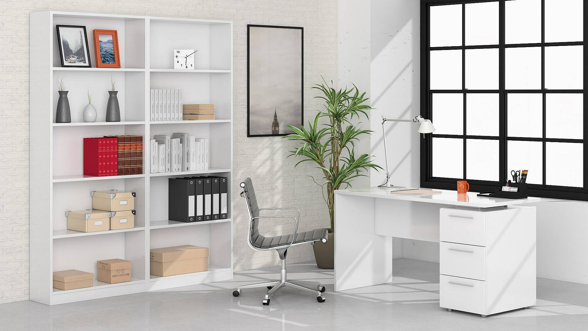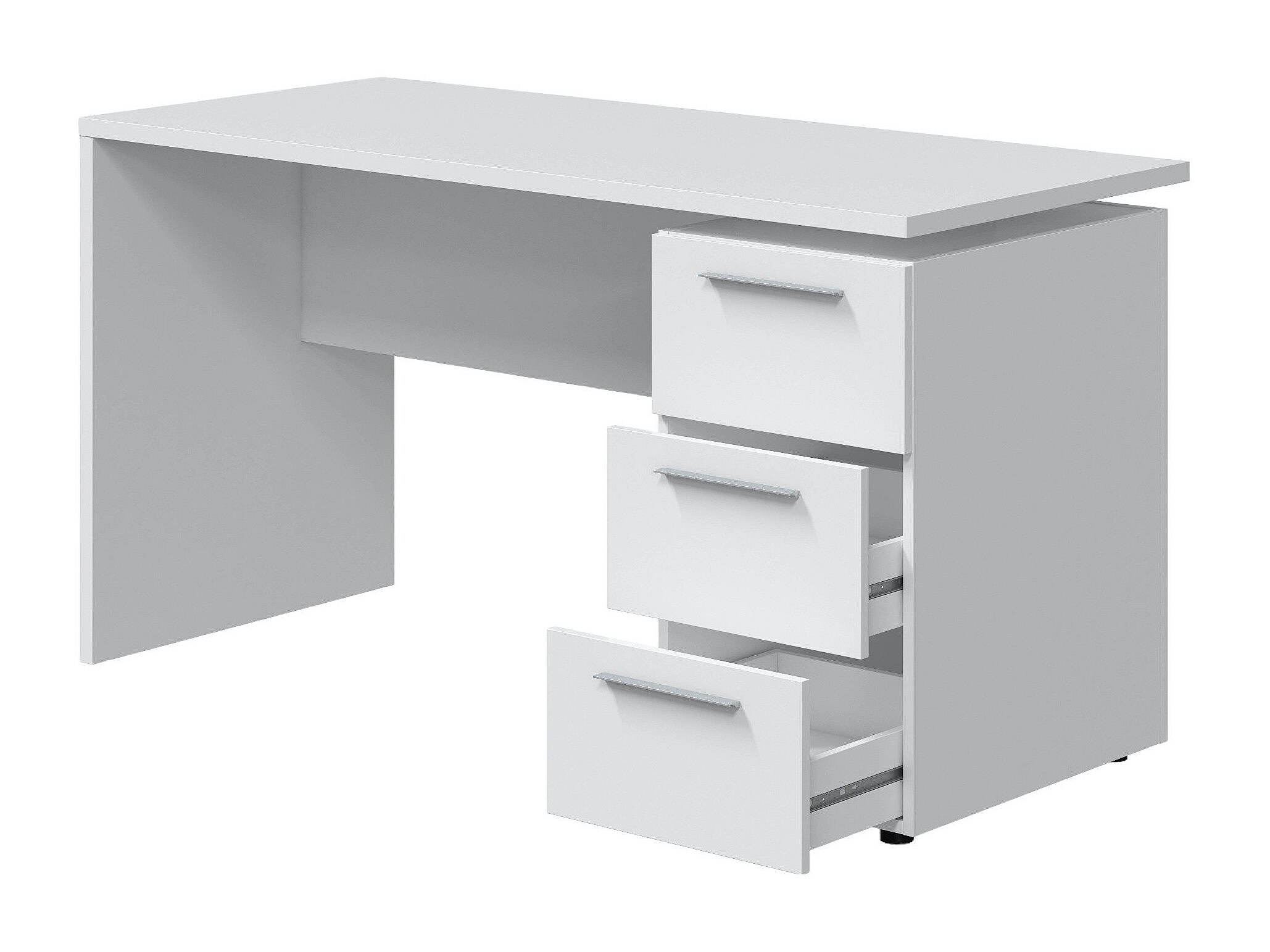Bureau Dbuttar, Bureau moderne, Table d'étude avec commode avec 2 tiroirs et 1 porte, 138x60h74 cm, Blanc