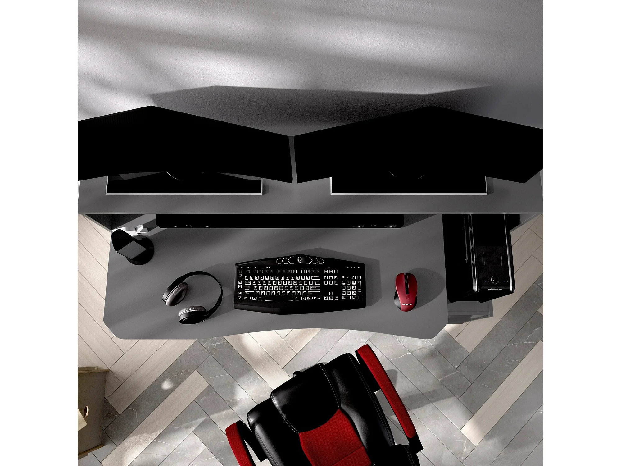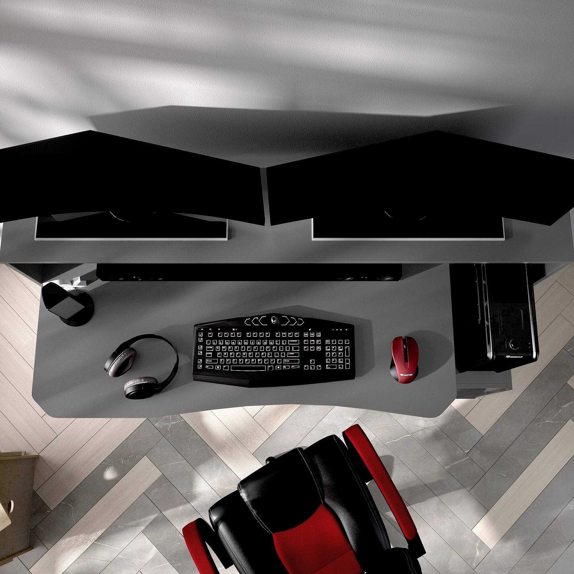 Bureau Dgorin, bureau de jeu multifonction moderne, table d'étude pour PC et support CD, 154x69h98 cm, Anthracite, sans lumières LED