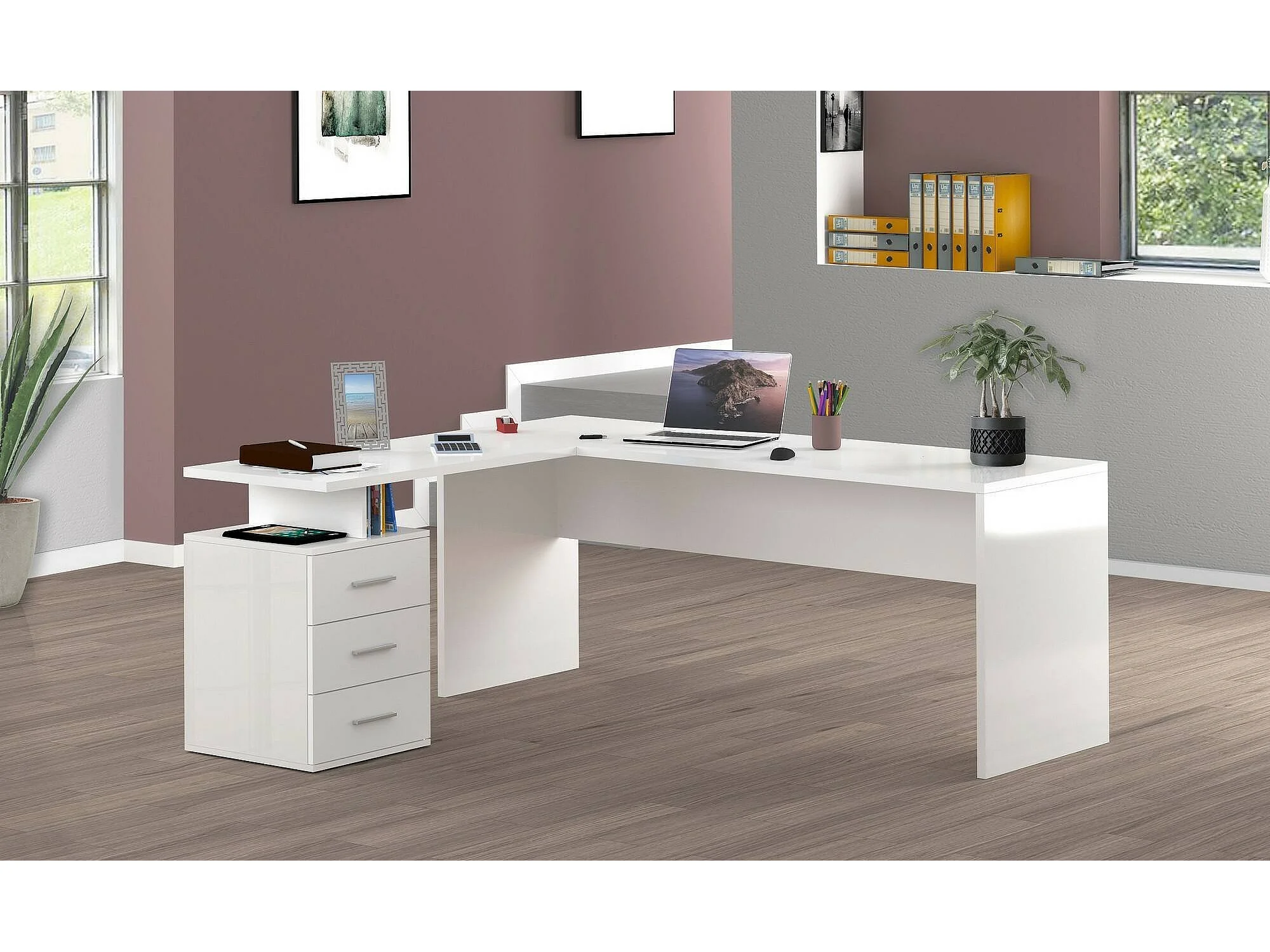 Bureau Dguarin, Bureau d'angle PC, Table de bureau polyvalente, Bureau gain de place multi-positions, 100% Made in Italy, 160x60h75 cm, Blanc brillant